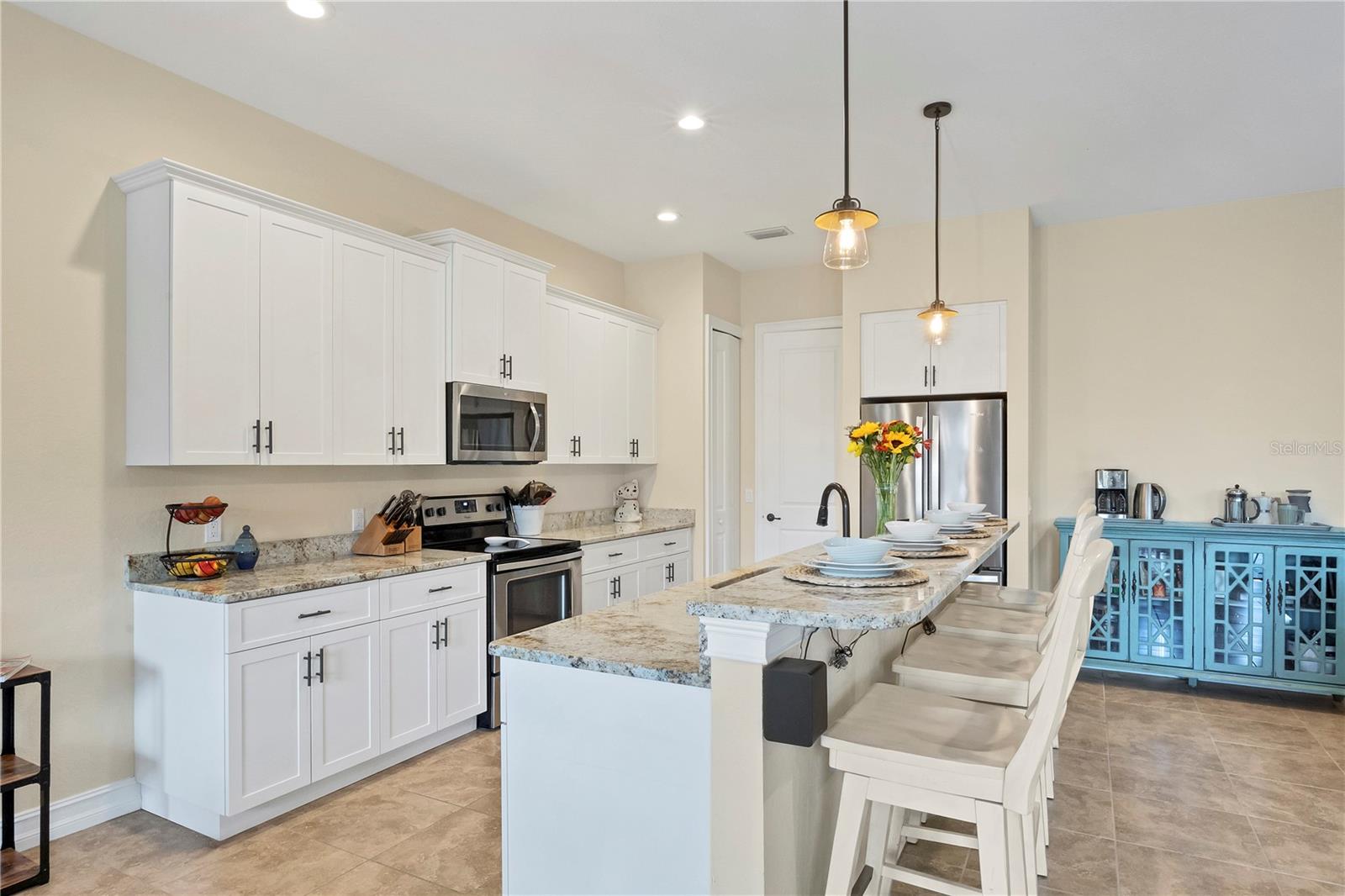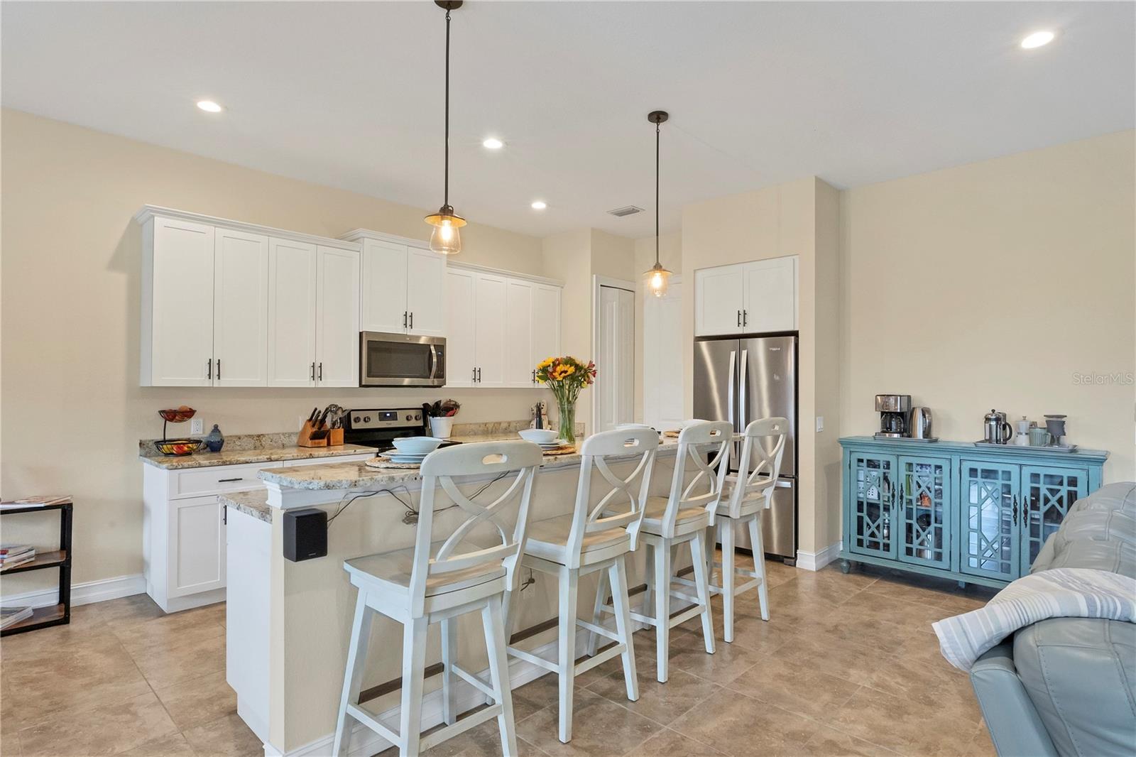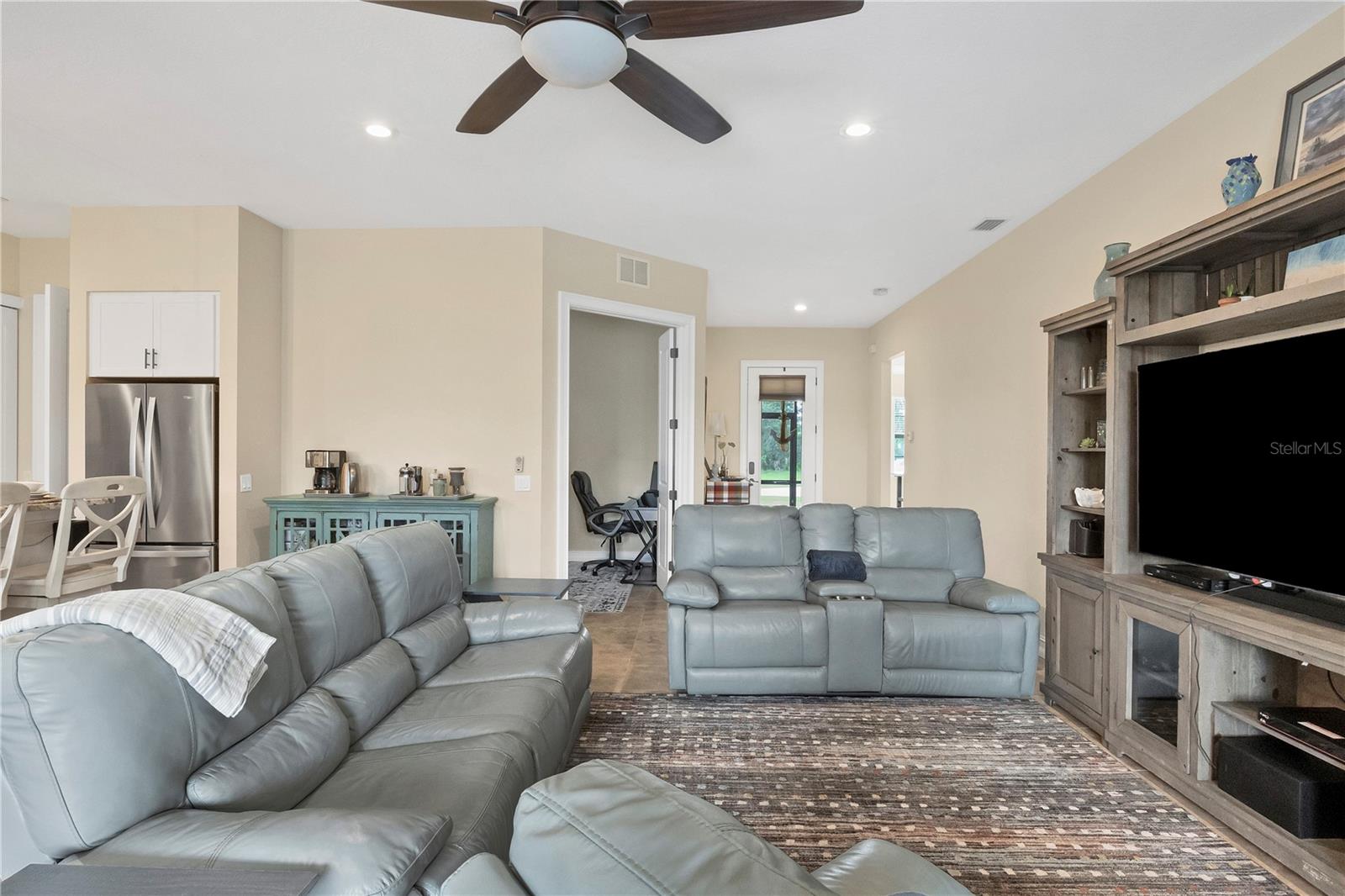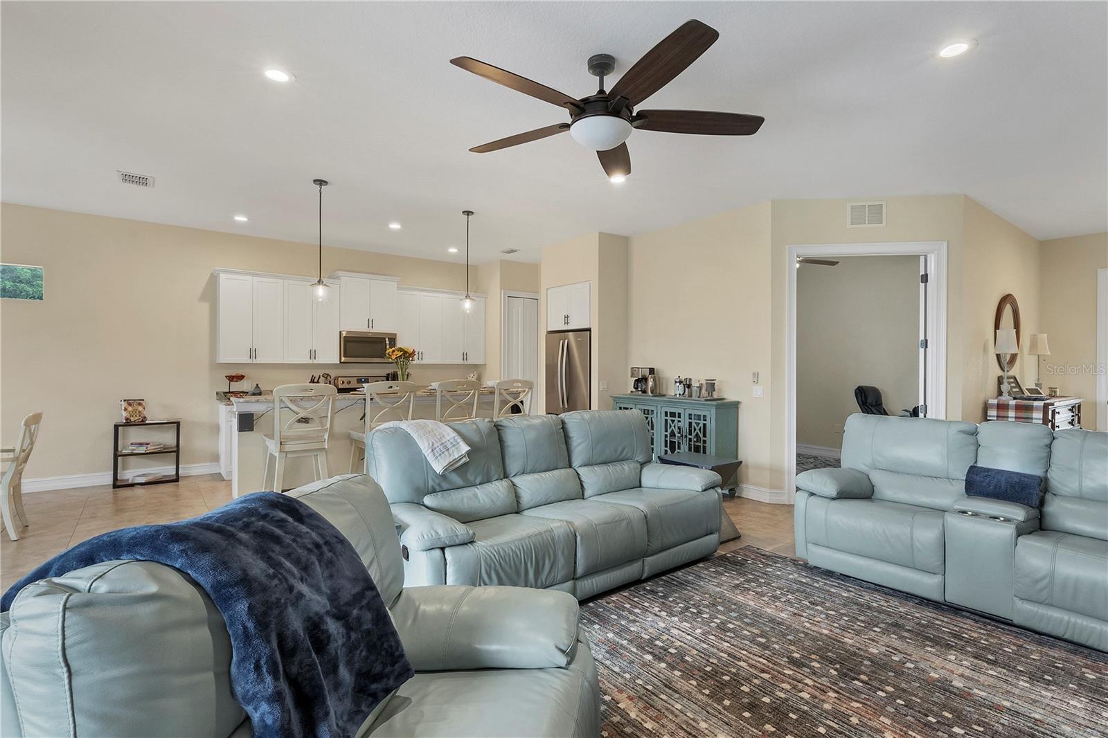 MOTIVATED SELLERS! The quintessential Florida home for buyers searching for a cozy winter escape or a lovely year-round residence is found within the walls of this charming home, nestled on a quiet cul-de-sac in the heart of the highly desired community of Rotonda Lakes. Rich with desirable upgrades, the finishes will please even the most discriminating homeowner. Upon entry, guests will appreciate a soothing neutral color palette accentuated by soaring 10' ceilings and 8' interior doors, resulting in a light, airy, and welcoming ambiance. Ceramic tile runs throughout the home to create comfortable transitions from room to room. The resident chef will surely appreciate the well-appointed kitchen with 48" cabinetry, tastefully coordinated granite countertops, a large prep island, stainless steel appliances, and a custom-designed pantry closet to accommodate your storage needs efficiently. An adjacent dining room was designed to make even a weeknight meal feel special, with sliders opening to the lanai and its tranquil and fenced backyard. A flex room/media room/den is found behind elegant double doors, making working from home or binge-watching the latest series a pleasure. The kitchen flows effortlessly into the great room, where triple sliders open to the cozy lanai, gracefully integrating the indoor/outdoor living areas, with plenty of room to arrange furniture in conversation-friendly configurations to encourage guests to slow down, relax, play board games, or savor a 5:00 cheeseboard. Here, a heated pool surrounded by an attractive paver patio awaits. Mood-setting LED lighting has been incorporated into the pool cage structure to enhance the setting further. Just beyond is a fenced backyard--an ideal place for your furry friends, and a zoned irrigation system nourishes the yard. Relaxation is encouraged in the primary suite. Spacious volume ceilings and a large walk-in closet with custom-designed storage solutions highlight this room. At the same time, its ensuite bath exudes a spa-like ambiance, dual sinks, and a generous walk-in shower with an attractive tile surround. Two additional bedrooms will comfortably accommodate guests, and they share a bath outfitted with a tub/shower combination accentuated with a ceramic tile surround. Rotonda Lakes is a quiet, friendly community within a short drive to the pristine Gulf beaches of Boca Grande and Englewood. There are world-class fishing and boating opportunities, various delectable dining establishments, vibrant farmer's markets, and eclectic shopping venues nearby. Golf enthusiasts will appreciate the easy access to five championship courses in nearby Rotonda West. If this sounds intriguing, call today to schedule a private showing and prepare to be captivated by this picturesque community where every day feels like a vacation!