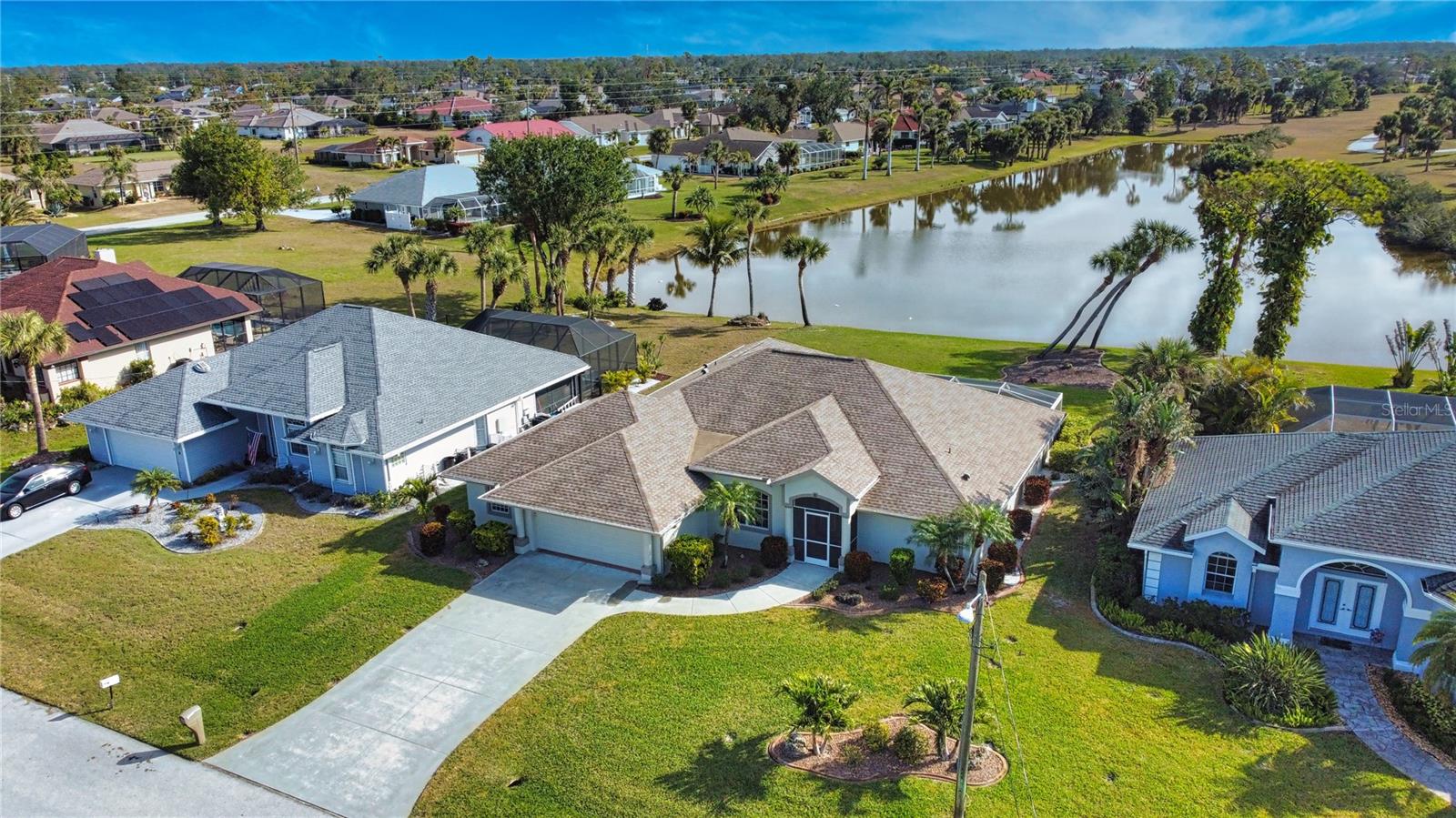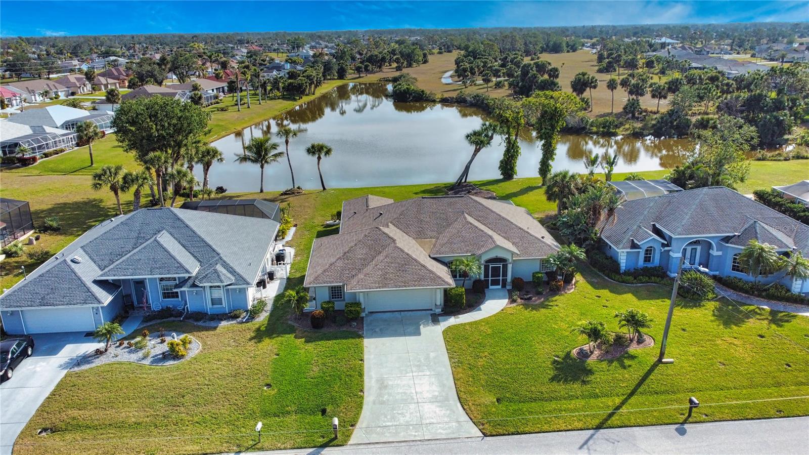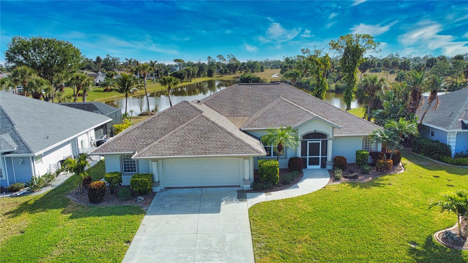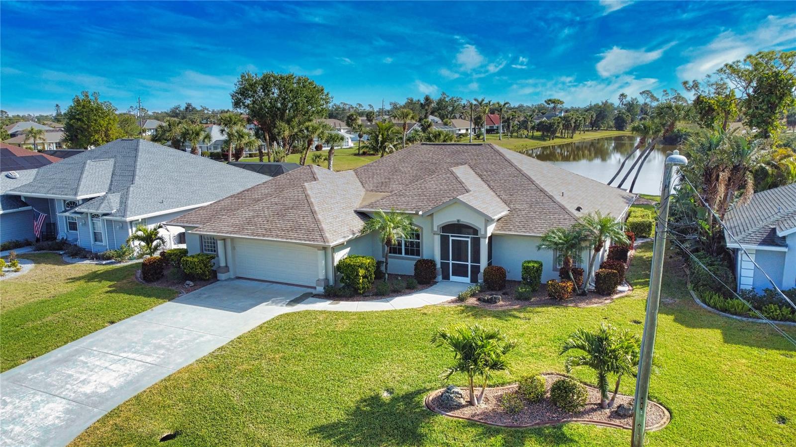 ****Price Reduced $20,000**** Let's make a deal!!! Wake up to breathtaking panoramic lake views in this spacious 3-bed, 2-bath Florida-style ranch with 2,392 sq. ft. of living space. Nestled on a stunning lot overlooking Broadmoor Park and the lake, this impeccably maintained home offers both serenity and space. Enjoy unobstructed water views from the great room, master suite, and the expansive screened lanai featuring a hot tub. The oversized garage includes a separate workshop, bonus room, and artist studio—perfect for hobbies or a small business. The kitchen is designed for entertaining with wood cabinets, 42” uppers, granite countertops, under-cabinet lighting, and a walk-in pantry. The primary suite is a true retreat with a 6’ custom garden tub and a Roman walk-in shower with stained glass details. Additional features include upgraded tempered glass windows, Manna block plumbing, a screened front entry, and lush landscaping. New roof & NO flood insurance required! Located in Rotonda West, offering 26 miles of canals, lakes, and ponds, plus community parks, walking trails, tennis, and nearby world-class beaches, golf, and boating. Come experience these stunning views—schedule your private showing today!