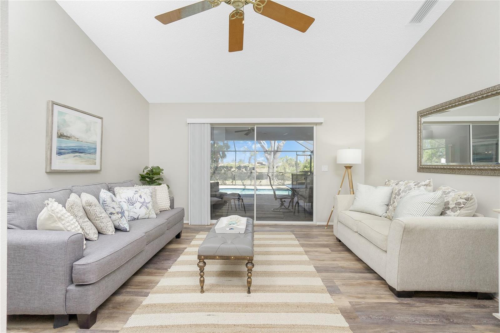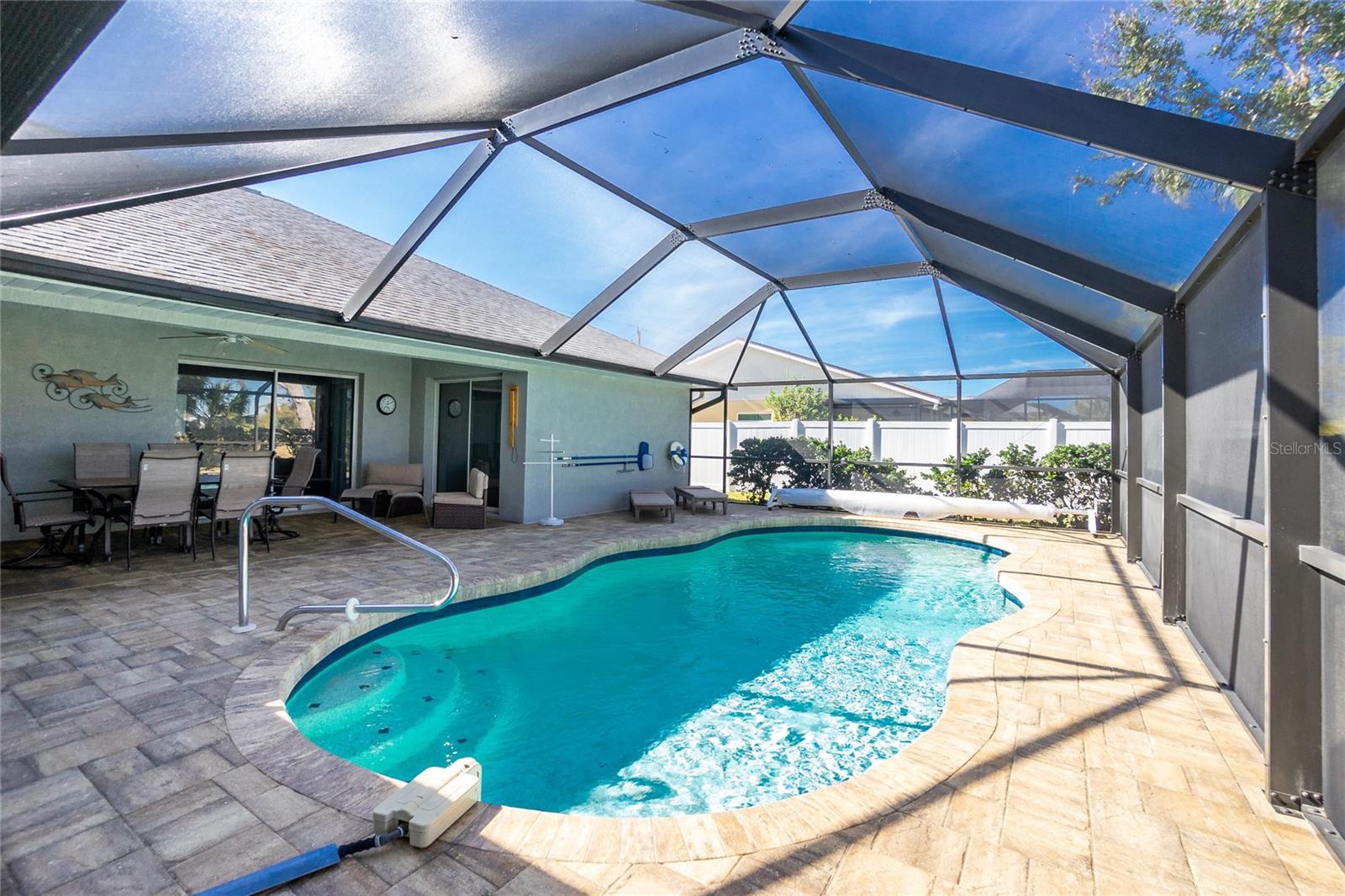 Welcome to the deed restricted community of Rotonda West! This turn key furnished 3-bedroom, 2-bathroom split-plan home offers the perfect blend of comfort, privacy, and convenience. The highlight of this property is the private heated pool which was resurfaced in 2020 and converted to salt water, complete with a covered lanai (new 2020) for shaded relaxation, and pavers also in 2020. The screened pool area is lined with mature shrubs, providing a serene retreat with no backyard neighbors. Step inside through elegant French doors and be greeted by a spacious living room with views of the pool. The kitchen boasts ample cabinetry, a breakfast bar, and an adjacent dining area near the family room—ideal for entertaining. The primary suite features two walk-in closets, while the en-suite bathroom includes a separate shower, soaking tub, and dual vanities. The guest bathroom conveniently opens to the pool area. HOA fee of just $190, this home is priced to sell and ready for its next owner. Ideally situated near world-class Tarpon fishing in Boca Grande, stunning beaches, premier golf courses, and the spring training facilities of the Tampa Bay Rays and Atlanta Braves, this location has it all. Enjoy easy access to Englewood Beach, local restaurants, shopping, and the vibrant farmer’s markets of Dearborn Street. Whether you’re a golfer, beach lover, angler, or baseball fan, this is Florida living at its best! Don't miss out—schedule your private showing today!