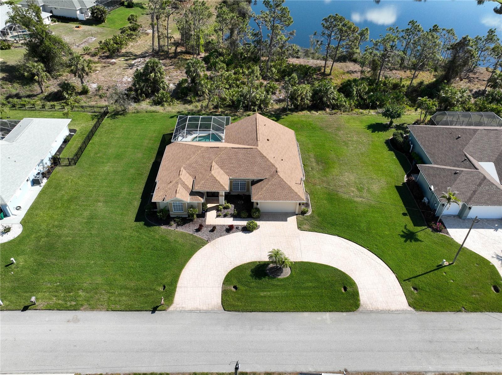 Privacy abounds with this well maintained 3/2/2 pool home located on a rare double lot. Located in an desirable X FLOOD ZONE Full hurricane protection.. Being sold turnkey furnished. This beautifully landscaped, just under 1/2 acre parcel backs up to wooded area of Broadmoor Park with its miles of walking trails so no neighbors to the rear. The home being in the center of the double lot provides almost 50 feet of separation between homes each side. Plenty of room for an additional garage. Large windows and sliders provide a great amount 0f that Florida sunshine that we all moved here to enjoy. Home features an owned alarm system with cameras, open kitchen, updated appliances, open floor plan. New roof January 2023. New pool cage March 2024, newer pool pump motor, new garage door opener. Well for irrigation to maintain the wonderful tropical landscaping!!! , recently painted, updated shower in primary bath. Rotonda West is a community with 26 miles of picturesque canals, ponds and lakes that are abundant with fish and wildlife. Close to Englewood, Port Charlotte, Boca Grande, Gasparilla State Park and Don Pedro Island, this home lies between Sarasota and Ft Myers. Community features several walking & bike trails. Rotonda Park also offers a wildly beautiful and scenic nature preserve, nature trail, pickle ball courts, picnic tables with shelters, tennis courts and a playground. Perfect location to live your Florida life.There is so much to do with 5 beaches, local waterfront dining, shopping and entertainment. Tampa Bay Rays & Atlanta Braves baseball training parks are minutes away. The Rotonda Golf and Country Club offers five golf courses with 99 holes to golf to your heart's content. Boating & fishing abound in Lemon Bay and the Gulf of Mexico!!. Boca Grande Pass offers some of the world's best Tarpon fishing. Hurry this gem will not last long!!!
