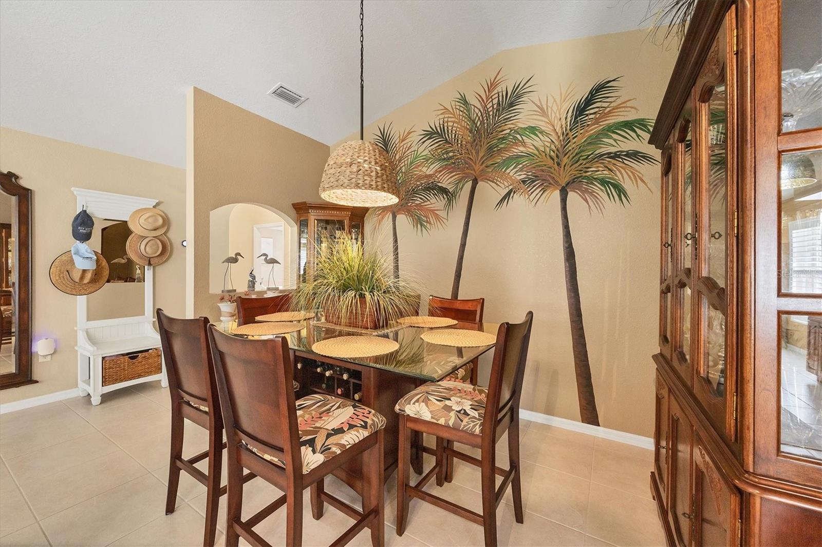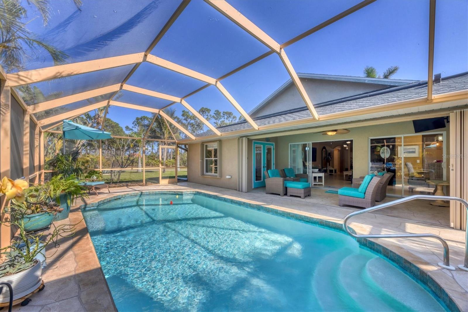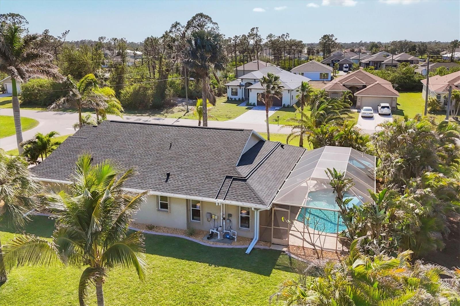 Welcome to your own private island in the quiet retreat that is Rotonda Lakes. Located on a corner lot, this home offers a generous yard that provides additional privacy and distance from neighbors. You will notice a meticulous attention to detail as you arrive and proceed past immaculate landscaping before being welcomed into the home. Neutral tones and a vaulted ceiling uplift the living room while double sliding glass doors bring in the natural light and beautiful views from the backyard and pool. Embrace the tropical oasis that is this home as you proceed past the dining room and into the well-appointed kitchen, outfitted in a dark stainless steel appliance package and wood cabinetry. A passthrough cut out, with the option to be utilized as a breakfast bar, allows for conversations to flow between rooms and an additional dining nook sits convenient to the kitchen for a casual coffee or lunch spot before spending the afternoon basking in the sun within the sparkling pool that sits just steps away. After spending your day outdoors, retire to the sunbathed primary suite for an evening of relaxation. The adjoining bathroom features a luxurious walk-in shower with rainfall shower head that will wash the worries and aches of the day away and a built-in bench seat will allow for a tranquil spa-like experience. For those who would prefer a bubble bath and a glass of wine, worry not, a bathtub and shower combo can be found in the second restroom that is convenient to the additional bedrooms. Rotonda Lakes is just adjacent to the main Rotonda West golf community and is convenient to the five championship golf courses within. If a private home in an idyllic Southwest Florida community is intriguing, call today to schedule a showing and prepare to be captivated by what this home has to offer!