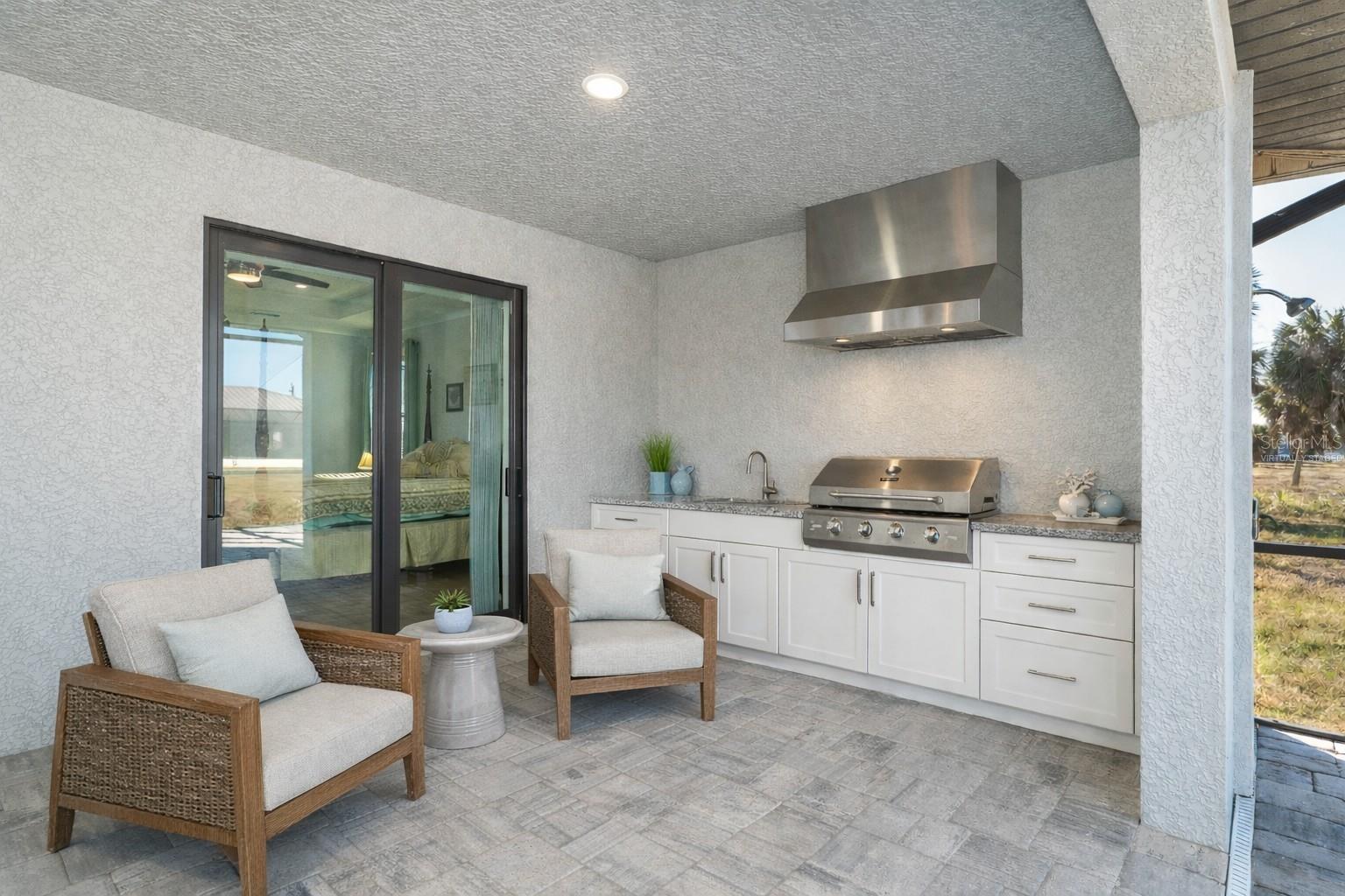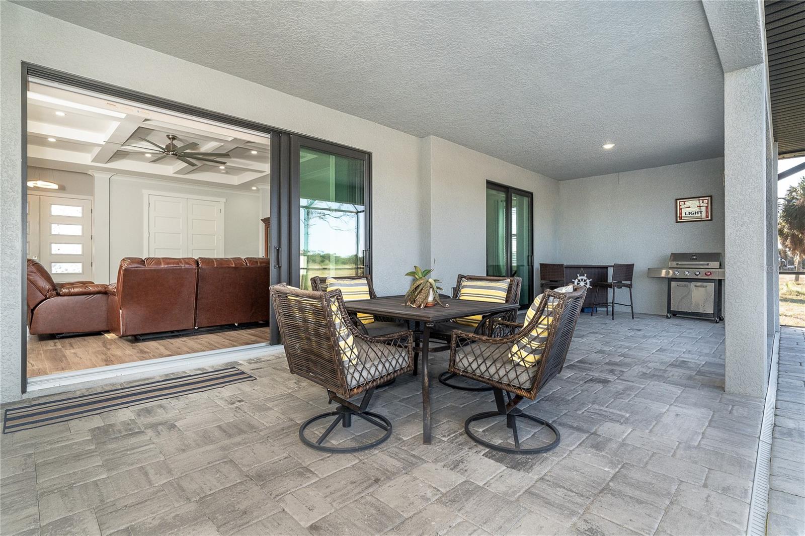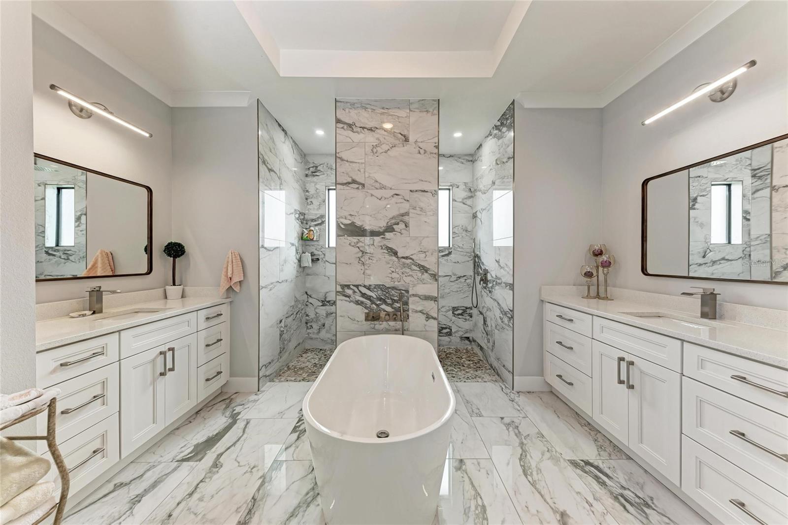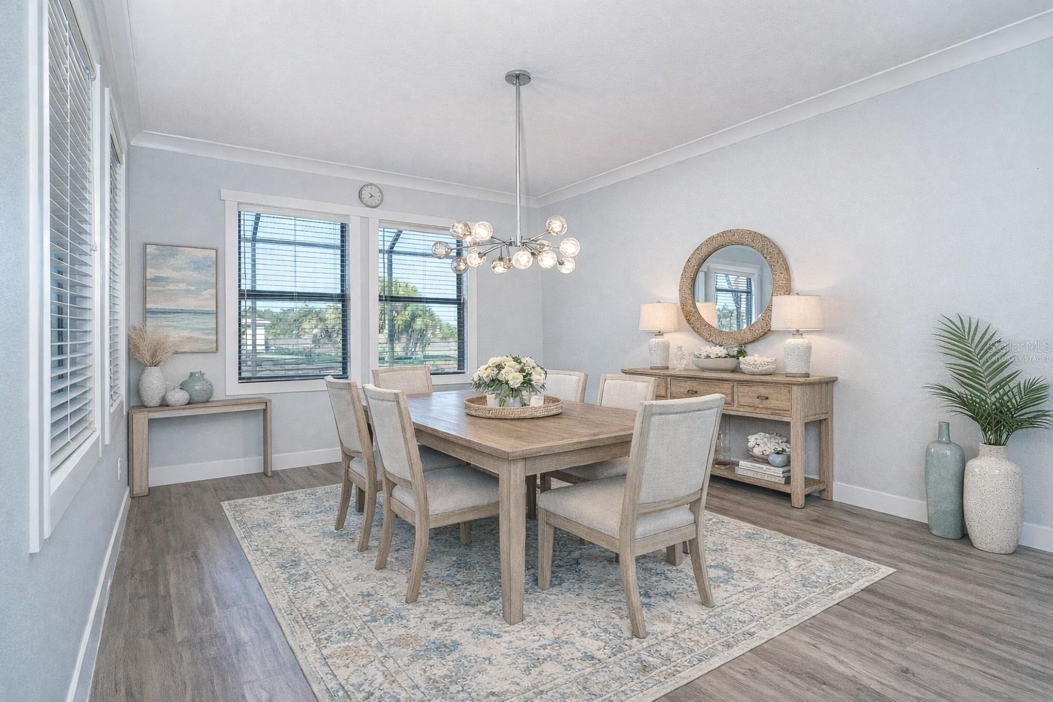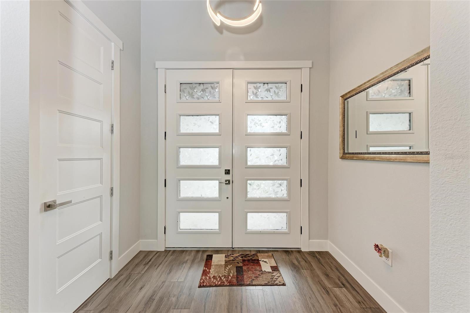 One or more photo(s) has been virtually staged. Prepare to be impressed when you step into your new home! Thoughtfully designed with soaring ceilings, 8-foot Doors, Coffered Ceilings, and Crown Molding throughout. This home offers a refined yet inviting atmosphere filled with natural light. The open-concept living area flows into a Chef’s Kitchen featuring a Bertazzoni range and top-of-the-line Bosch appliances, including a Built-in wall oven that also functions as a microwave. The luxurious primary suite is a true retreat, showcasing a spa-inspired bathroom with a stunning walk-in shower and soaking tub. A versatile fourth bedroom with double doors can easily serve as a home office or den. A stylish guest bathroom featuring double sinks is conveniently located between two additional guest bedrooms. Outdoors, enjoy your own private oasis with a spectacular Lap Pool complete with Lighting, Sun Shelf, and pool heater. The oversized screened lanai is the perfect place to spend your evenings relaxing or entertaining. This exceptional home is truly Move-in Ready. Schedule your private showing today.