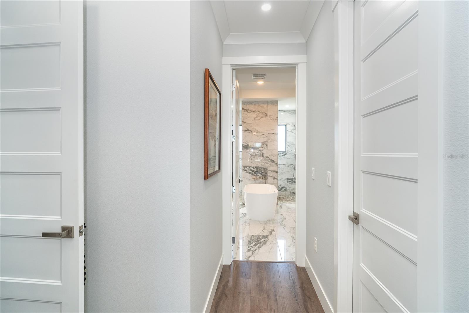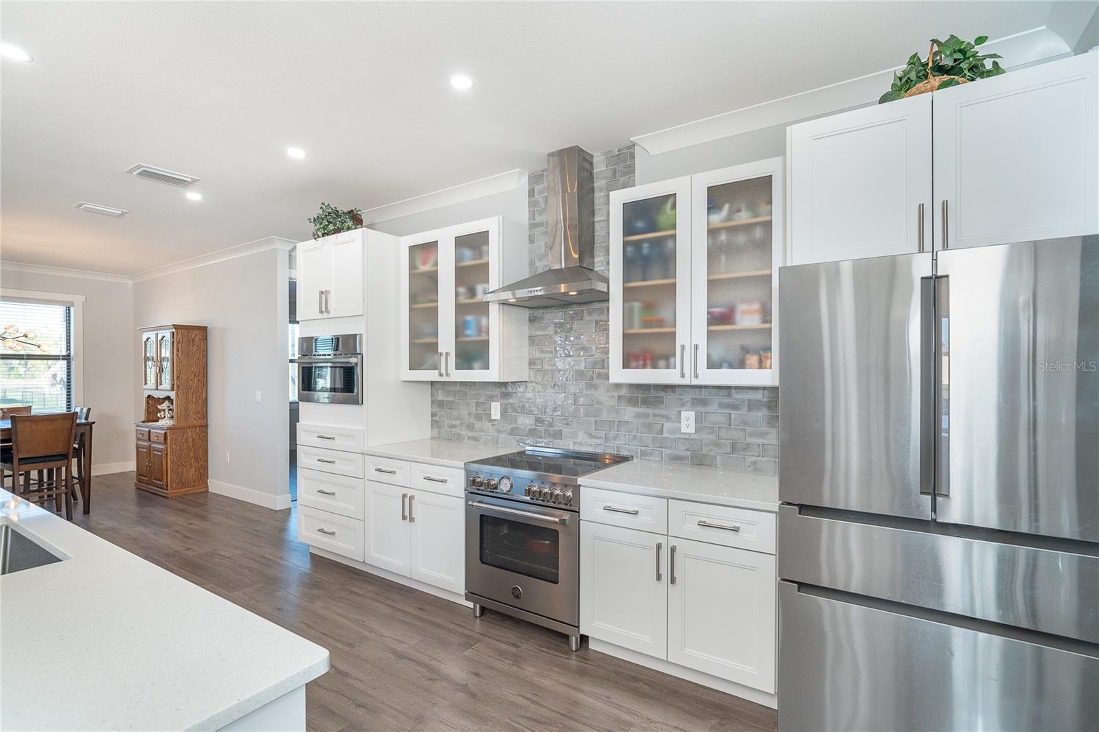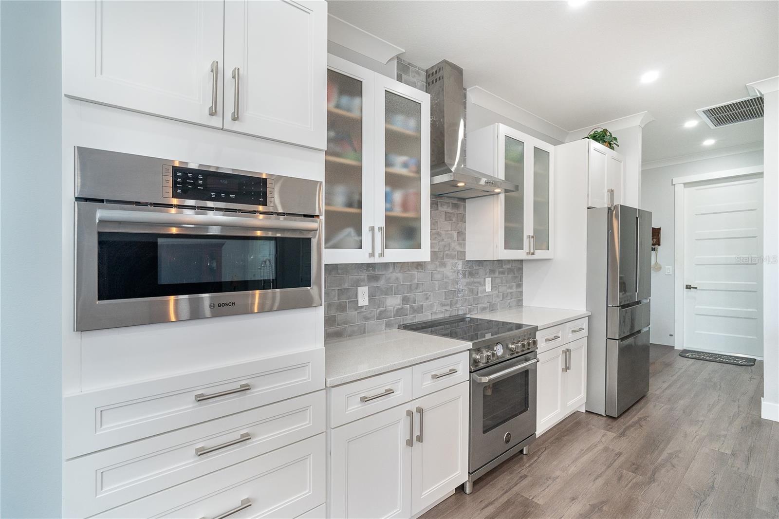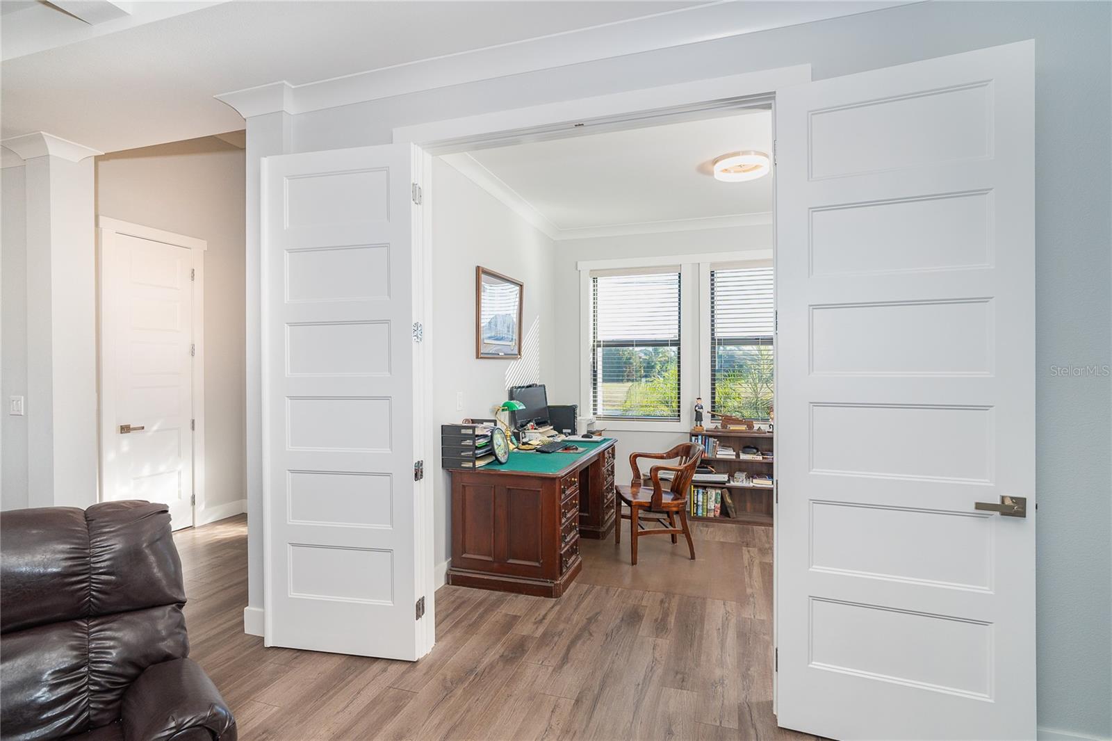 One or more photo(s) has been virtually staged. Prepare to be impressed when you step into your new home! Thoughtfully designed with soaring ceilings, 8-foot Doors, Coffered Ceilings, and Crown Molding throughout. This home offers a refined yet inviting atmosphere filled with natural light. The open-concept living area flows into a Chef’s Kitchen featuring a Bertazzoni range and top-of-the-line Bosch appliances, including a Built-in wall oven that also functions as a microwave. The luxurious primary suite is a true retreat, showcasing a spa-inspired bathroom with a stunning walk-in shower and soaking tub. A versatile fourth bedroom with double doors can easily serve as a home office or den. A stylish guest bathroom featuring double sinks is conveniently located between two additional guest bedrooms. Outdoors, enjoy your own private oasis with a spectacular Lap Pool complete with Lighting, Sun Shelf, and pool heater. The oversized screened lanai is the perfect place to spend your evenings relaxing or entertaining. This exceptional home is truly Move-in Ready. Schedule your private showing today.