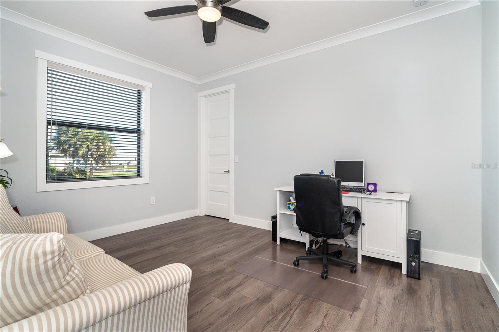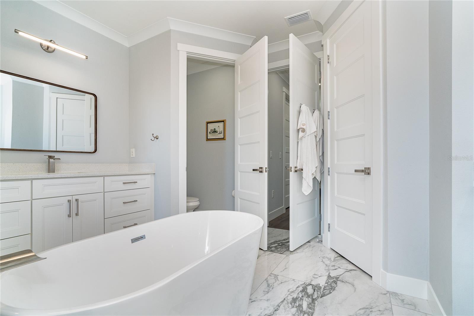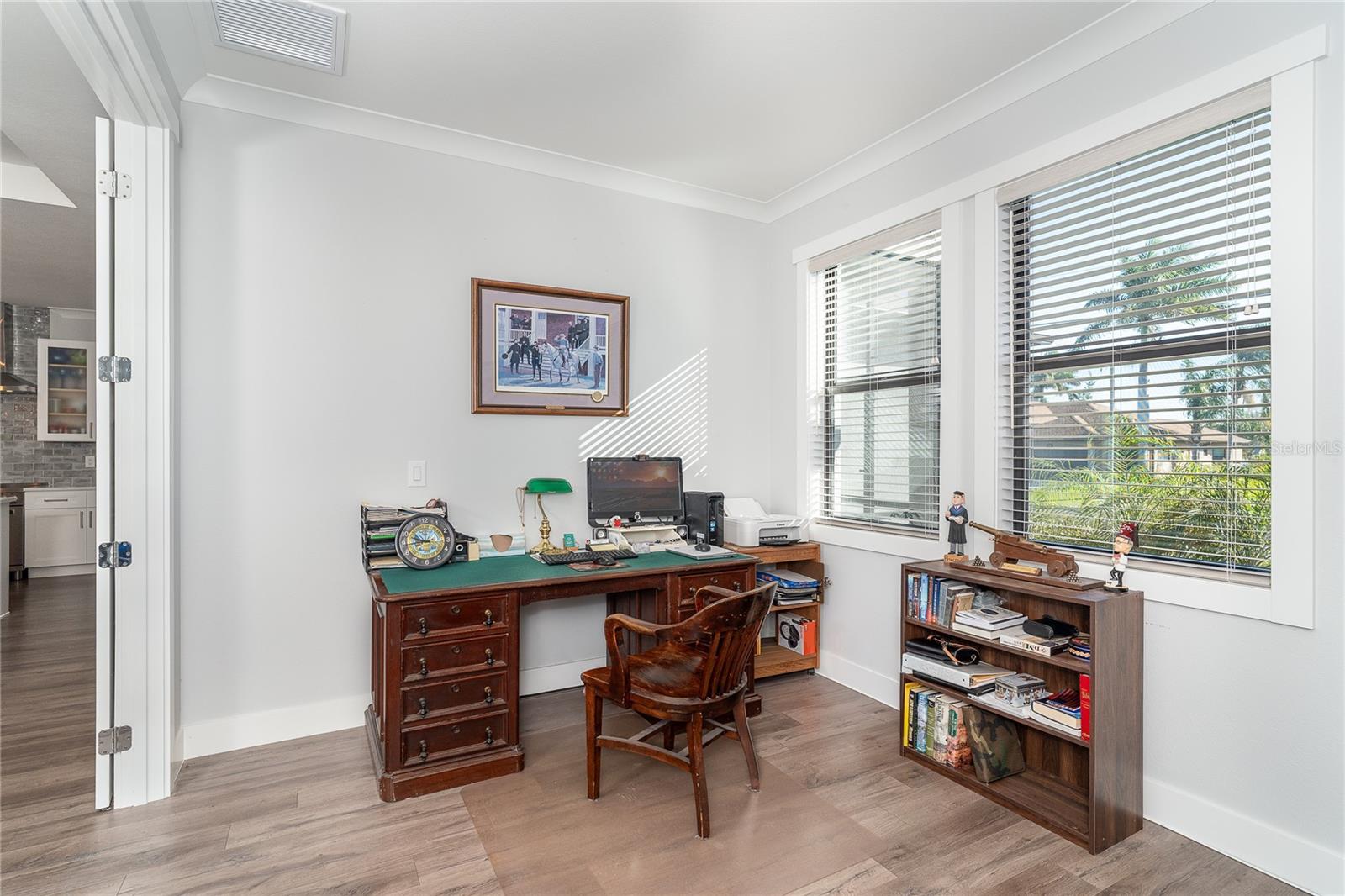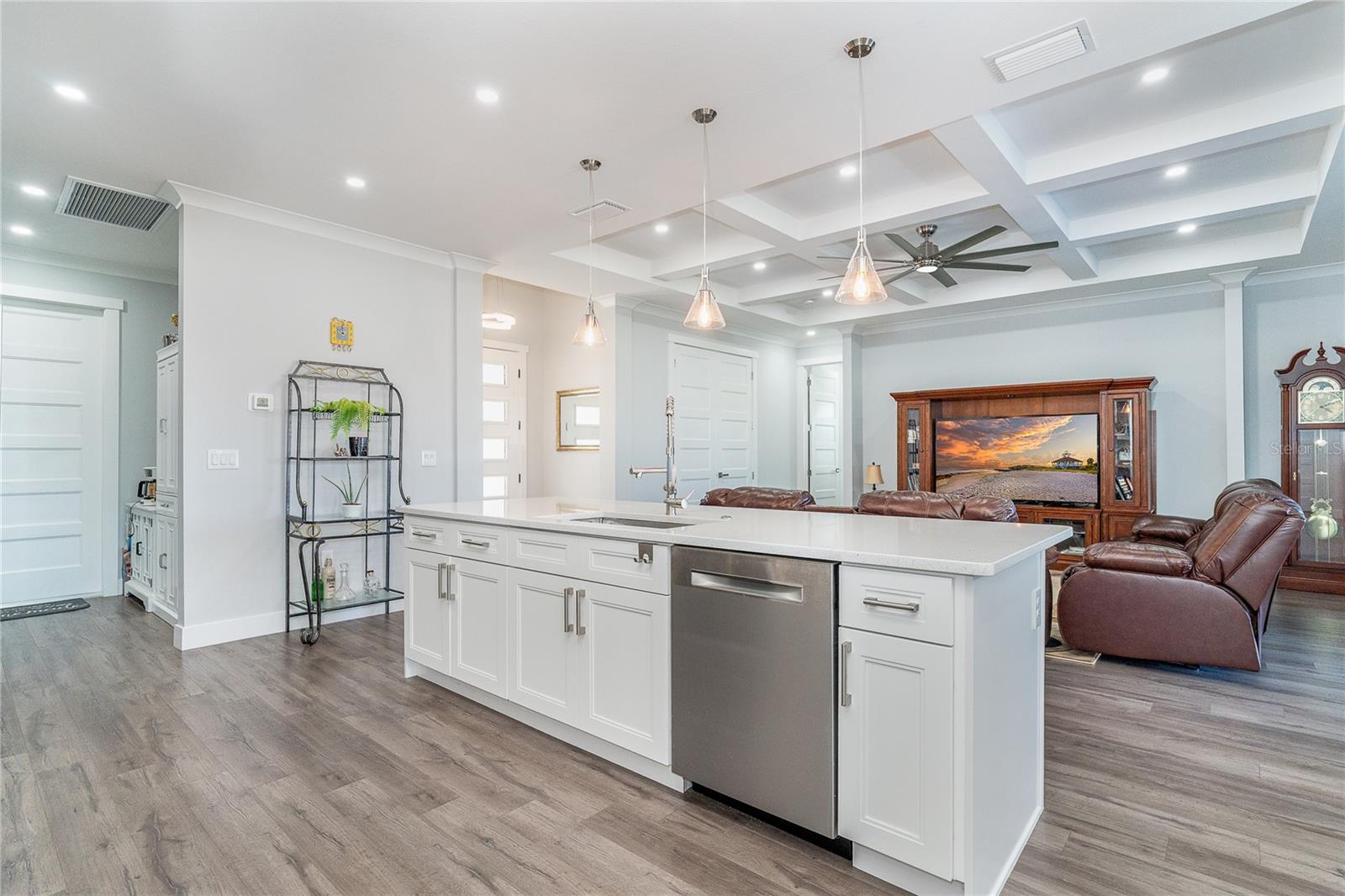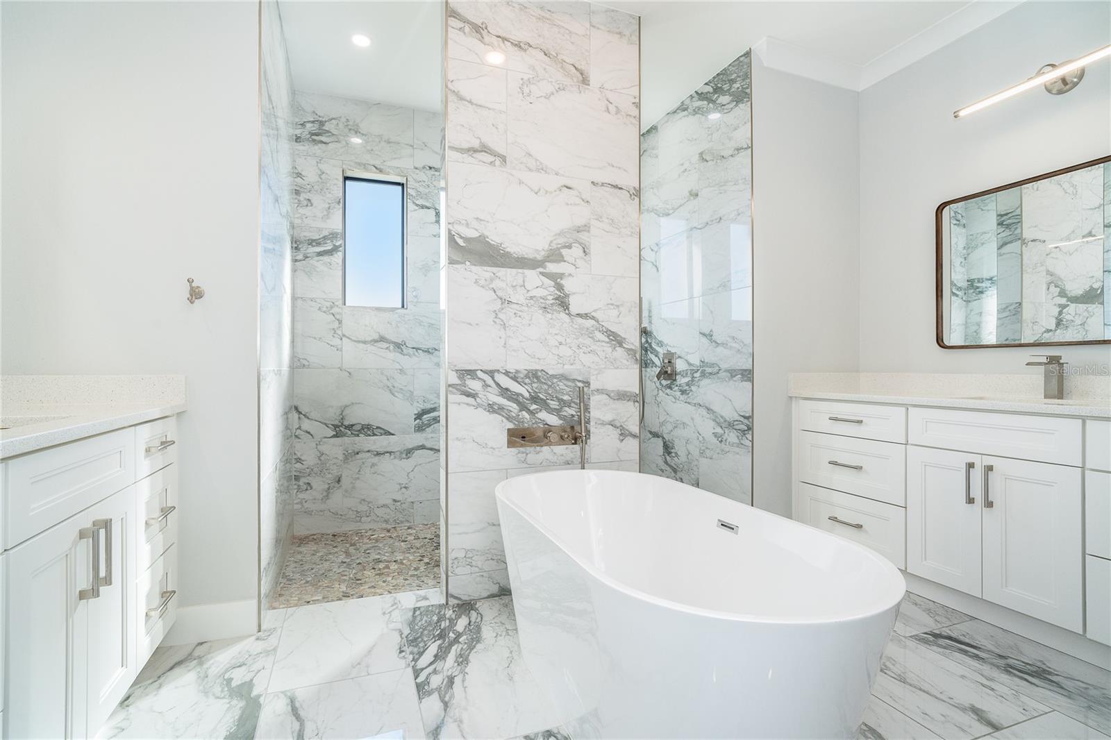 One or more photo(s) has been virtually staged. Prepare to be impressed when you step into your new home! Thoughtfully designed with soaring ceilings, 8-foot Doors, Coffered Ceilings, and Crown Molding throughout. This home offers a refined yet inviting atmosphere filled with natural light. The open-concept living area flows into a Chef’s Kitchen featuring a Bertazzoni range and top-of-the-line Bosch appliances, including a Built-in wall oven that also functions as a microwave. The luxurious primary suite is a true retreat, showcasing a spa-inspired bathroom with a stunning walk-in shower and soaking tub. A versatile fourth bedroom with double doors can easily serve as a home office or den. A stylish guest bathroom featuring double sinks is conveniently located between two additional guest bedrooms. Outdoors, enjoy your own private oasis with a spectacular Lap Pool complete with Lighting, Sun Shelf, and pool heater. The oversized screened lanai is the perfect place to spend your evenings relaxing or entertaining. This exceptional home is truly Move-in Ready. Schedule your private showing today.