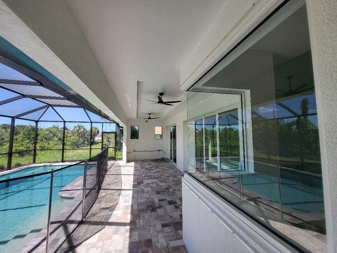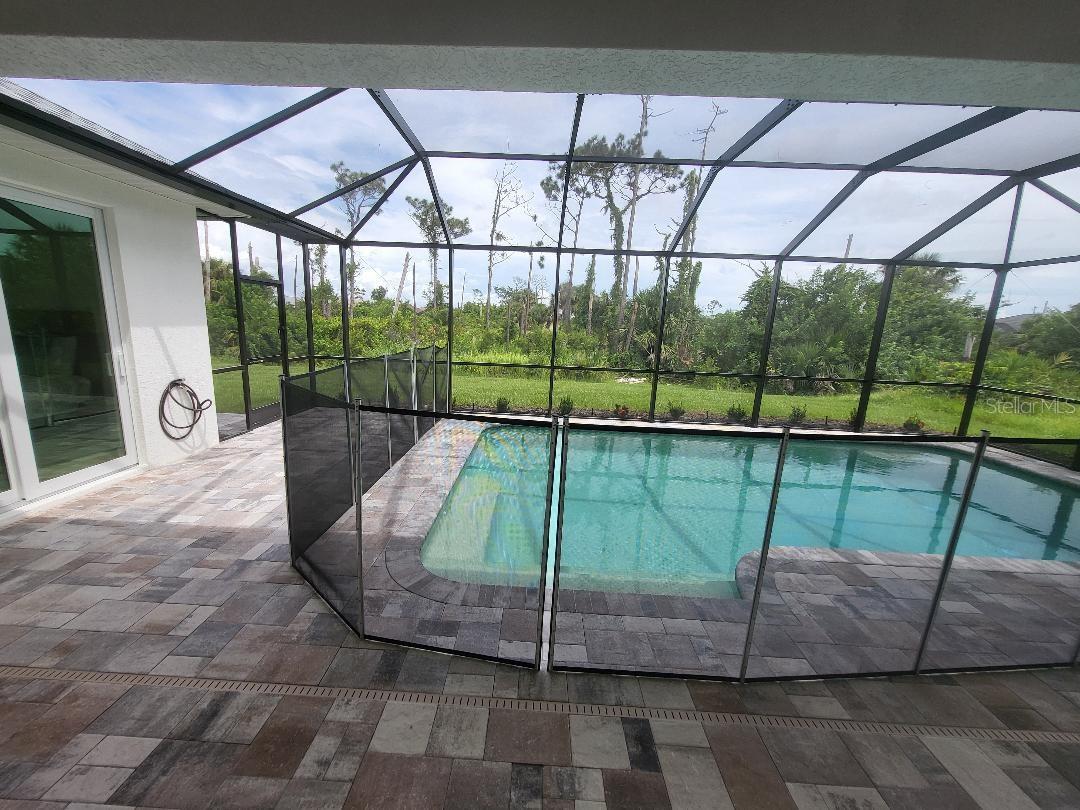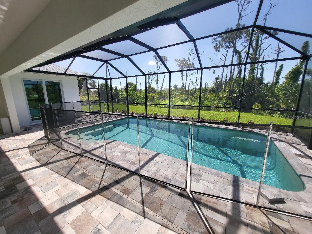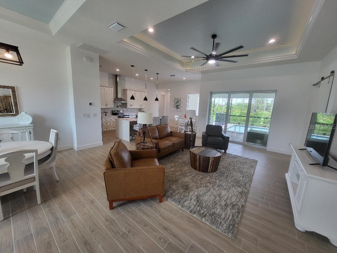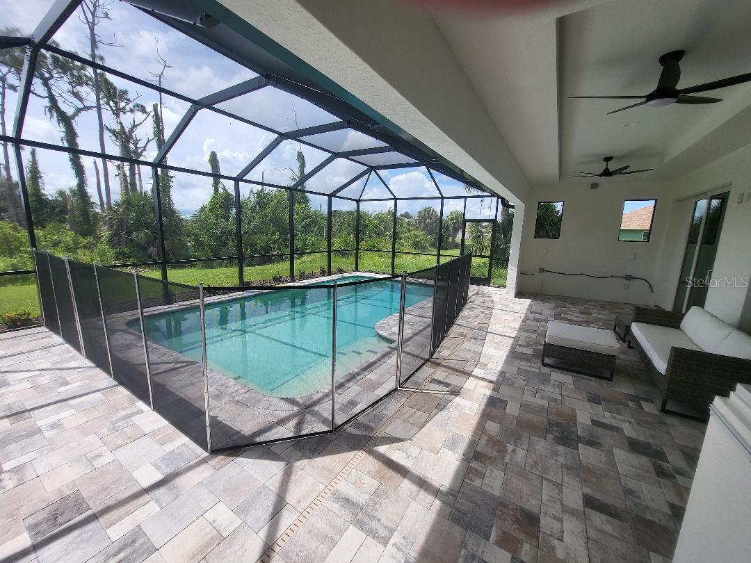 Brand new, JUST COMPLETED! 3/2/3 pool home. Easy ingress & egress in and out of Rotonda. Located in a flood zone X saving you $$$ on insurance. 120 x 80 large lot backs up to a wooded section of Pinemoor golf course providing for that treasured privacy. The 3rd garage stall offers that valuable storage lacking in most Florida homes. Hurricane rated windows and sliders. New Stainless steel appliances, granite counter tops and soft close wood cabinets in kitchen and all baths. All flooring is wood look tile planks with membrane crack suppressant underlayment. The home also features 8' tall front door & 10' flat ceilings with coffer in great room, dining room and bedrooms. 8' high pocket sliding doors from the great room to lanai bring the outside in. Master bath with dual sinks and full walk around shower, rain head with dual shower heads. Guest bath features a walk-in shower. Energy efficient spray foam insulation in walls and in living area ceilings, PGT aluminum low-E insulated Solar Ban 70XL impact glass doors and windows. Home is plumed for and outdoor kitchen. Porter Contracting has been building in the Englewood area since 1978. Property taxes shown reflect the lot taxes before the home being constructed. All dimensions are estimates and should be verified by buyer. Photographs are of a similar furnished completed model. Rotonda West is a community with 26 miles of picturesque canals, ponds and lakes that are abundant with fish and wildlife. Close to Englewood, Port Charlotte, Boca Grande, Gasparilla State Park and Don Pedro Island, this home lies between Sarasota and Ft Myers. Community features several walking & bike trails. Rotonda Park also offers a wildly beautiful and scenic nature preserve, nature trail, pickle ball courts, picnic tables with shelters, tennis courts and a playground. Perfect location to live your Florida life.There is so much to do with 5 beaches, local waterfront dining, shopping and entertainment. Tampa Bay Rays & Atlanta Braves baseball training parks are minutes away. The Rotonda Golf and Country Club offers five golf courses with 99 holes to golf to your heart's content. Boating & fishing abound in Lemon Bay and the Gulf of Mexico!!. Boca Grande Pass offers some of the world's best Tarpon fishing. Hurry this gem will not last long!!!