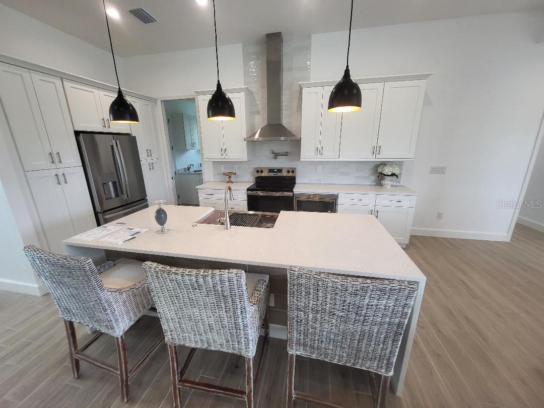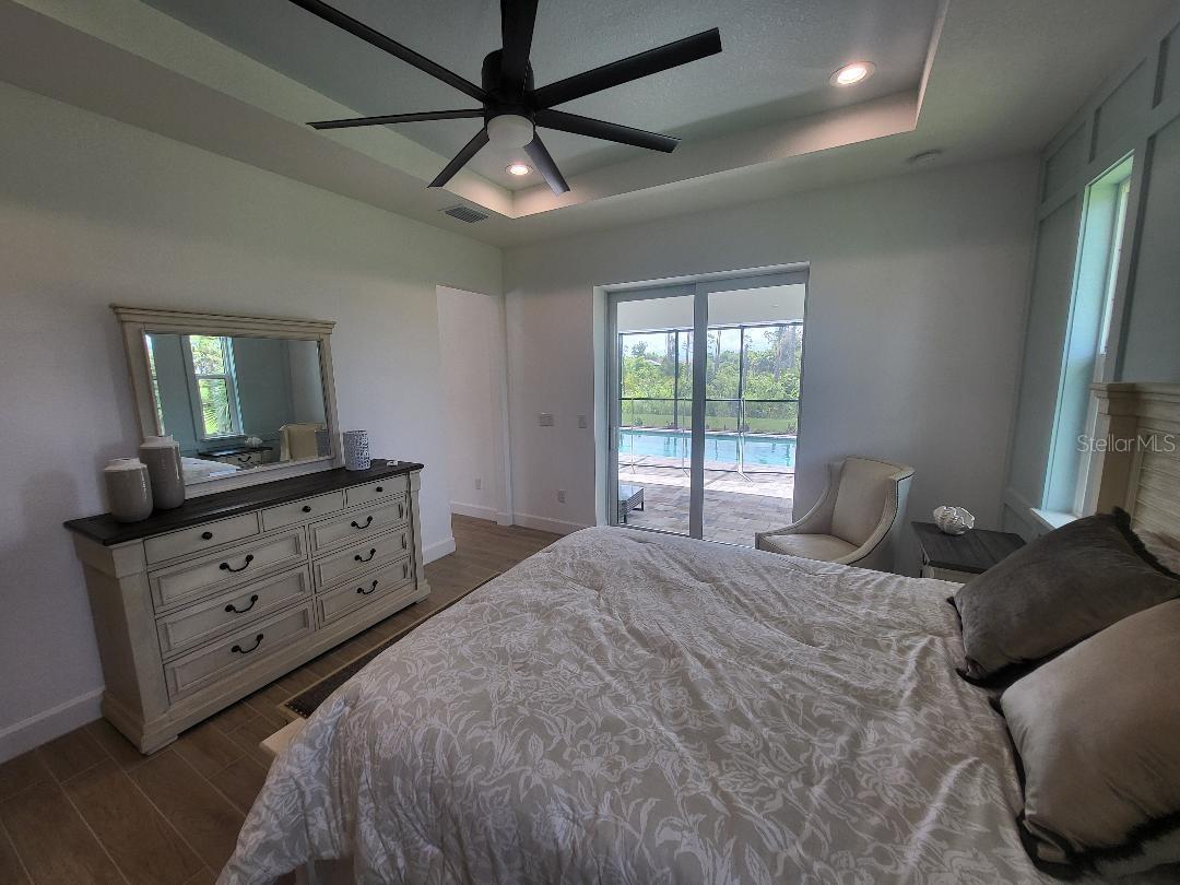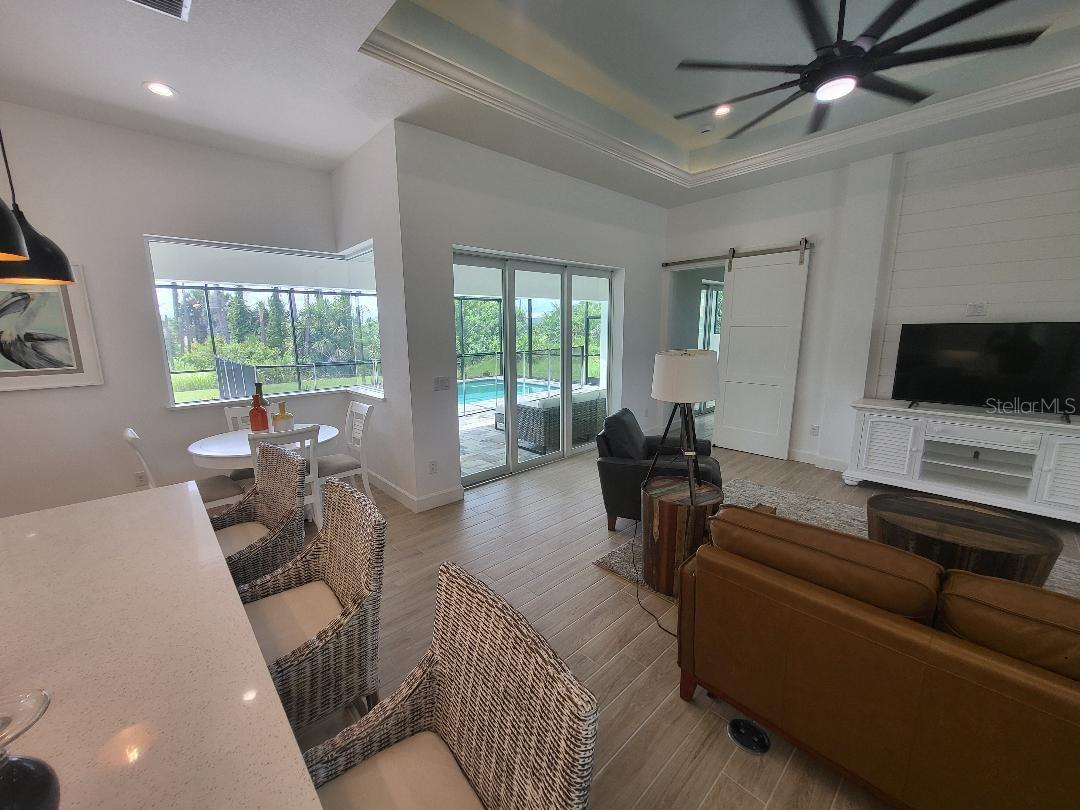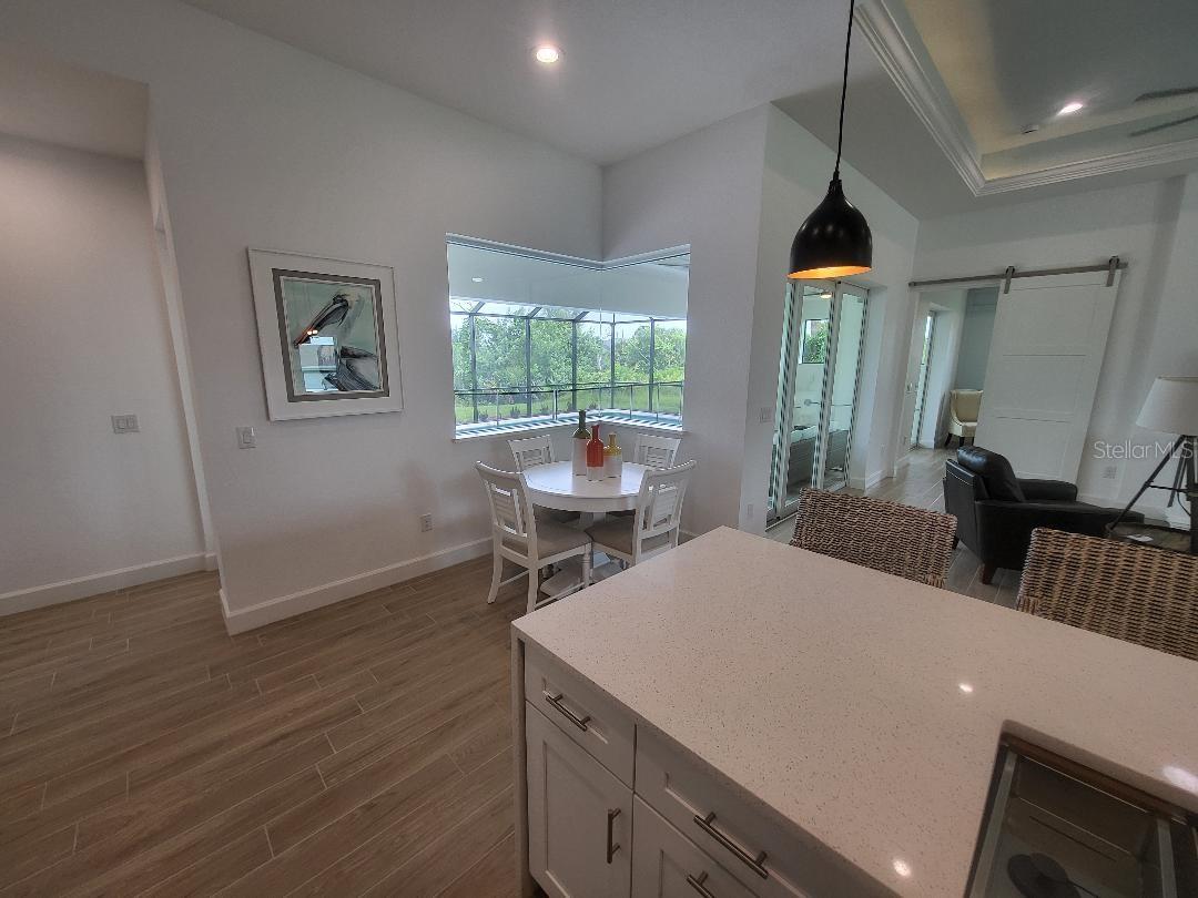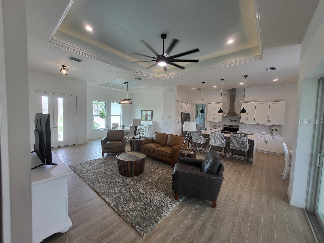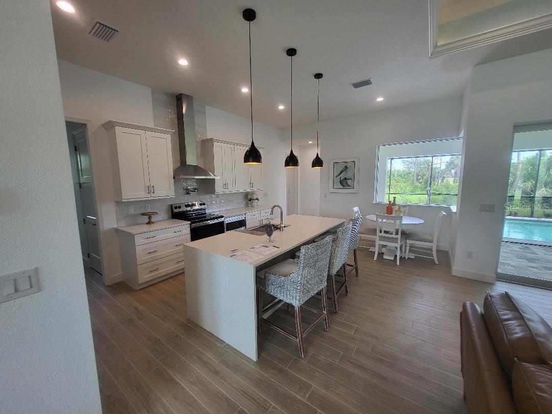 Brand new, JUST COMPLETED! 3/2/3 pool home. Easy ingress & egress in and out of Rotonda. Located in a flood zone X saving you $$$ on insurance. 120 x 80 large lot backs up to a wooded section of Pinemoor golf course providing for that treasured privacy. The 3rd garage stall offers that valuable storage lacking in most Florida homes. Hurricane rated windows and sliders. New Stainless steel appliances, granite counter tops and soft close wood cabinets in kitchen and all baths. All flooring is wood look tile planks with membrane crack suppressant underlayment. The home also features 8' tall front door & 10' flat ceilings with coffer in great room, dining room and bedrooms. 8' high pocket sliding doors from the great room to lanai bring the outside in. Master bath with dual sinks and full walk around shower, rain head with dual shower heads. Guest bath features a walk-in shower. Energy efficient spray foam insulation in walls and in living area ceilings, PGT aluminum low-E insulated Solar Ban 70XL impact glass doors and windows. Home is plumed for and outdoor kitchen. Porter Contracting has been building in the Englewood area since 1978. Property taxes shown reflect the lot taxes before the home being constructed. All dimensions are estimates and should be verified by buyer. Photographs are of a similar furnished completed model. Rotonda West is a community with 26 miles of picturesque canals, ponds and lakes that are abundant with fish and wildlife. Close to Englewood, Port Charlotte, Boca Grande, Gasparilla State Park and Don Pedro Island, this home lies between Sarasota and Ft Myers. Community features several walking & bike trails. Rotonda Park also offers a wildly beautiful and scenic nature preserve, nature trail, pickle ball courts, picnic tables with shelters, tennis courts and a playground. Perfect location to live your Florida life.There is so much to do with 5 beaches, local waterfront dining, shopping and entertainment. Tampa Bay Rays & Atlanta Braves baseball training parks are minutes away. The Rotonda Golf and Country Club offers five golf courses with 99 holes to golf to your heart's content. Boating & fishing abound in Lemon Bay and the Gulf of Mexico!!. Boca Grande Pass offers some of the world's best Tarpon fishing. Hurry this gem will not last long!!!
