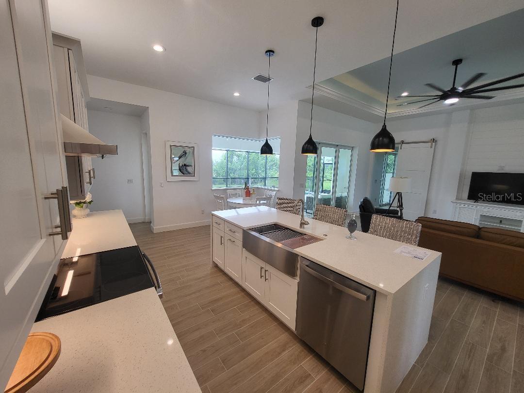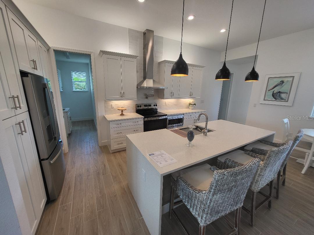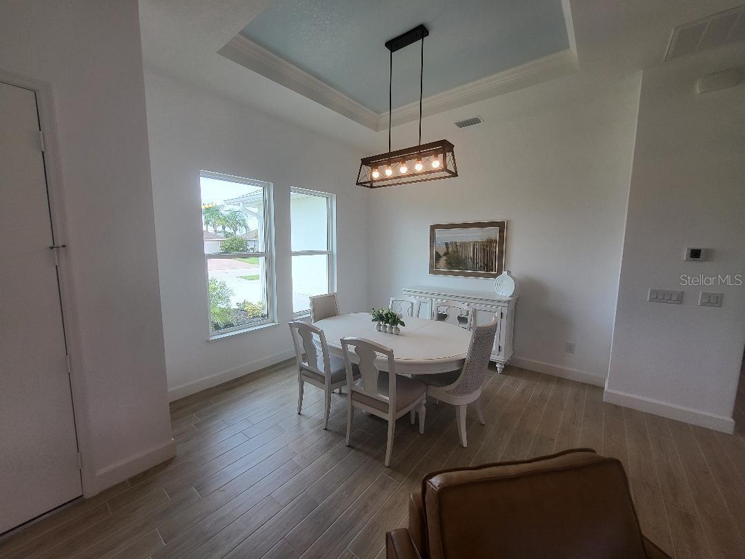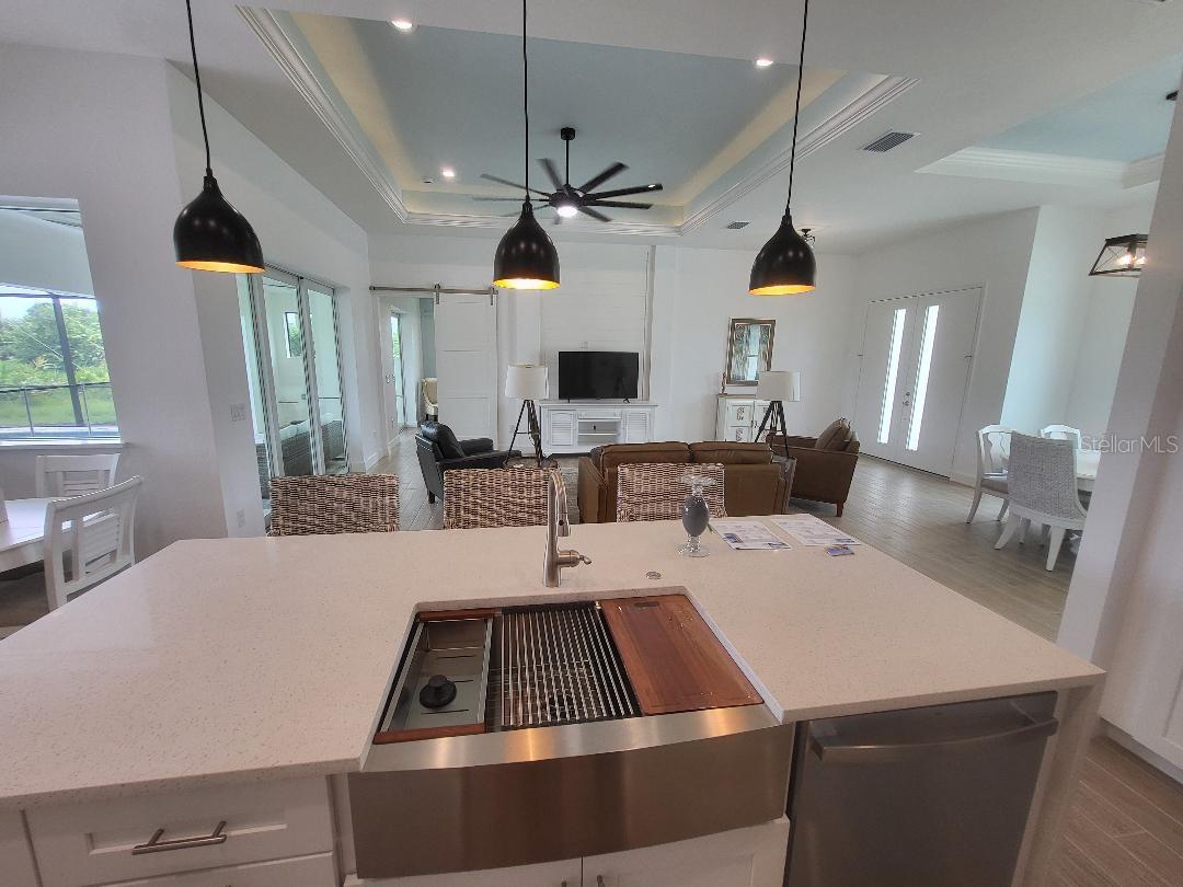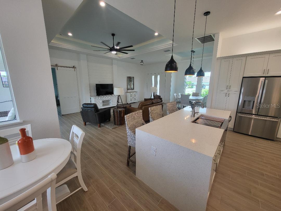 Brand new, JUST COMPLETED! 3/2/3 pool home. Easy ingress & egress in and out of Rotonda. Located in a flood zone X saving you $$$ on insurance. 120 x 80 large lot backs up to a wooded section of Pinemoor golf course providing for that treasured privacy. The 3rd garage stall offers that valuable storage lacking in most Florida homes. Hurricane rated windows and sliders. New Stainless steel appliances, granite counter tops and soft close wood cabinets in kitchen and all baths. All flooring is wood look tile planks with membrane crack suppressant underlayment. The home also features 8' tall front door & 10' flat ceilings with coffer in great room, dining room and bedrooms. 8' high pocket sliding doors from the great room to lanai bring the outside in. Master bath with dual sinks and full walk around shower, rain head with dual shower heads. Guest bath features a walk-in shower. Energy efficient spray foam insulation in walls and in living area ceilings, PGT aluminum low-E insulated Solar Ban 70XL impact glass doors and windows. Home is plumed for and outdoor kitchen. Porter Contracting has been building in the Englewood area since 1978. Property taxes shown reflect the lot taxes before the home being constructed. All dimensions are estimates and should be verified by buyer. Photographs are of a similar furnished completed model. Rotonda West is a community with 26 miles of picturesque canals, ponds and lakes that are abundant with fish and wildlife. Close to Englewood, Port Charlotte, Boca Grande, Gasparilla State Park and Don Pedro Island, this home lies between Sarasota and Ft Myers. Community features several walking & bike trails. Rotonda Park also offers a wildly beautiful and scenic nature preserve, nature trail, pickle ball courts, picnic tables with shelters, tennis courts and a playground. Perfect location to live your Florida life.There is so much to do with 5 beaches, local waterfront dining, shopping and entertainment. Tampa Bay Rays & Atlanta Braves baseball training parks are minutes away. The Rotonda Golf and Country Club offers five golf courses with 99 holes to golf to your heart's content. Boating & fishing abound in Lemon Bay and the Gulf of Mexico!!. Boca Grande Pass offers some of the world's best Tarpon fishing. Hurry this gem will not last long!!!