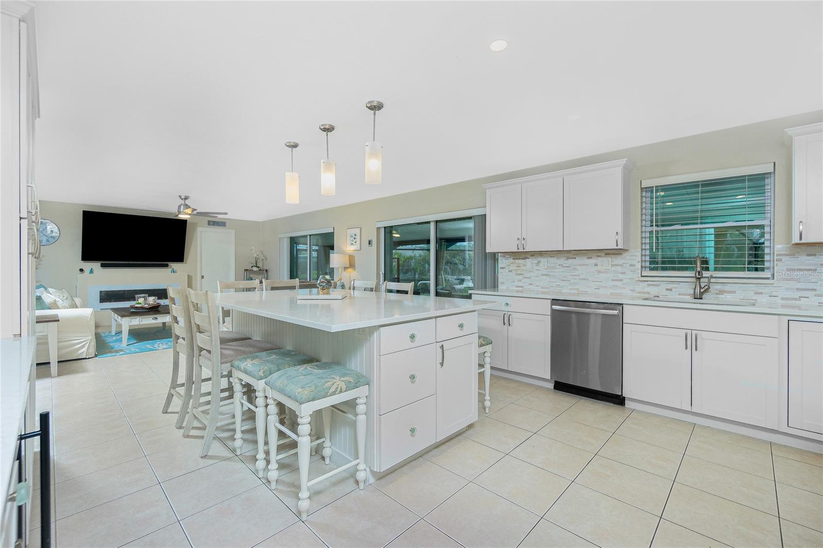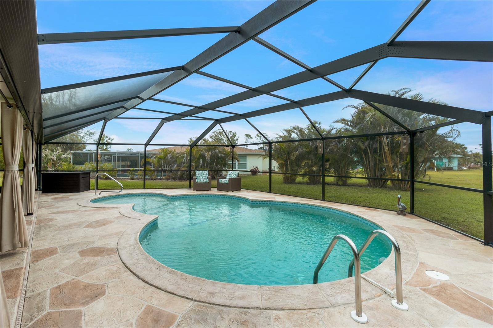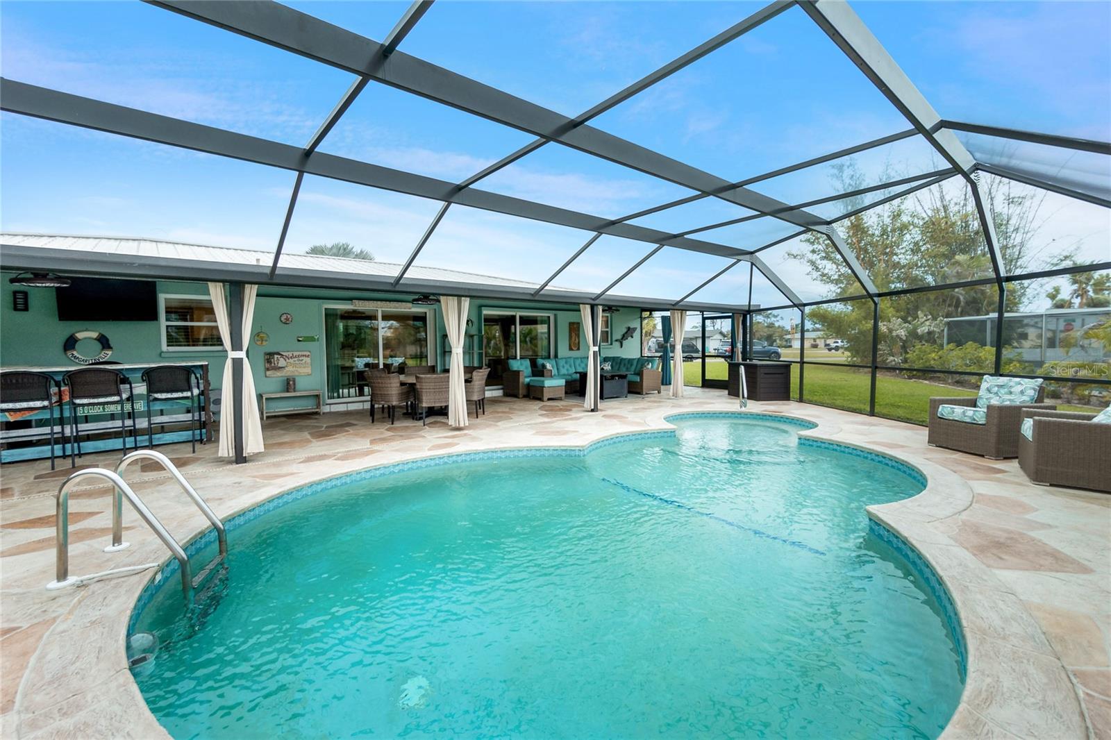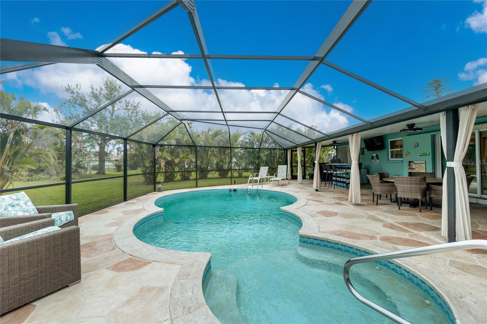 THIS IS THE HOME YOU HAVE BEEN WAITING FOR!! Welcome to this beautifully updated 3-Bedroom, 2-Bath Heated Pool Home in the desirable community of Rotonda West! This home offers an inviting open-concept design, perfect for entertaining and everyday living. Step into the heart of the home – a STUNNING kitchen featuring a spacious 5’ x 8’ island (large enough to seat 10-12 ppl), QUARTZ countertops modern finishes, and LOTS OF STORAGE, making it ideal for cooking and gathering. The seamless flow into the living room with new electric fireplace (2024) enhances the home's airy and welcoming atmosphere. Enjoy Florida living at its finest with an OVERSIZED 12’ x 60’ LANAI perfect for entertaining, relaxing, or enjoying the serene surroundings. Beautiful outdoor sheers adorn the lanai giving you the option to enhance privacy and a give you a cabana feel when entertaining. The split-bedroom layout offers privacy, with a spacious primary suite with a walk-in closet, 2 additional closets and a makeup/dressing room. There are also two additional well-appointed bedrooms. This home offers a metal roof (2022), hurricane windows and doors (2020), 2 hurricane sliders (2024), 1 slider in bedroom 2 was not replaced, a new pool cage and lanai roof (2023), hot water tank (2020). Stainless steel appliances (dishwasher-2019, refrigerator-2023) Water softener replaced (2022). Owners flood insurance policy is TRANSFERABLE. THIS HOME DID NOT FLOOD DURING ANY OF THE PAST FEW YEARS HURRICANES. Located in a peaceful and picturesque neighborhood, this home is close to golf courses, beaches, shopping, and dining, Atlanta Braves and Tampa Bay Rays spring training facilities, and close to world class fishing on Boca Grande. This home checks all the boxes. Don't miss the opportunity to make this move-in-ready gem yours!