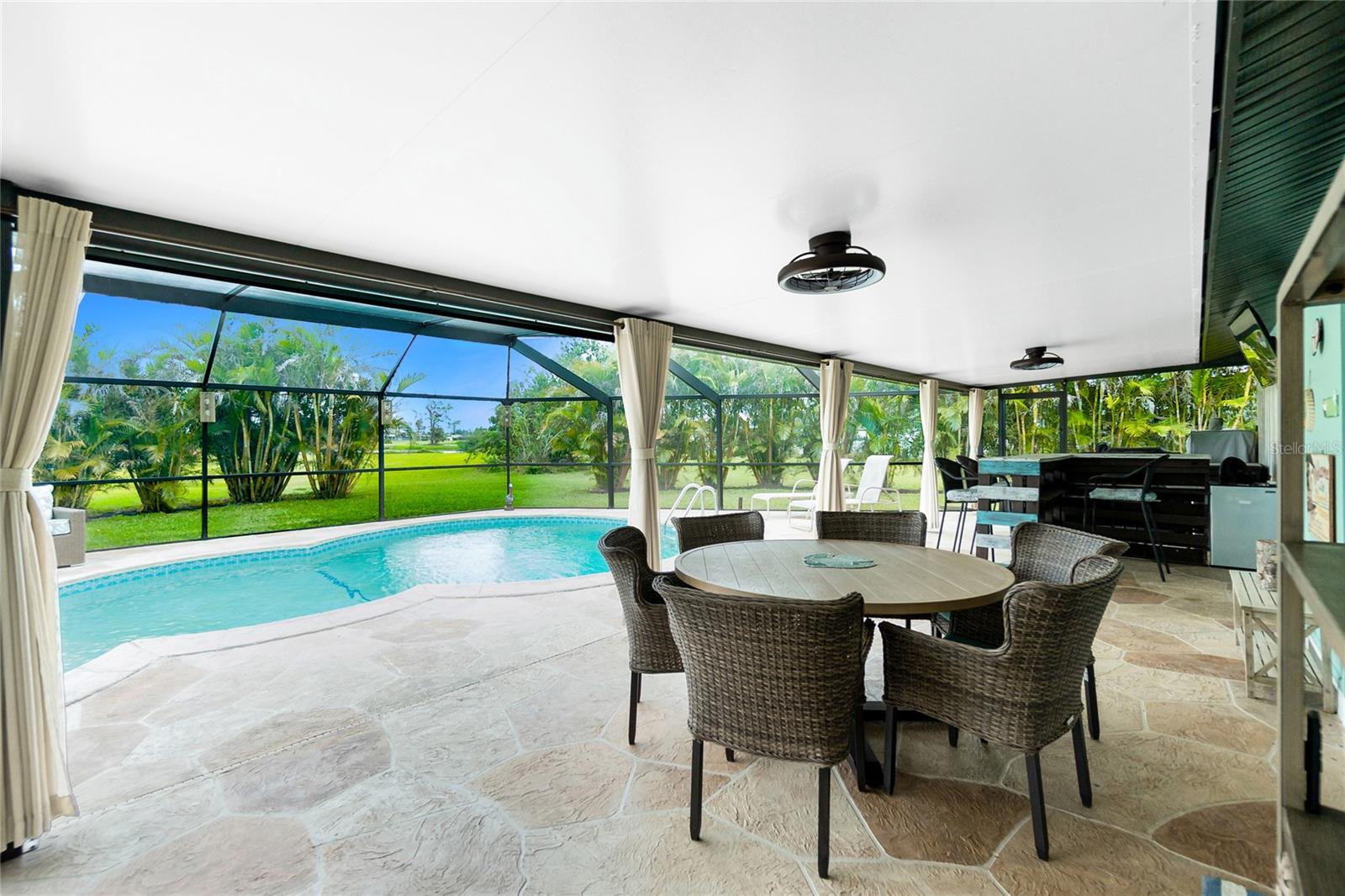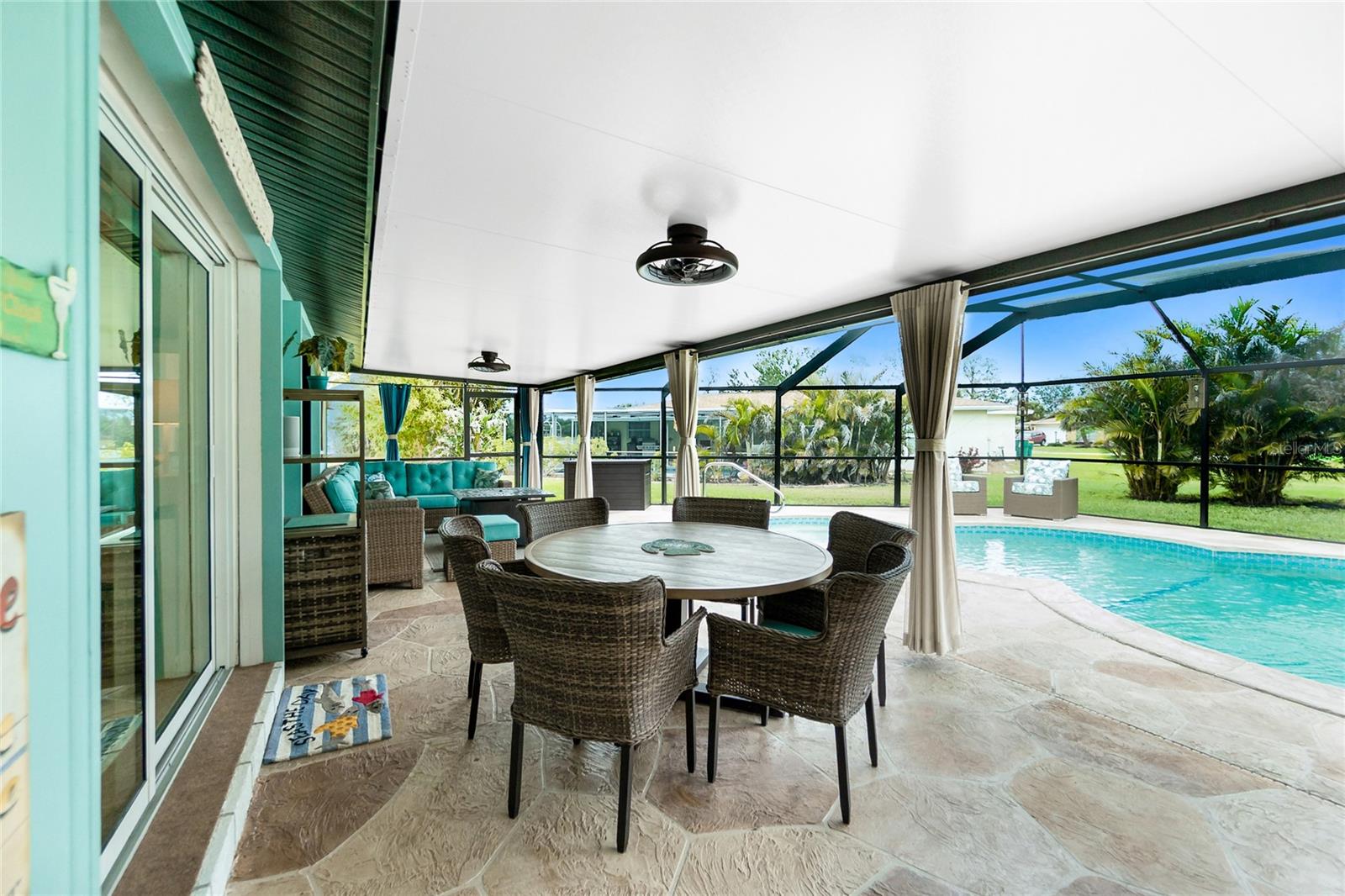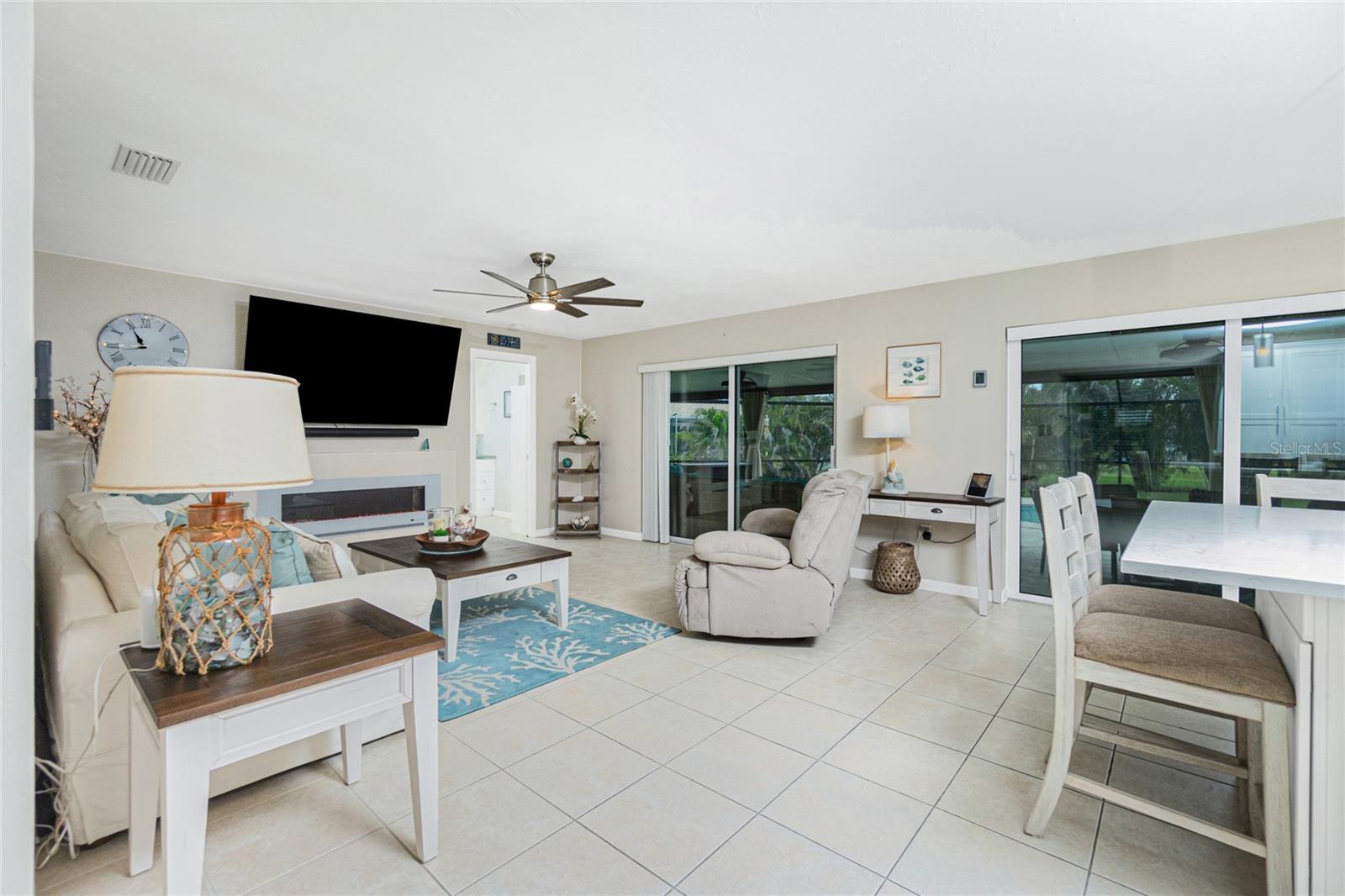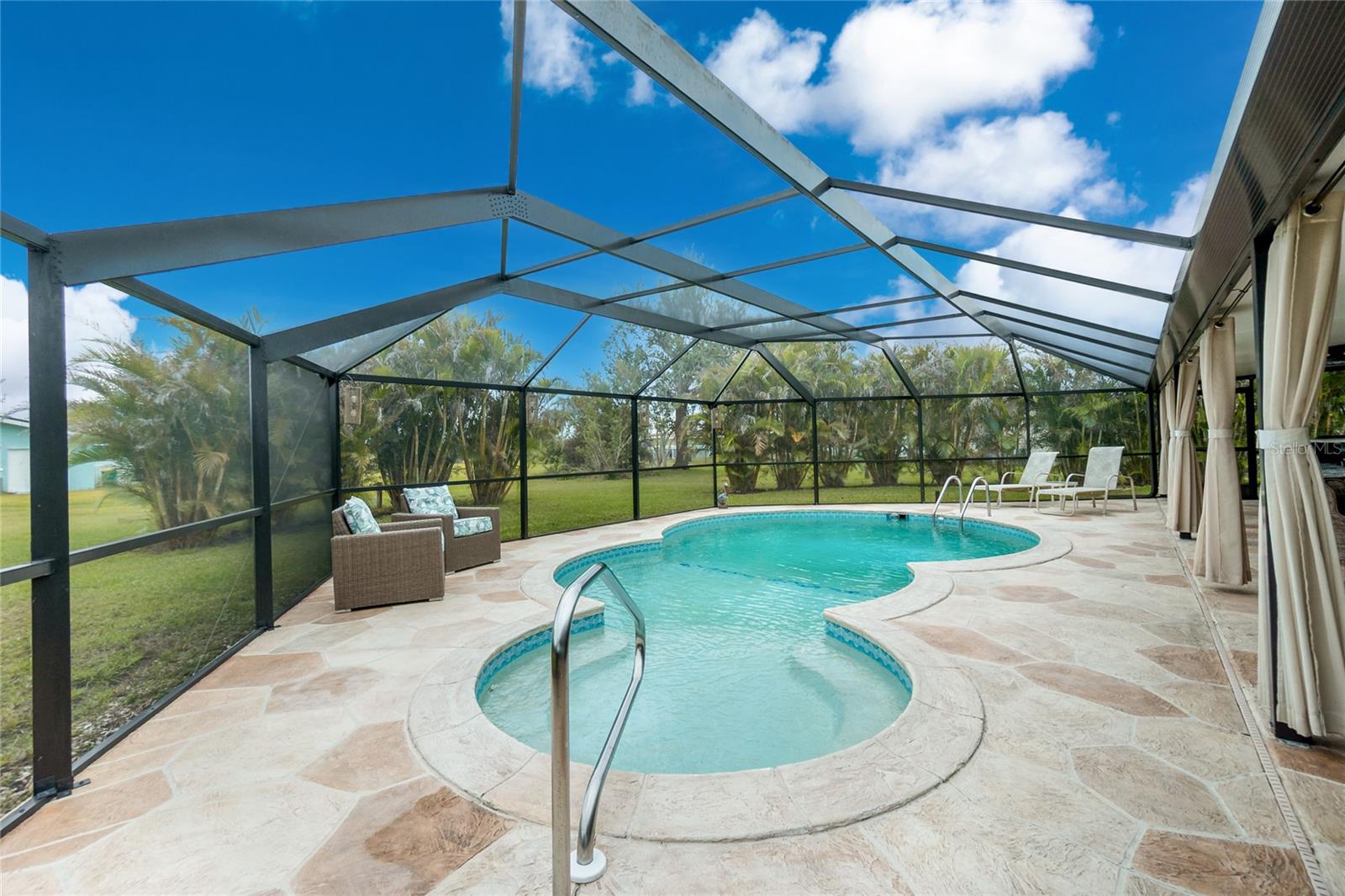 THIS IS THE HOME YOU HAVE BEEN WAITING FOR!! Welcome to this beautifully updated 3-Bedroom, 2-Bath Heated Pool Home in the desirable community of Rotonda West! This home offers an inviting open-concept design, perfect for entertaining and everyday living. Step into the heart of the home – a STUNNING kitchen featuring a spacious 5’ x 8’ island (large enough to seat 10-12 ppl), QUARTZ countertops modern finishes, and LOTS OF STORAGE, making it ideal for cooking and gathering. The seamless flow into the living room with new electric fireplace (2024) enhances the home's airy and welcoming atmosphere. Enjoy Florida living at its finest with an OVERSIZED 12’ x 60’ LANAI perfect for entertaining, relaxing, or enjoying the serene surroundings. Beautiful outdoor sheers adorn the lanai giving you the option to enhance privacy and a give you a cabana feel when entertaining. The split-bedroom layout offers privacy, with a spacious primary suite with a walk-in closet, 2 additional closets and a makeup/dressing room. There are also two additional well-appointed bedrooms. This home offers a metal roof (2022), hurricane windows and doors (2020), 2 hurricane sliders (2024), 1 slider in bedroom 2 was not replaced, a new pool cage and lanai roof (2023), hot water tank (2020). Stainless steel appliances (dishwasher-2019, refrigerator-2023) Water softener replaced (2022). Owners flood insurance policy is TRANSFERABLE. THIS HOME DID NOT FLOOD DURING ANY OF THE PAST FEW YEARS HURRICANES. Located in a peaceful and picturesque neighborhood, this home is close to golf courses, beaches, shopping, and dining, Atlanta Braves and Tampa Bay Rays spring training facilities, and close to world class fishing on Boca Grande. This home checks all the boxes. Don't miss the opportunity to make this move-in-ready gem yours!