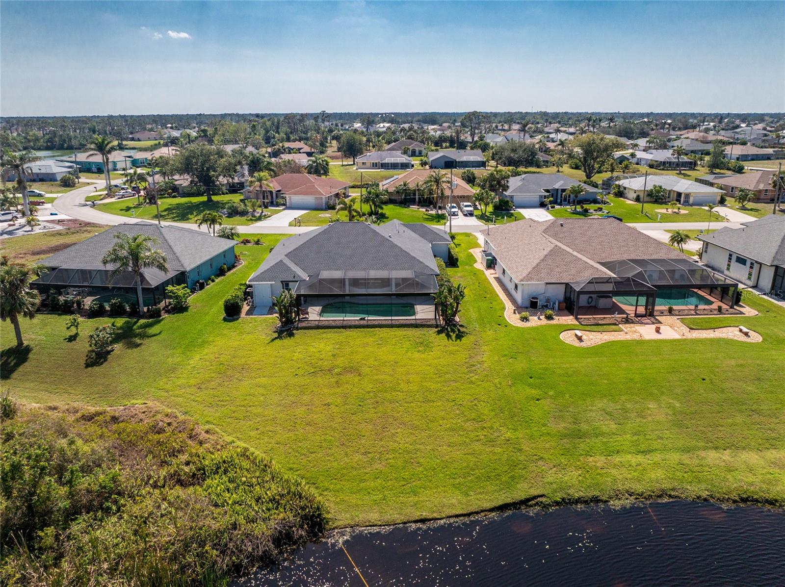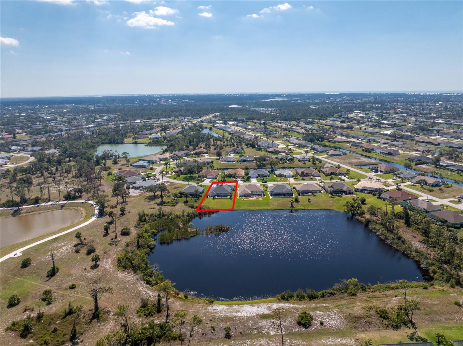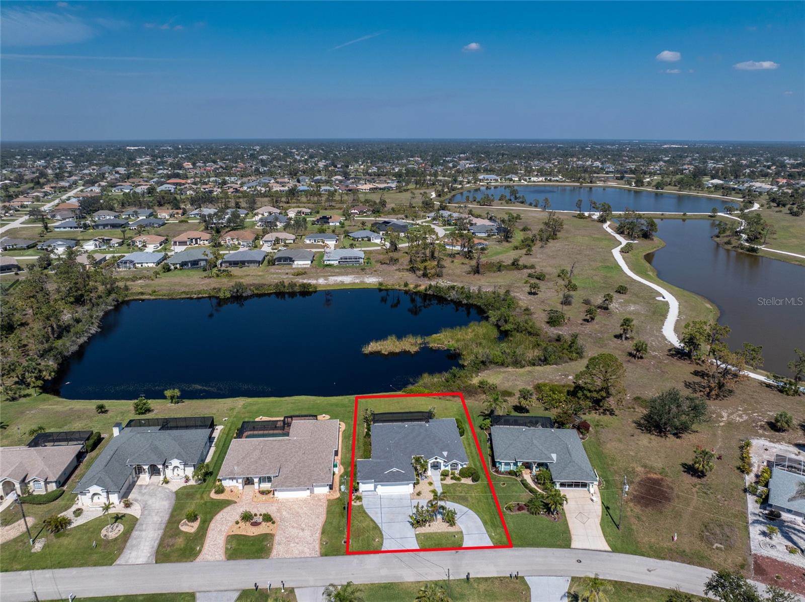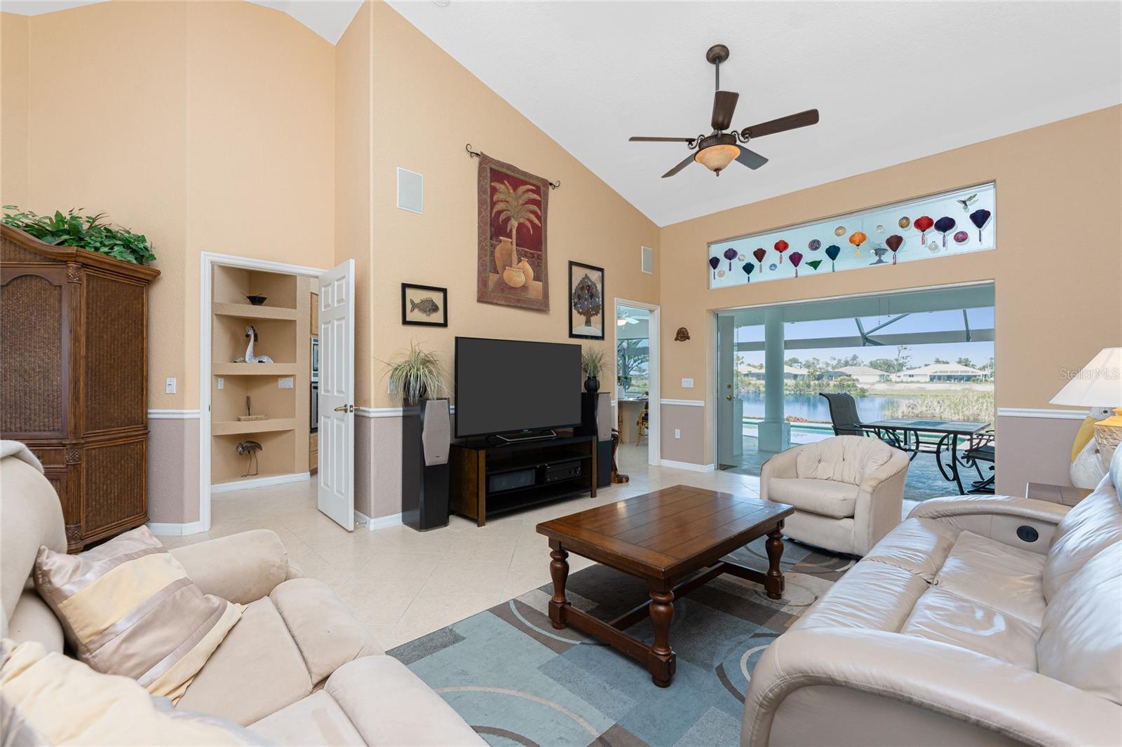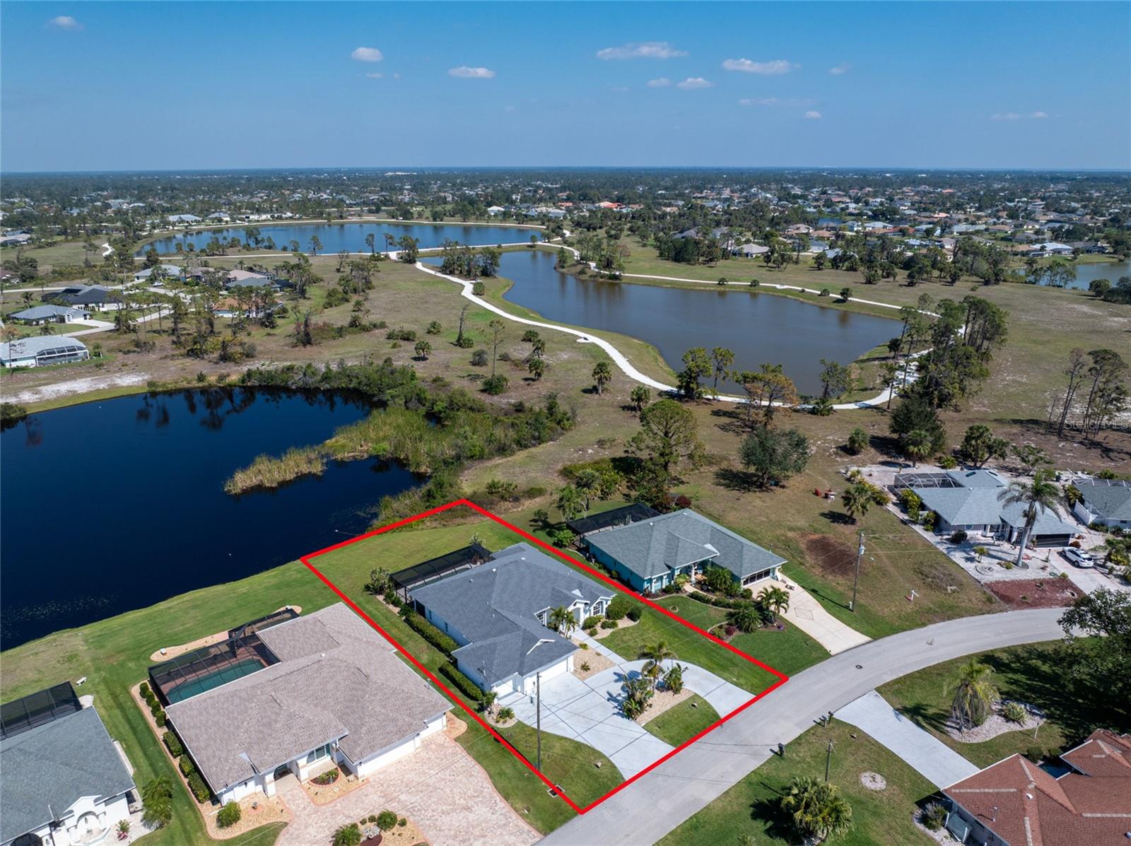 Live the Dream: Gorgeous Lakefront Property in Rotonda West! This exceptional 4-bedroom, 3-bath, 3-car garage pool home is located in an X flood zone and provides added peace of mind with Storm Smart hurricane protection on all windows and doors, except for an accordion shutter on the front door. As you approach, you'll appreciate the convenience and extra parking offered by the circular driveway, complemented by mature landscaping. The 2022 roof and stunning etched glass double front doors create a warm and inviting entrance. Inside, you'll discover a spacious open layout with soaring ceilings and pocketing sliding glass doors that seamlessly extend your living space to the screened lanai. The generous kitchen offers ample cabinet space, granite countertops, and stainless steel appliances. In the breakfast nook, panoramic windows frame breathtaking views of the lake, allowing you to enjoy local wildlife while preparing meals. The primary ensuite bedroom features soothing blue tones that create a relaxing atmosphere, complemented by tray ceilings and dual walk-in closets. Sliding doors offer direct access to the pool, while the spacious bathroom includes dual separate vanities (one with a makeup area), a jetted tub, and a large walk-in shower. There are two additional ensuite bedrooms, one of which also serves as an easily accessible pool bath, both featuring walk-in closets, great for family and guests. The fourth bedroom offers the flexibility to be used as extra living space, a home office, gym, or hobby room. Outside, you'll find a spacious bronzed cage with a panoramic screened lanai and a heated pool, offering unobstructed views of the beautiful lake. It's the perfect spot to float your cares away, while the mature landscaping surrounding the pool cage ensures plenty of privacy. Additional highlights include a 2018 A/C, new master bedroom flooring in 2023, a canal-fed irrigation system with a 2024 pump, an outdoor storage closet, and the home is being sold furnished. This home is located in the deed restricted community of Rotonda West where you can enjoy an active lifestyle with low HOA fees and access to multiple walking and biking trails, pickleball, tennis courts and a clubhouse where you can participate in year round activities and events. Love to golf? You are within minutes of 5 premier courses! When you want to explore the area you will find multiple white sandy beaches, boat ramps, kayak launches, shopping, dining, live entertainment, two MLB spring training facilities are close by. This is a great home for those needing space for everyone, contact us today to schedule your private showing.