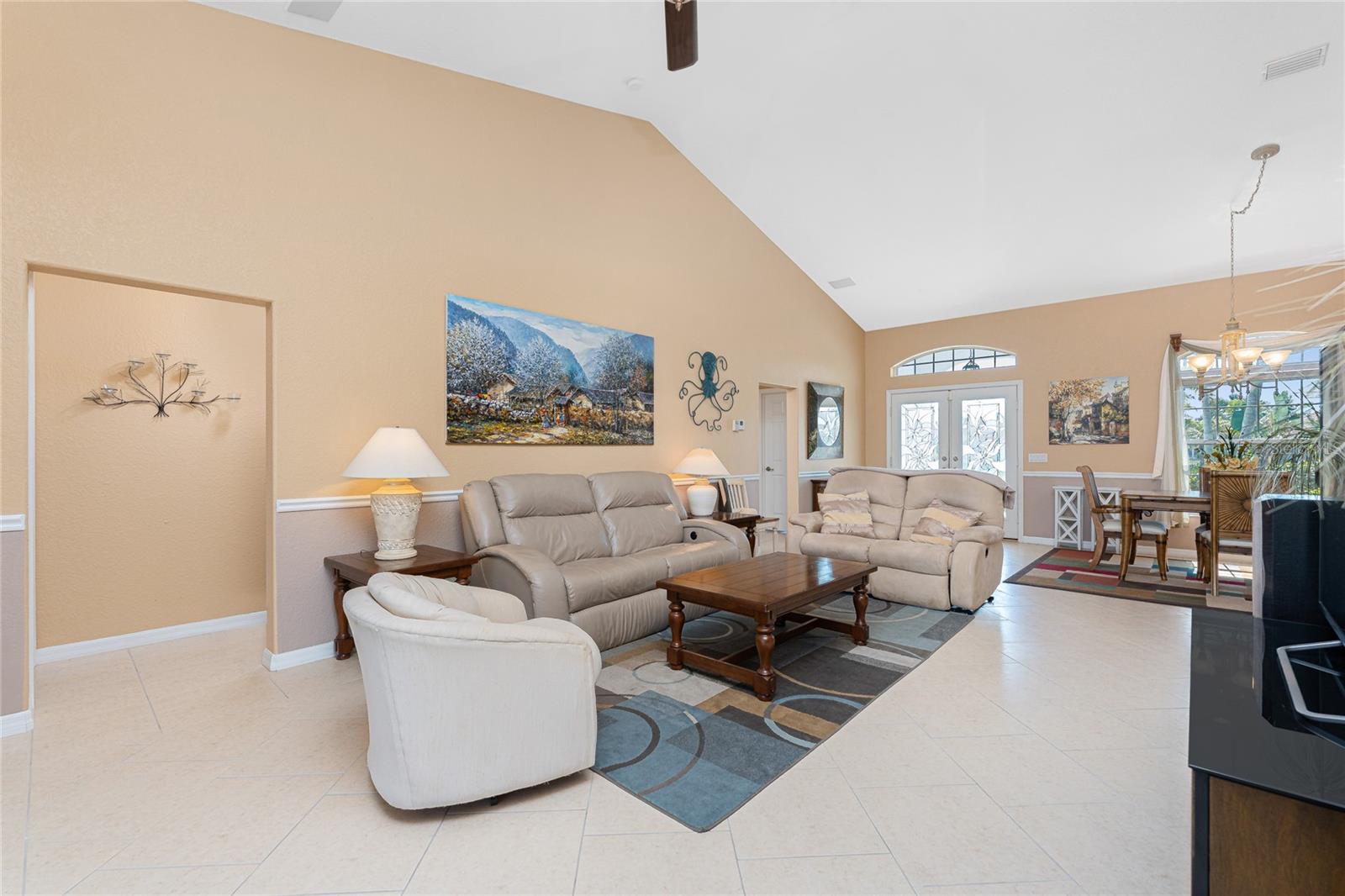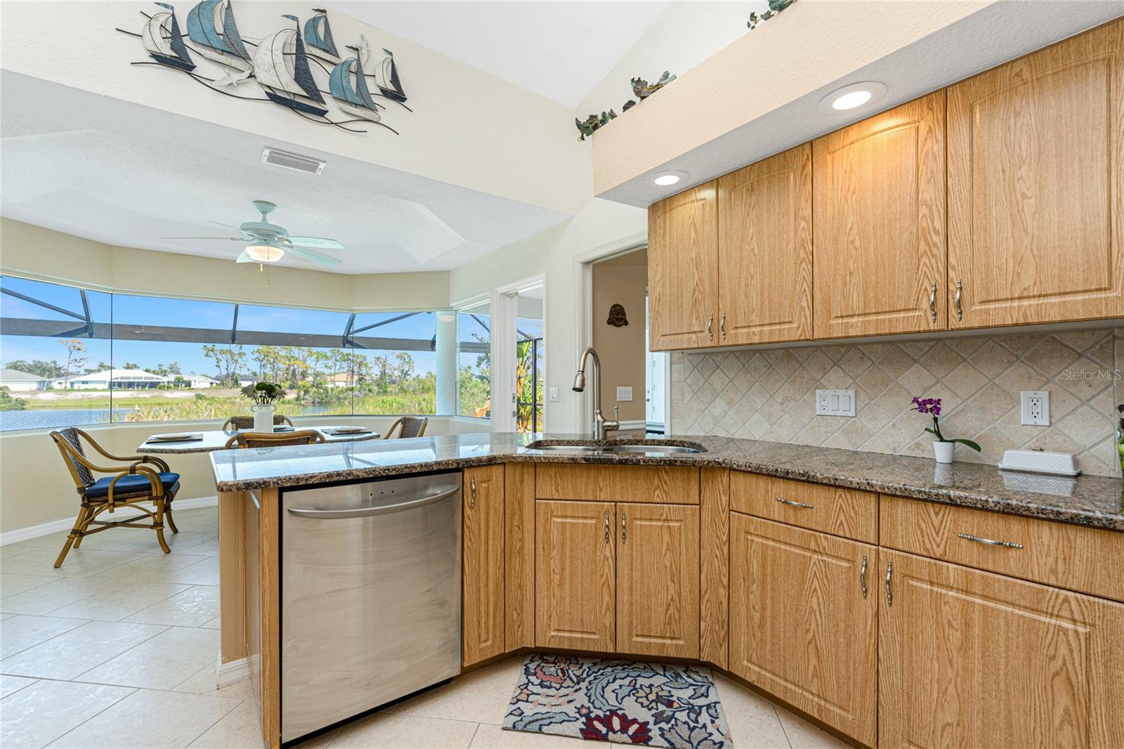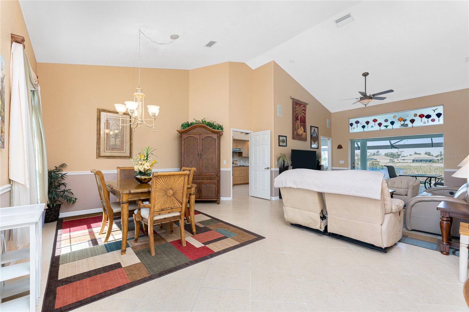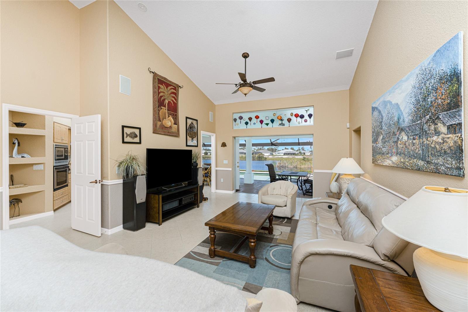 Live the Dream: Gorgeous Lakefront Property in Rotonda West! This exceptional 4-bedroom, 3-bath, 3-car garage pool home is located in an X flood zone and provides added peace of mind with Storm Smart hurricane protection on all windows and doors, except for an accordion shutter on the front door. As you approach, you'll appreciate the convenience and extra parking offered by the circular driveway, complemented by mature landscaping. The 2022 roof and stunning etched glass double front doors create a warm and inviting entrance. Inside, you'll discover a spacious open layout with soaring ceilings and pocketing sliding glass doors that seamlessly extend your living space to the screened lanai. The generous kitchen offers ample cabinet space, granite countertops, and stainless steel appliances. In the breakfast nook, panoramic windows frame breathtaking views of the lake, allowing you to enjoy local wildlife while preparing meals. The primary ensuite bedroom features soothing blue tones that create a relaxing atmosphere, complemented by tray ceilings and dual walk-in closets. Sliding doors offer direct access to the pool, while the spacious bathroom includes dual separate vanities (one with a makeup area), a jetted tub, and a large walk-in shower. There are two additional ensuite bedrooms, one of which also serves as an easily accessible pool bath, both featuring walk-in closets, great for family and guests. The fourth bedroom offers the flexibility to be used as extra living space, a home office, gym, or hobby room. Outside, you'll find a spacious bronzed cage with a panoramic screened lanai and a heated pool, offering unobstructed views of the beautiful lake. It's the perfect spot to float your cares away, while the mature landscaping surrounding the pool cage ensures plenty of privacy. Additional highlights include a 2018 A/C, new master bedroom flooring in 2023, a canal-fed irrigation system with a 2024 pump, an outdoor storage closet, and the home is being sold furnished. This home is located in the deed restricted community of Rotonda West where you can enjoy an active lifestyle with low HOA fees and access to multiple walking and biking trails, pickleball, tennis courts and a clubhouse where you can participate in year round activities and events. Love to golf? You are within minutes of 5 premier courses! When you want to explore the area you will find multiple white sandy beaches, boat ramps, kayak launches, shopping, dining, live entertainment, two MLB spring training facilities are close by. This is a great home for those needing space for everyone, contact us today to schedule your private showing.