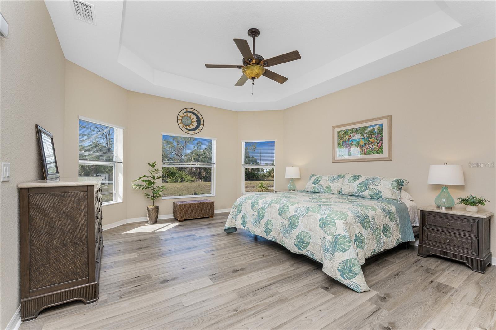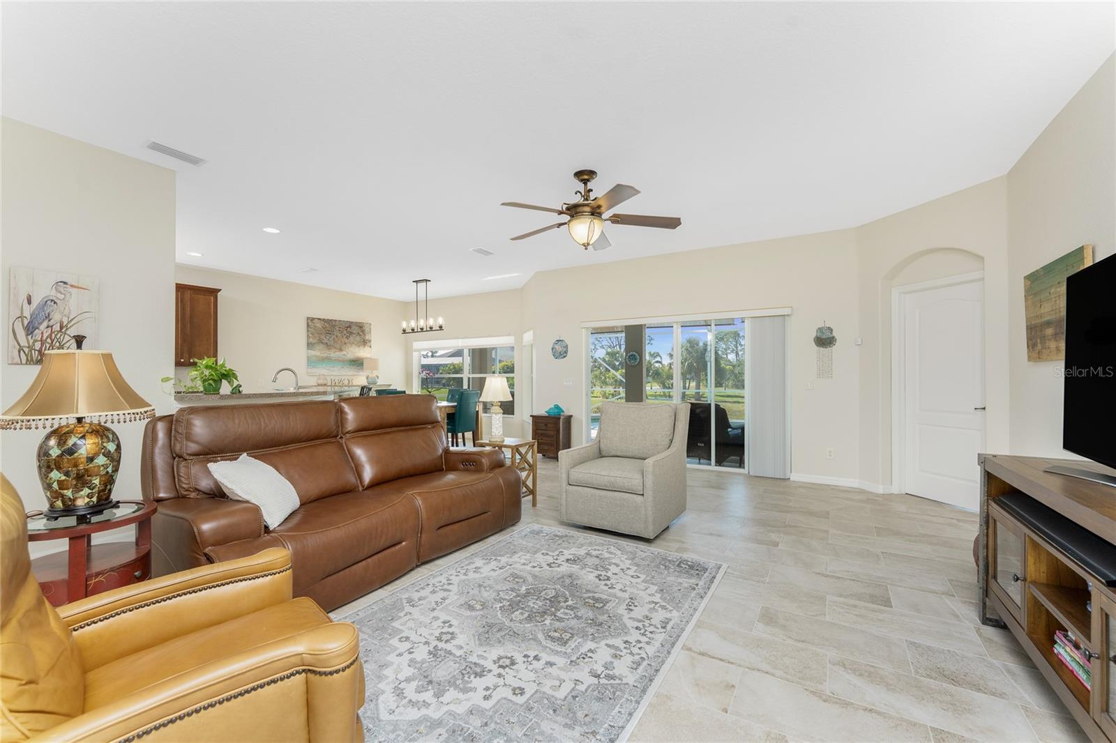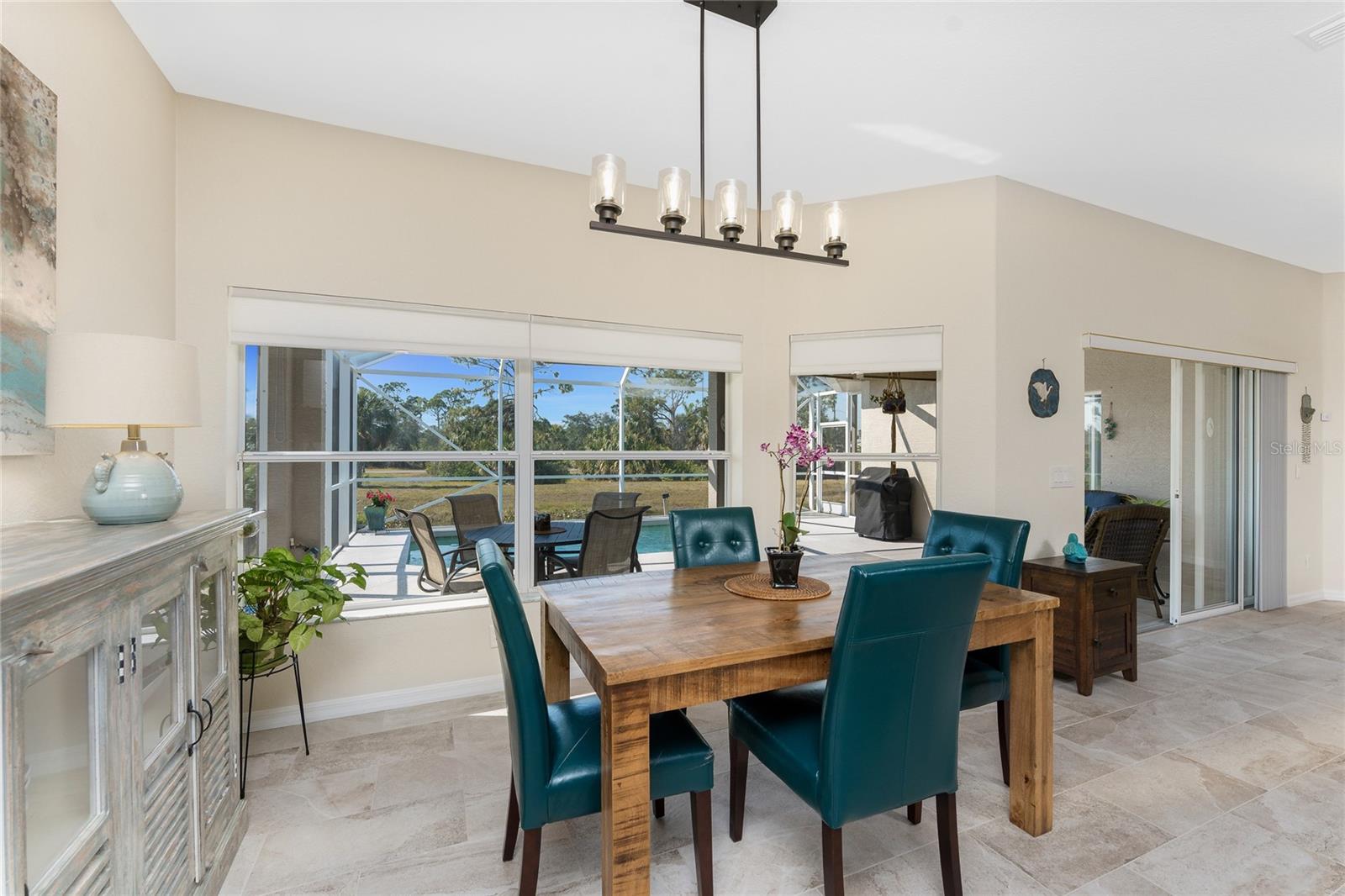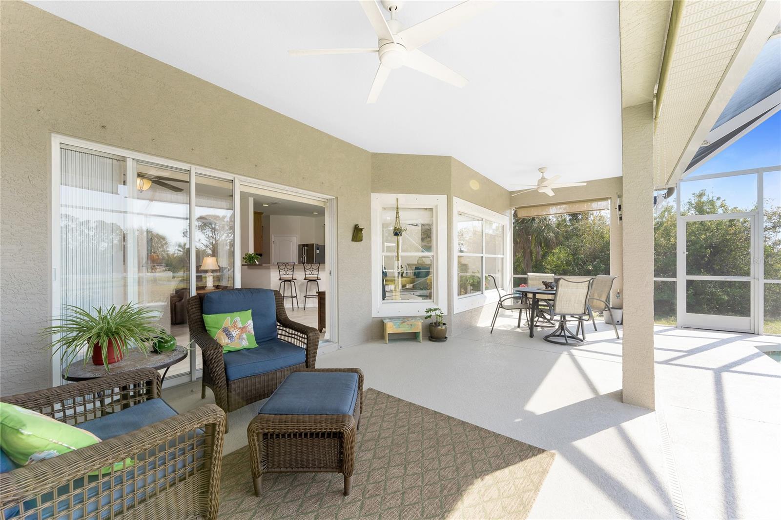 Stunning Upgraded Canal-Front Home in Serene Rotonda Lakes! Enjoy breathtaking sunsets and glimpses of local wildlife from this beautifully designed, turnkey furnished, three-bedroom, two-bath Boca Grande model. This elegant home offers great curb appeal with the mature landscaping, 2023 roof with warranty, and charming double door entry with transom window. Inside, the inviting open floor plan is filled with natural light, featuring ceramic tile flooring in the main living areas and bathrooms, along with luxury vinyl plank in the bedrooms, all installed in 2019. Fresh, neutral paint in the living area, formal dining, foyer, and kitchen (updated in 2023) enhances the home's bright and modern feel. The kitchen offers an abundance of Merliatt wood cabinetry, a raised breakfast bar, a built-in desk area, stainless steel appliances, and a spacious walk-in pantry. The adjoining casual dining space, framed by large windows overlooking the pool and canal, creates the perfect setting to enjoy your morning coffee with a view. The generously sized ensuite master bedroom features elegant tray ceilings, a wall of windows, a spacious walk-in closet, and sliding door access to the pool and lanai. The master bathroom offers a large dual sink vanity and a fully tiled walk-in shower, combining style and functionality. The two comfortable guest bedrooms feature reach-in closets. The well-appointed guest bathroom includes a tiled shower/tub combo, offering both style and convenience. Step outside to your private outdoor oasis, where an oversized screened lanai, a heated pool, and serene canal views await. Whether you're relaxing poolside or enjoying the view, this space is perfect for outdoor Florida living and entertaining. Additional updates include hurricane shutters, a canal-fed irrigation system, an R/O water system, and smart home-controlled security system, irrigation, and thermostat. Other updates are a brand-new 2024 pool heater, a 2022 HVAC system, new all-house gutters, interior and exterior lighting, and fresh exterior paint in 2021. For added privacy, the owner-owned vacant lot across the canal is available for purchase, ensuring a peaceful backyard retreat for years to come. Rotonda Lakes, a deed-restricted community, offers quick access to five premier golf courses, shopping, dining, fishing, medical facilities, pristine Gulf beaches, and spring professional baseball at Charlotte Sports Park. Set in a neighborhood perfect for walking and biking, this home offers the best of both tranquility and convenience. Don’t miss this opportunity - schedule your private showing today!