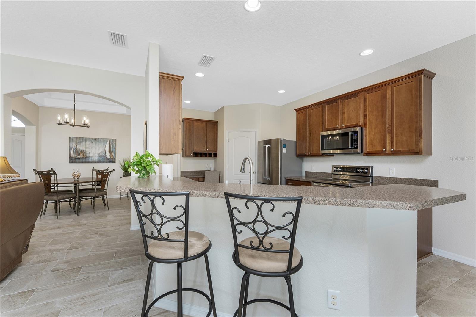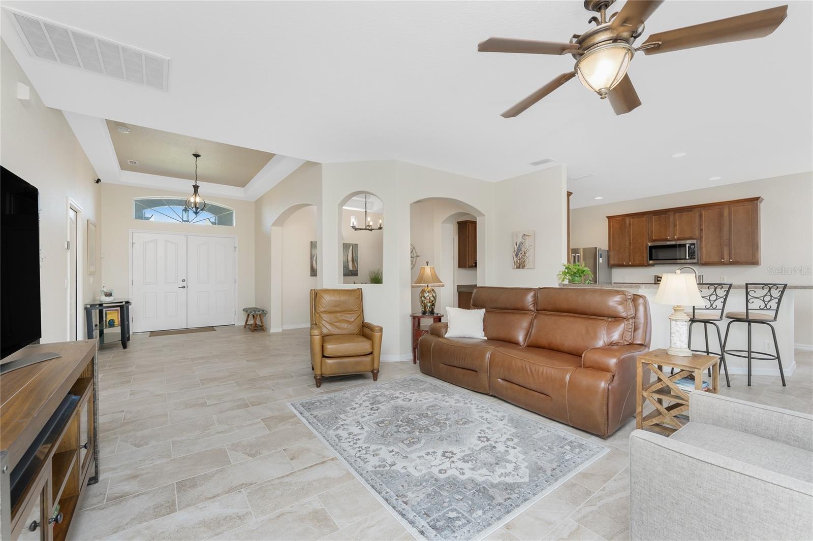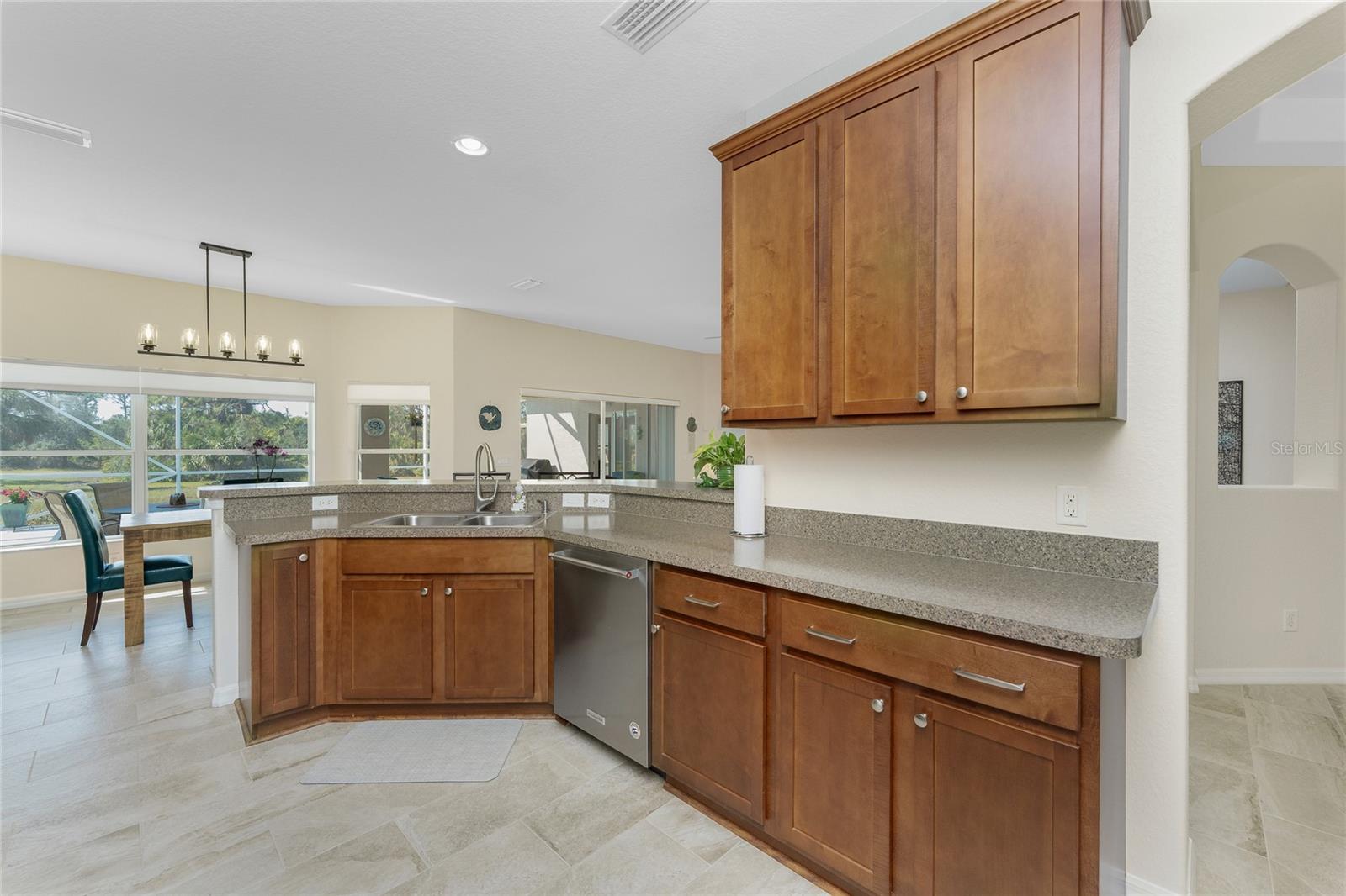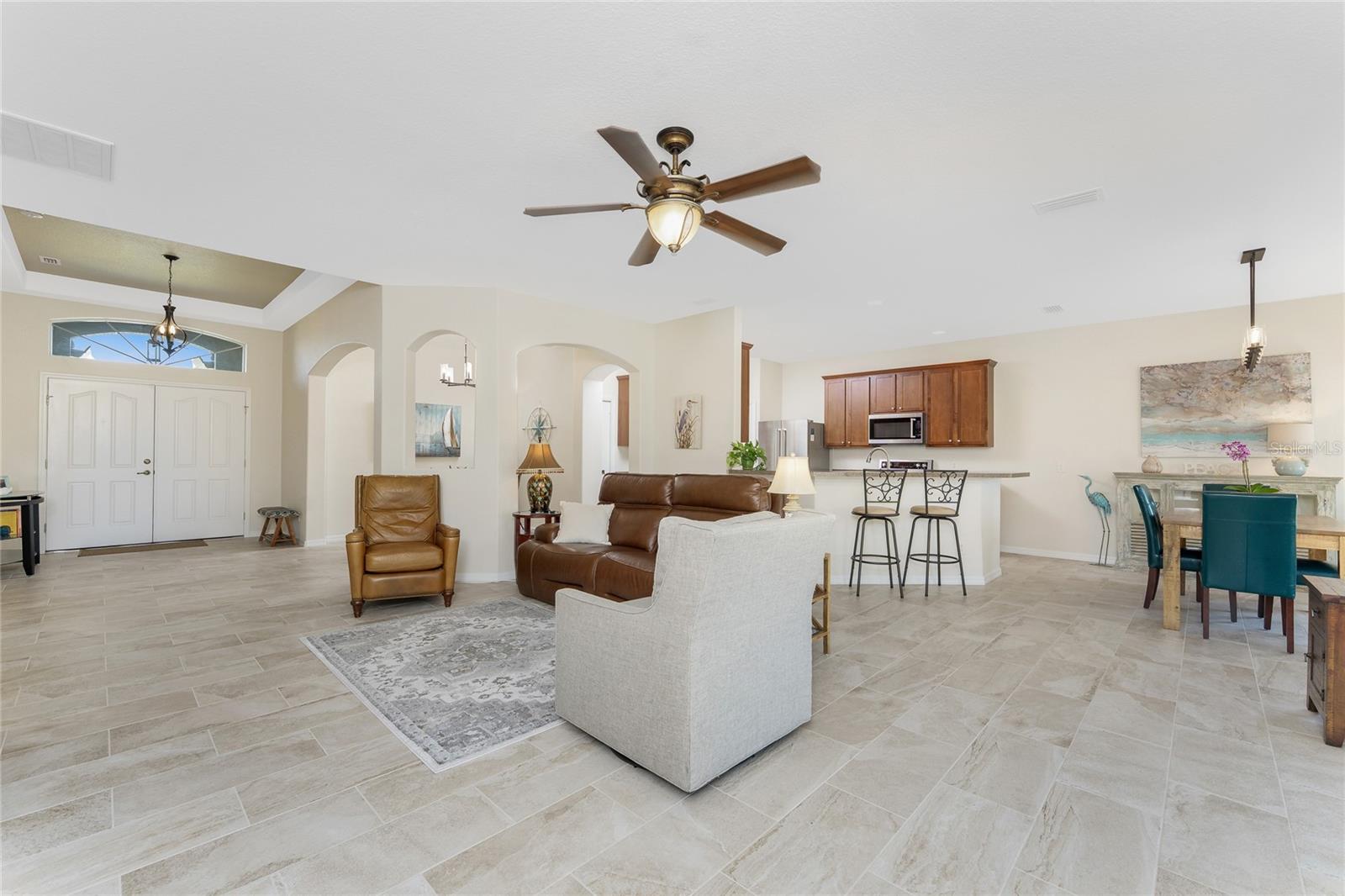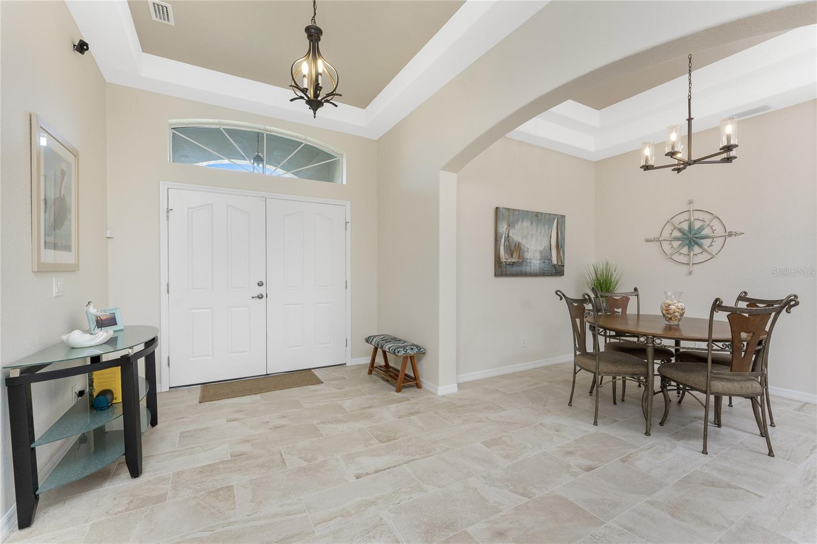 Stunning Upgraded Canal-Front Home in Serene Rotonda Lakes! Enjoy breathtaking sunsets and glimpses of local wildlife from this beautifully designed, turnkey furnished, three-bedroom, two-bath Boca Grande model. This elegant home offers great curb appeal with the mature landscaping, 2023 roof with warranty, and charming double door entry with transom window. Inside, the inviting open floor plan is filled with natural light, featuring ceramic tile flooring in the main living areas and bathrooms, along with luxury vinyl plank in the bedrooms, all installed in 2019. Fresh, neutral paint in the living area, formal dining, foyer, and kitchen (updated in 2023) enhances the home's bright and modern feel. The kitchen offers an abundance of Merliatt wood cabinetry, a raised breakfast bar, a built-in desk area, stainless steel appliances, and a spacious walk-in pantry. The adjoining casual dining space, framed by large windows overlooking the pool and canal, creates the perfect setting to enjoy your morning coffee with a view. The generously sized ensuite master bedroom features elegant tray ceilings, a wall of windows, a spacious walk-in closet, and sliding door access to the pool and lanai. The master bathroom offers a large dual sink vanity and a fully tiled walk-in shower, combining style and functionality. The two comfortable guest bedrooms feature reach-in closets. The well-appointed guest bathroom includes a tiled shower/tub combo, offering both style and convenience. Step outside to your private outdoor oasis, where an oversized screened lanai, a heated pool, and serene canal views await. Whether you're relaxing poolside or enjoying the view, this space is perfect for outdoor Florida living and entertaining. Additional updates include hurricane shutters, a canal-fed irrigation system, an R/O water system, and smart home-controlled security system, irrigation, and thermostat. Other updates are a brand-new 2024 pool heater, a 2022 HVAC system, new all-house gutters, interior and exterior lighting, and fresh exterior paint in 2021. For added privacy, the owner-owned vacant lot across the canal is available for purchase, ensuring a peaceful backyard retreat for years to come. Rotonda Lakes, a deed-restricted community, offers quick access to five premier golf courses, shopping, dining, fishing, medical facilities, pristine Gulf beaches, and spring professional baseball at Charlotte Sports Park. Set in a neighborhood perfect for walking and biking, this home offers the best of both tranquility and convenience. Don’t miss this opportunity - schedule your private showing today!