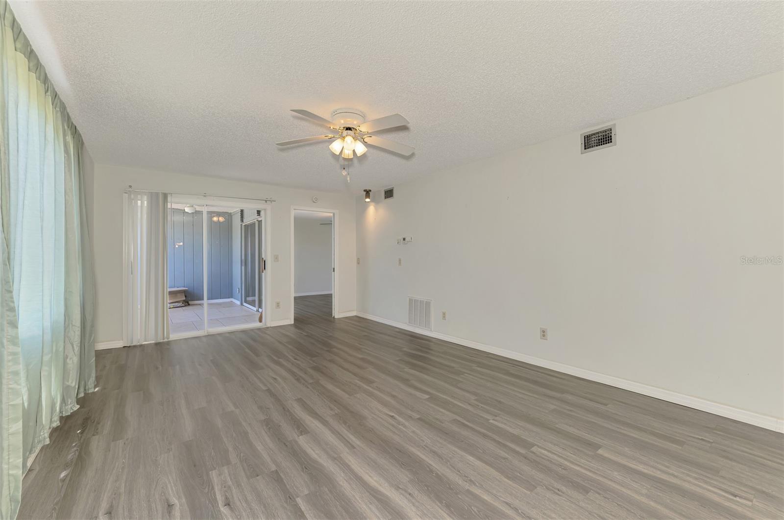 Welcome to the charming community in Rotonda West. Boasting a prime location on the first floor, 2 bedrooms and 2 baths condo with open floor plan. Open floor plan offers a kitchen with breakfast bar, separate dining area and opens to the living room with sliding glass doors to the lanai. The kitchen boasts ample cabinets and counter space, while the dining/living room combo provides an inviting space for relaxation and entertainment, offering a seamless flow for everyday living. Tucked away in a hall closet, the inside laundry area features stackable washer and dryer for added convenience. Both bedrooms provide their own unique appeal, with the guest bedroom providing ample space for guests with a built in closet and ceiling fan. The master bedroom boasts a spacious layout, complete with a walk-in closet for storage ease. The master bathroom features a single sink and walk-in shower, while the guest bathroom features a sink and shower/tub combo. Step out onto the lanai to savor the nice quiet space, where you can start your day with a tranquil cup of morning coffee watching the sunrise or unwind in the evenings. You will enjoy going to the community pool to relax after a long day. Rotonda West is a deed restricted golf course community. Located near area beaches, bike trails, fine dining, shopping, Boca Grande, 5 premier golf course and world class fishing.