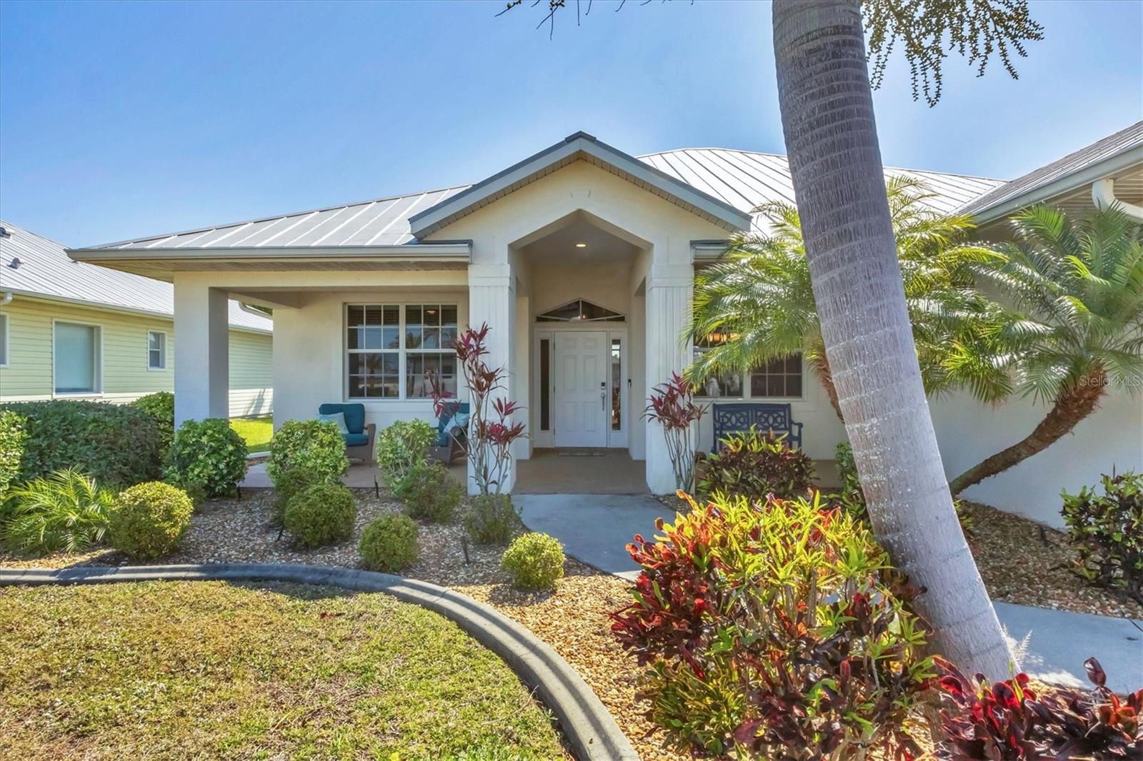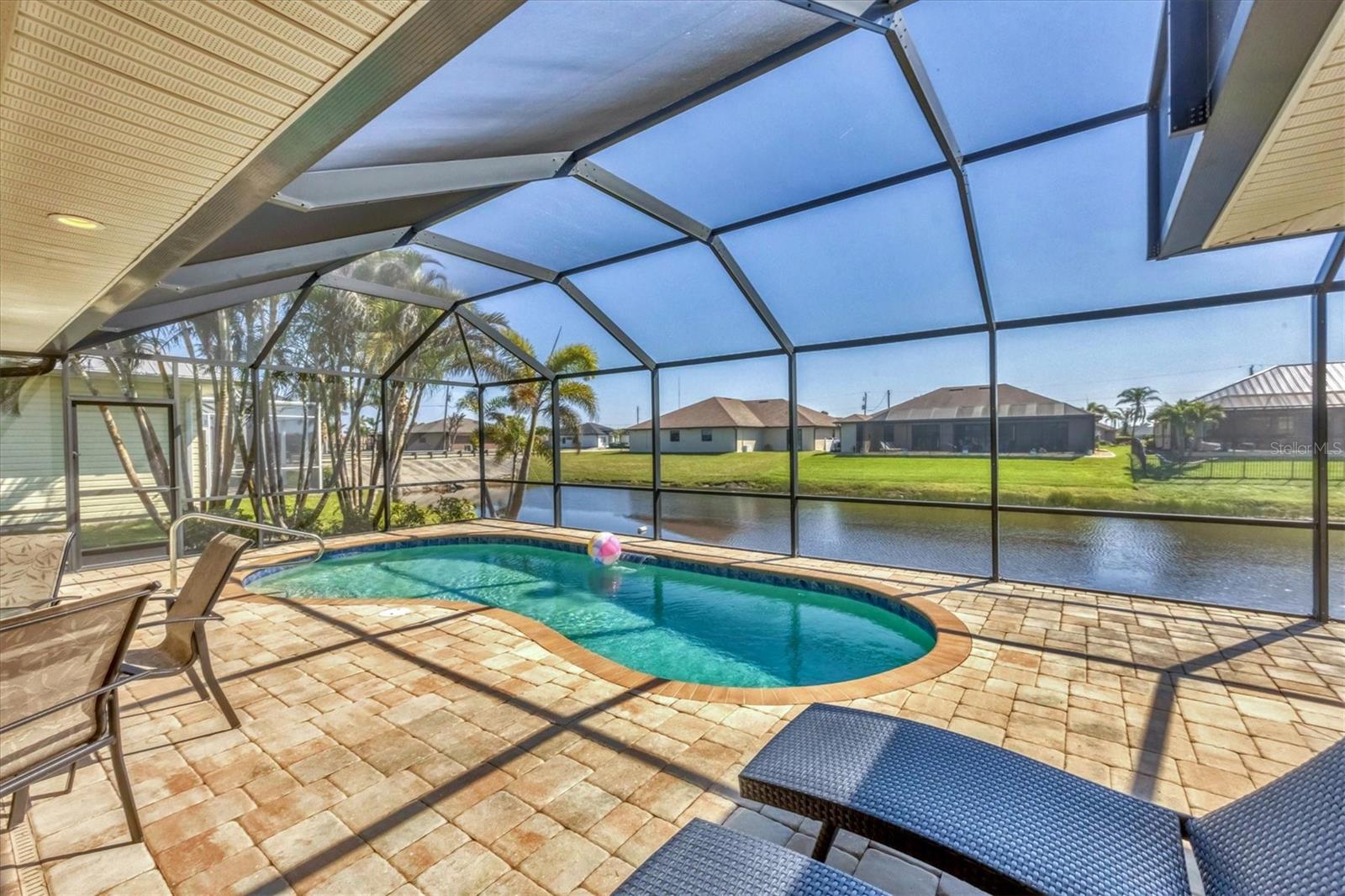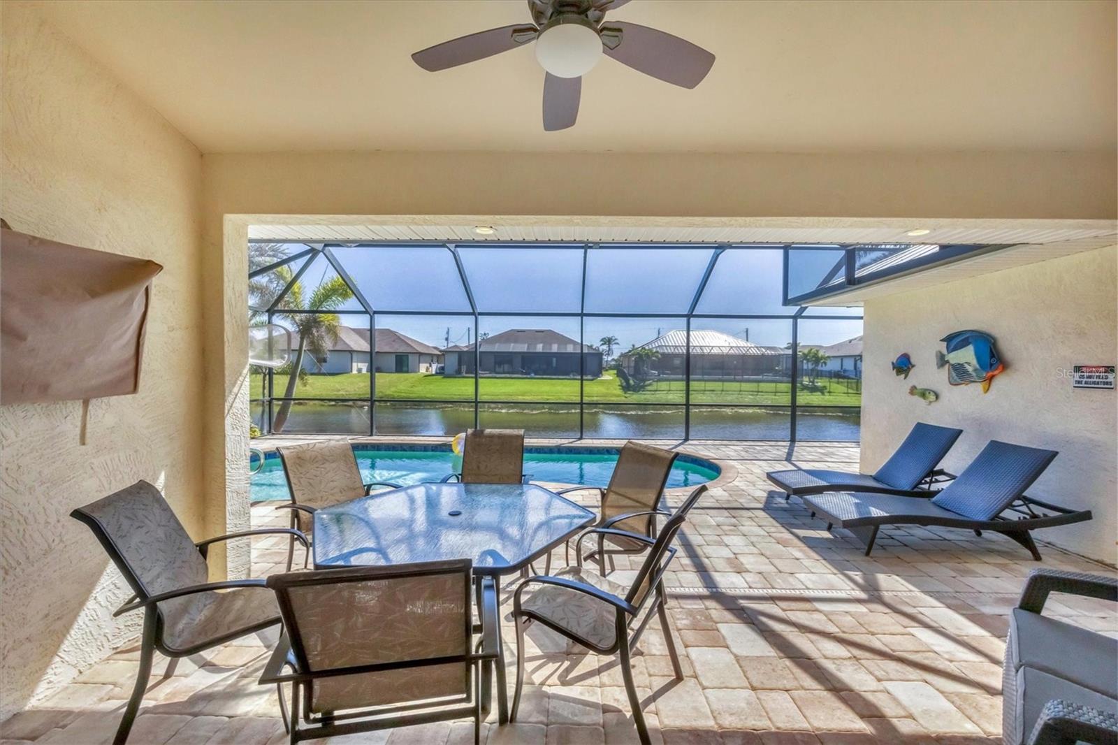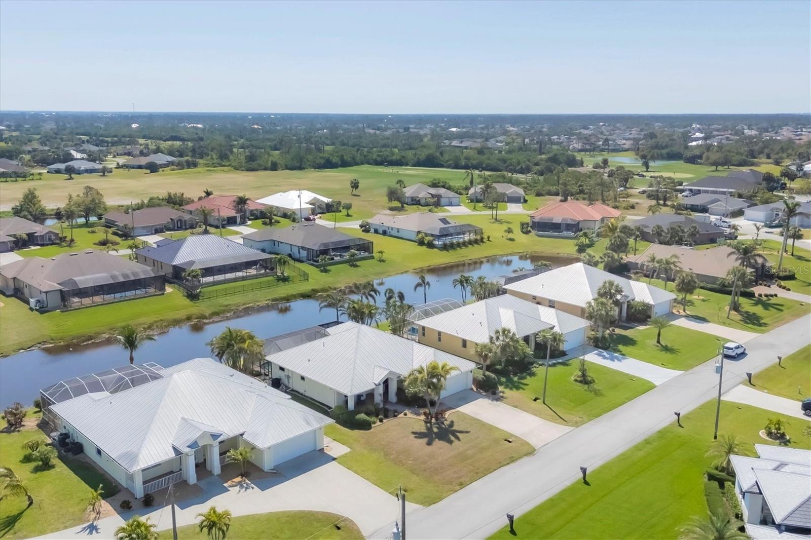 TURNKEY FURNISHED, SALTWATER POOL HOME IN ROTONDA WEST! This beautifully maintained 3-bedroom, 2-bath, 2-car garage home is located in the heart of Rotonda West, a sought-after golf course community. Featuring a 2024 AC, a durable METAL ROOF, and an X-FLOOD ZONE location, this property offers peace of mind and low maintenance. Step inside to a spacious living room with tile flooring, soaring cathedral ceilings, and triple sliding glass doors leading to the screened lanai and sparkling heated saltwater pool. The formal dining area is bathed in natural light from a large window and features a striking double tray ceiling for added elegance. The chef’s kitchen is designed for both function and style, showcasing granite countertops, stunning maple cabinetry, and GE stainless steel appliances. The open-concept layout is perfect for entertaining while enjoying beautiful views of the pool and canal beyond. The primary suite is a private retreat with direct lanai access, a spacious layout, and a large walk-in closet. The en-suite primary bath is well-appointed with dual vanities, a relaxing Jacuzzi tub, a walk-in shower with glass doors, a linen closet, and a private water closet. This home features a perfectly designed split floor plan with two well-placed guest rooms, offering privacy and functionality. The Jack-and-Jill guest bath is conveniently shared between them, featuring a double vanity, tub/shower combination, and a private water closet. The back guest bedroom enjoys stunning views of the freshwater canal, creating a peaceful retreat for family or visitors. Additional highlights include ceiling fans throughout, an interior laundry room with Samsung washer and dryer, upper cabinets, and a utility sink, plus a security system for added peace of mind. The lanai and pool area is designed for year-round enjoyment, featuring a paver pool deck, outdoor TV, and an electric pool heater to keep the water warm no matter the season. COASTAL GOLFING LIFESTYLE! Just minutes from multiple golf courses, pickleball courts, and a nearby park, this home is ideal for those who love outdoor recreation. Nestled on a tranquil freshwater canal, it offers privacy, scenic water views, and frequent wildlife sightings. Conveniently located near shopping, dining, and a short drive to area beaches.