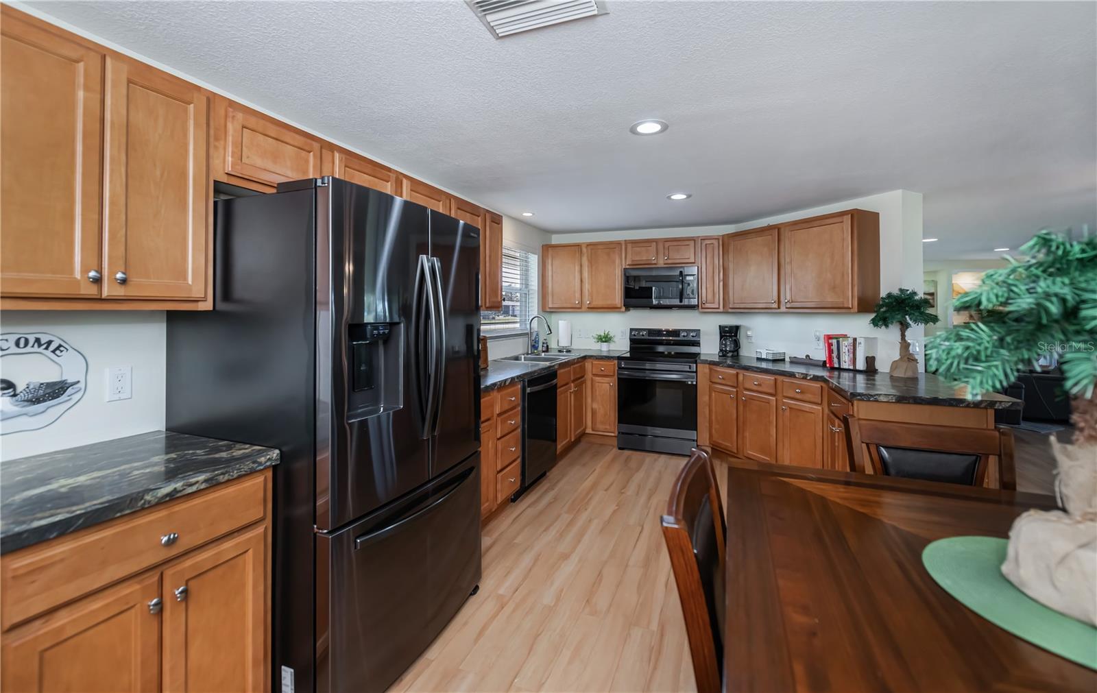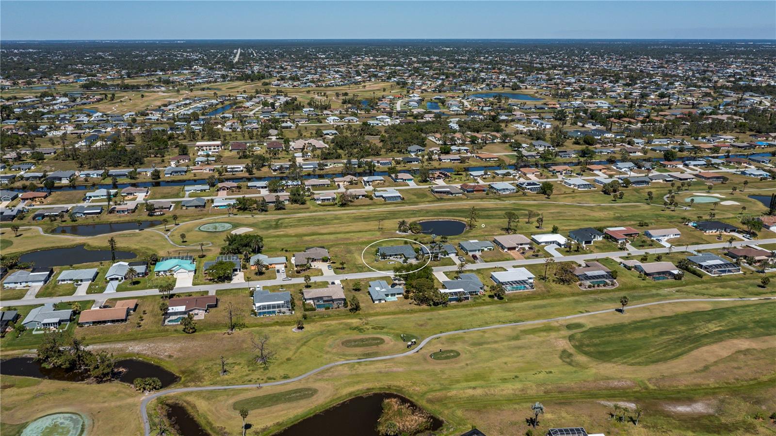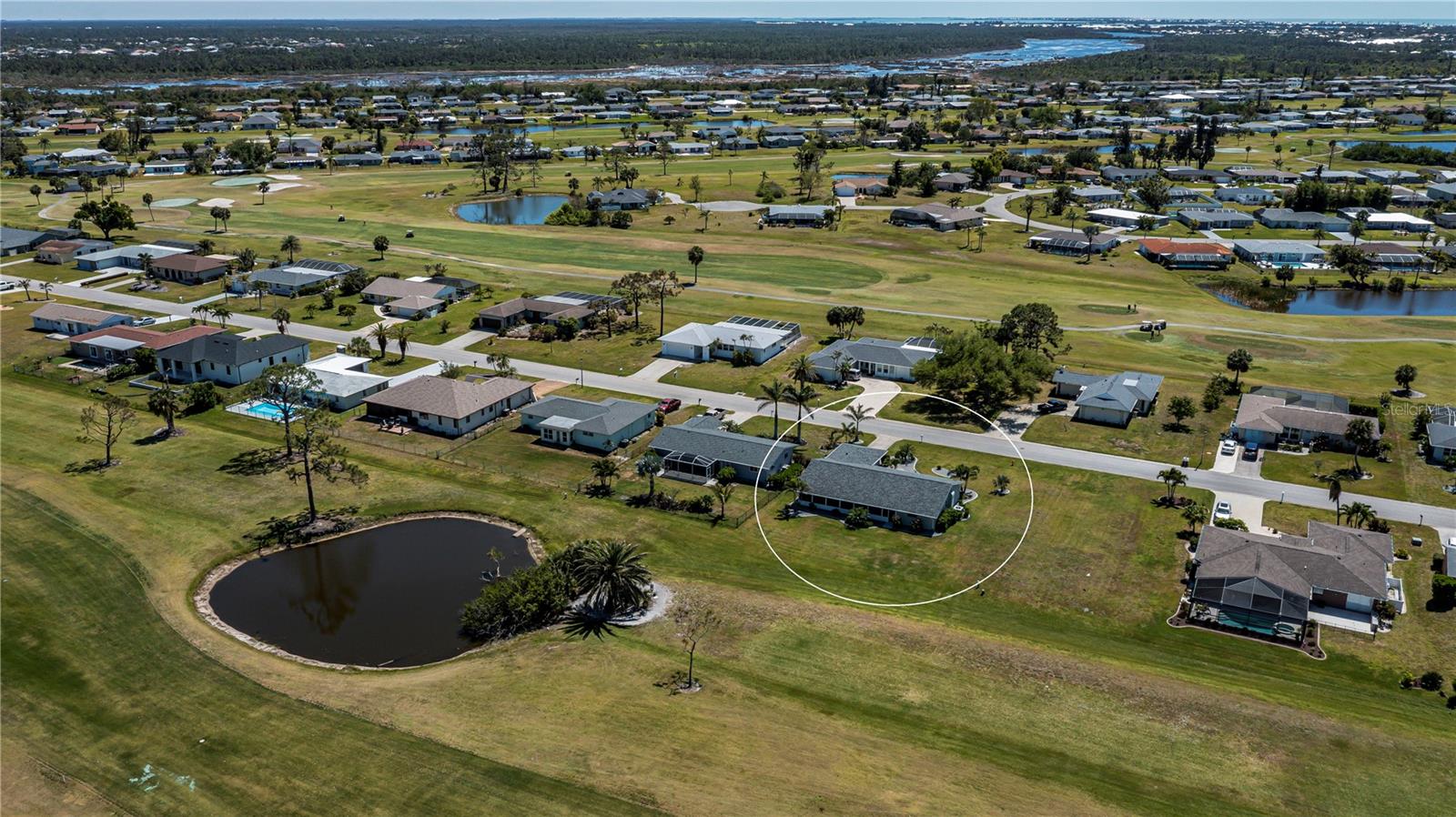 PRICE REDUCED!!!! THE WHOLE PACKAGE! This sprawling ranch on an oversized lot includes 3 large bedrooms, 2 full baths with an open floor plan on a golf course with a pond in your back yard and comes TURNKEY FURNISHED! The updated kitchen has an abundance of cabinets and counter space including a breakfast bar. The cabinets and drawers are full of everything you could possibly need in a kitchen. The breakfast area in the kitchen has plenty of room for a table for family and guests. The spacious dining room could hold a very large table for entertaining and the the space off the living room includes a bar. Nearly new furnishings adorn the living room with couches that recline, have drink holders, charging stations and are soooo comfortable. There are several patio doors onto the expansive screened in lanai overlooking the golf course and a pond. The split floorplan includes a grand primary bedroom with an ensuite and plenty of closet space. On the other side of this terrific house are two plentiful bedrooms and a full guest bath. The extra 1/2 lot on the side is plenty of room for expansion if you so chose or just extra space for privacy. This home is in mint, move-in condition! What a perfect scenario. Just bring your personal items and move right in! A bonus - this home also has a new roof and is located on a quiet street with no outlet so no thru traffic!!! This beautifully landscaped, turnkey furnished home is PRICED TO SELL! Don't miss out on this one!