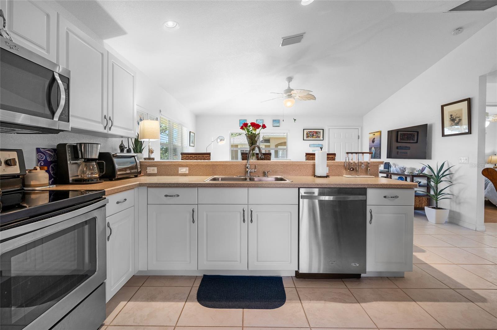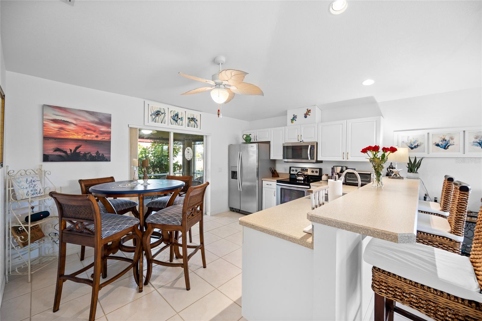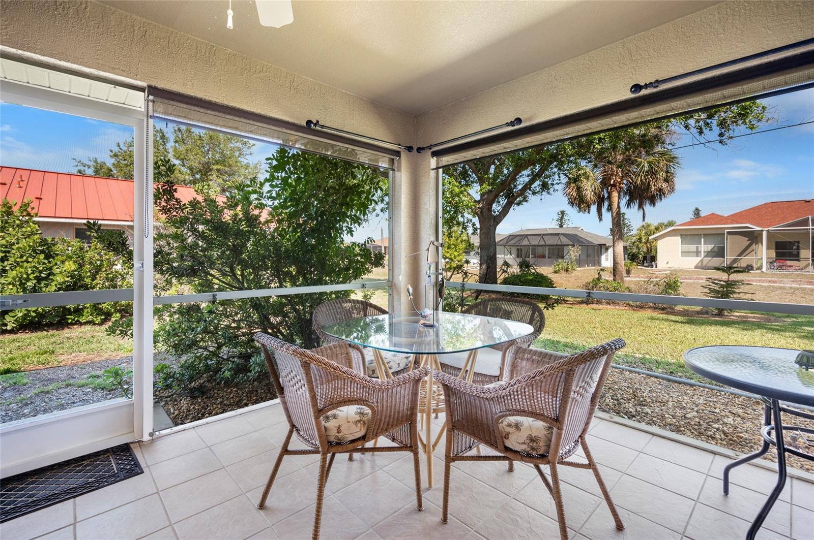 This IMMACULATE, X500 ZONE, 2 BEDROOM, 2 BATH FURNISHED CONDO has its own GARAGE and is in an ULTRA PRIVATE LOCATION with EXTREMELY LOW ASSOCIATION FEES! (Just $275/mo!) A LOW PRICE AND LOW MONTHLY FEE gets you LOW MAINTENANCE FLORIDA LIVING, whether you are seasonal or year round! Nestled next to shady oak trees, away from the road/traffic, this single level, end unit has a peaceful yard and a private Florida room/screened lanai attached. Not only is it in the low risk 'X500 FLOOD ZONE', it has a NEW ROOF in 2023 and has endured major storms without damage! LEAVE YOUR WORRIES BEHIND with no big home to maintenance, no lawn or pool to care for, just simple, clean FLORIDA LIVING! Lots of opportunity for an active FLORIDA lifestyle with walking trails at nearby ROTONDA COMMUNITY PARK and the CAPE HAZE PIONEER BIKE TRAIL that provides 8 miles of paved protected bike trails all the was to GASPARILLA ISLAND/BOCA GRANDE! You’ll LOVE THE LOCATION, right near the center of Rotonda West , NEAR MULTIPLE GOLF COURSES, COUNTRY CLUB, NEARBY MARINAS and WORLD CLASS BEACHES….. ALL WITHIN just a few miles! This area of Southwest Florida is truly a hidden gem located between Sarasota and Fort Meyers. Just an hour from Siesta Key, recently voted number one beach in the country (and number 4 in the world!) by Trip Advisor! And you're less than a 15 minute drive to the WORLD CLASS BOCA GRANDE ISLAND, with MORE GORGEOUS WORLD FAMOUS BEACHES! You just can not beat this location for the price, considering access and overall expense! DON'T MISS THIS RARE OPPORTUNITY!! And this is just what’s outdoors! When you enter this BEAUTIFULLY FURNISHED oasis, you find quality, comfortable furnishings, making the most of this OPEN FLOOR PLAN. The high ceilings and light and bright decor bring the tropical vibe indoors. The airy open living room and kitchen are divided by a high counter bar perfect for entertaining. The eat-in kitchen has newer stainless steel appliances and beautiful white cabinetry balanced by spacious, neutral countertops. The airy kitchen opens, via a sliding glass door to a relaxing, screened in Florida room/lanai, perfect for a morning cup of coffee or an evening glass of wine at sunset. Open that slider and bring the outdoors in! It even has a laundry closet on the lanai, making laundry a more relaxing, enjoyable chore! Off to the left of the common area, from the entrance, is a well appointed guest bedroom and guest bath with a full tub and shower for your guests. Then a small hall leads to the Primary bedroom with it's own bath, all beautifully furnished for you and your guests! This MOVE-IN READY CONDO can be yours THIS SEASON! CALL FOR AN APPOINTMENT TODAY!! UNIQUE, FURNISHED, FLOOR LEVEL, END UNIT WITH A GARAGE AND IN AN 'X500 ZONE' (LOW FLOOD RISK, NOT REQUIRING FLOOD INSURANCE)..... AND PRICED TO SELL!! WHAT'S NOT TO LOVE? CALL TODAY BEFORE IT;S GONE!