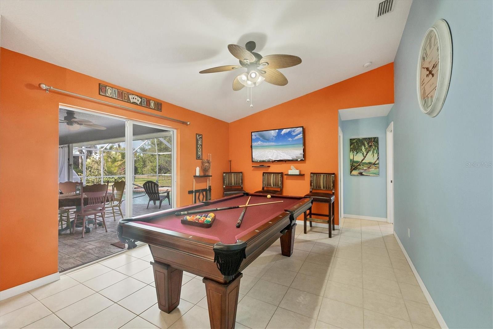 BACK ON MARKET!!! The quintessential Florida home for buyers searching for a cozy winter escape or a comfortable year-round residence is found within this charming 3-bedroom, 2-bathroom home, which is a perfect blend of comfort and style, featuring a beautiful backyard pool that promises endless year-round outdoor fun. As you enter, you’re greeted by an open-concept living space highlighted by dual living areas, ideal for relaxing or entertaining. The spacious living room flows seamlessly into a modern kitchen with dark stainless steel appliances, ample cabinetry, Quartz countertops, and an adjacent cozy dining area with tranquil pool views. A secondary living area is currently used as a billiards room but could be used as a comfortable family or media room. The primary bedroom is a tranquil retreat after a fun-filled day at one of the area's beaches, featuring an en-suite bathroom with dual sinks and a spacious walk-in shower for added privacy and convenience. The two additional bedrooms are generously sized, perfect for guests, family, or a home office, and they share a well-appointed second bathroom. The backyard is designed for year-round alfresco living with a stunning in-ground pool surrounded by a large lanai. An added bonus is the adjacent outdoor patio, ideal for arranging conversation-friendly seating around a firepit. This home offers solar power for additional peace of mind and minimal monthly utility bills, resulting in economic savings. Golf enthusiasts will appreciate the five courses within the community, and beachcombers will delight in exploring the nearby beaches of Boca Grande and Englewood. Nearby Dearborn Street in Englewood offers various unique shops, excellent eateries, and a lovely outdoor amphitheater. Residents and guests regularly delight in the fresh produce and unique offerings at the ever-expanding farmers' markets. This home has been a peaceful, welcoming gathering place for family and friends, with room for more picture-perfect memories to be created. If this sounds intriguing, call today to schedule a private showing, and prepare to be captivated by this dynamic community where every day is a vacation.