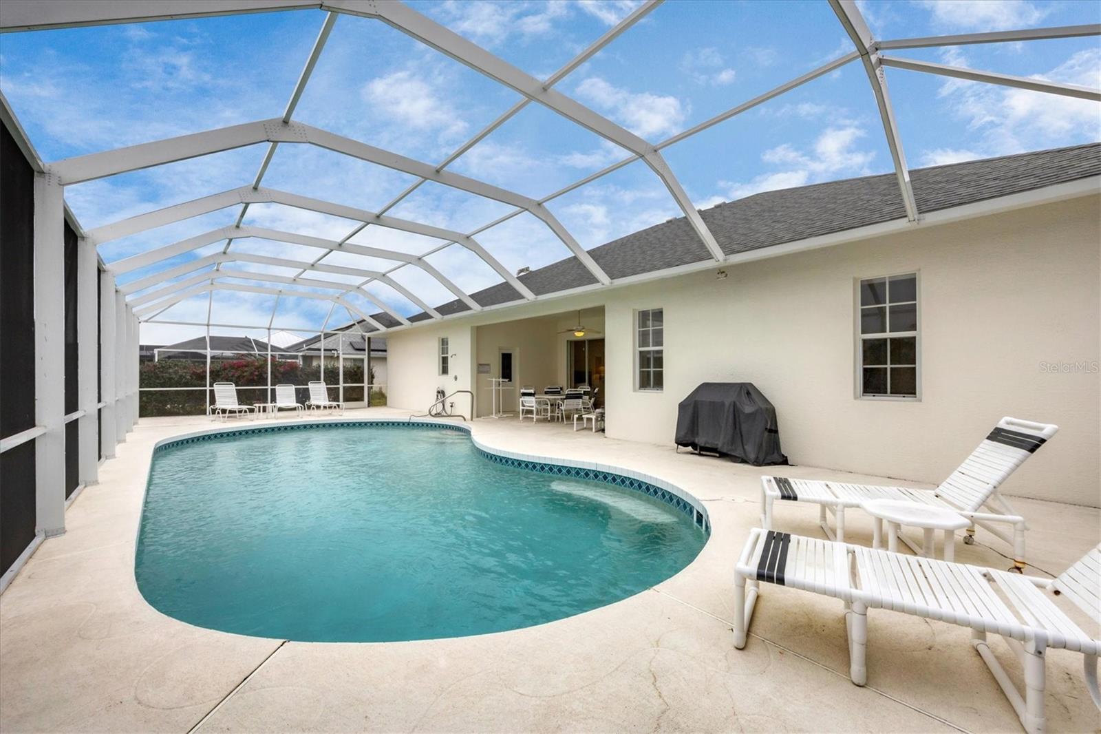 Starting with the lanai area, you will see this house offers some advantages you won't find in other homes. The screened lanai and pool are both oversized, and the view of the Rotonda River is among the most impressive you will see in Rotonda West. With about 170 feet to the opposite side, you enjoy a great deal of privacy. The vacant lot next door is also available under separate contract to further enhance the secluded feeling. From the front of the house you will notice the new impact rated front door. The arched windows offer a feeling of openness to the outside and provide ample natural light. Inside the floorplan is impressive with four bedrooms plus a den, dining room, breakfast nook, and laundry area. The primary suite is spacious and well designed. The other side of the house is where you will find the other three bedrooms including a guest suite with bathroom conveniently located near the lanai. Rotonda West is a deed restricted community providing building minimum requirements and requiring approval for exterior changes. There is a large park, multiple golf courses, and a clubhouse/meeting room for all residents. The greater Englewood area offers a wide variety of outdoor recreation including fishing, hiking, and miles of sandy beaches.