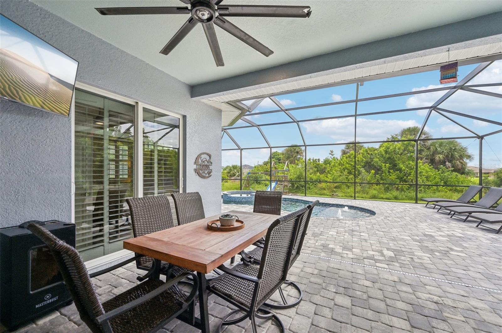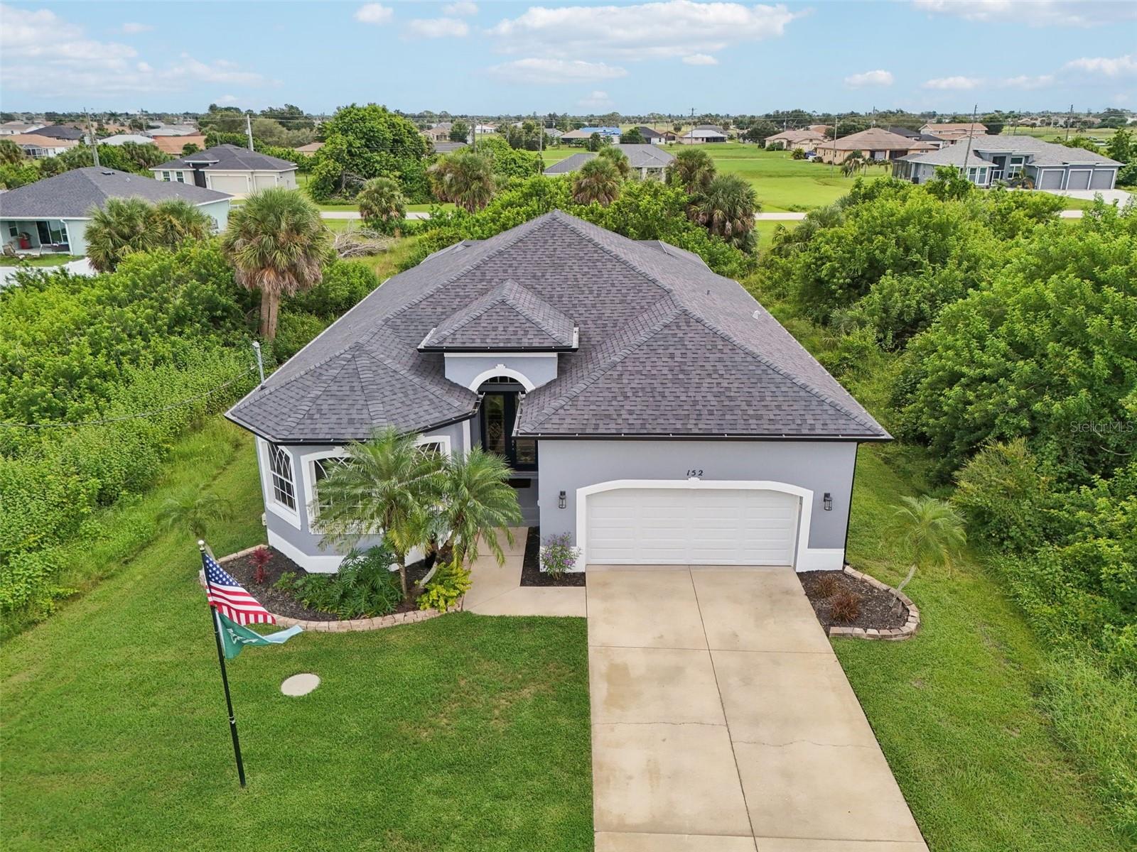 Welcome to Beach Days, Golf, and Your Best Life in Rotonda West! This home features three bedrooms, two bathrooms, and a sparkling heated saltwater pool. Beautifully updated and move-in ready, it invites you to start enjoying the easy Florida lifestyle you’ve been dreaming of. The curb appeal shines with a 2023 multi-dimensional roof, mature landscaping, striking architectural windows, elegant columns, and double leaded glass entry doors that create a welcoming first impression. Walk through the front doors and into a bright, airy foyer where tall ceilings, consistent wood look tile flooring throughout, and stylish columns make you feel right at home. The open great room layout brings everyone together, with a tray ceiling with crown molding that adds style, sliding glass doors that fill the space with light, and a kitchen and dining nook designed for easy conversations and family time. You will love cooking in the spacious kitchen, complete with gray shaker-style wood cabinets, quartz countertops, white tile backsplash, walk-in pantry, and a large center island with breakfast bar that blends modern style with everyday comfort. The adjoining nook offers easy access to the pool through a single French door, while a wall of bay-style windows and designer chandelier adds plenty of light. The ensuite master bedroom is a true retreat with sliding glass doors to the lanai, a tray ceiling with crown molding, and a spacious walk-in closet. The spa-like master bathroom features a large jacuzzi tub, double-sink quartz vanity, and walk-in shower, making both relaxation and daily routines effortless. The guest bedrooms are equally inviting with reach-in closets, while the guest bath includes a quartz-topped vanity and a tiled tub-shower combination. The interior laundry room has plenty of storage space with a built-in cabinet and shelving. Additional highlights include impact windows, spray foam insulation, plantation shutters on most windows, epoxy coated garage floor, and the tile flooring, countertops, baseboards, and appliances were all recently replaced. Life feels easy here on the partially covered, screened, and paver lanai where the 2022 added heated saltwater pool and spa is perfect for sunny afternoons in the water, evenings dining outside, and weekends spent with friends right at home. When you are ready to venture out, Rotonda West offers 5 golf courses, walking and biking trails, parks, and waterways for kayaking and fishing. Just minutes away you’ll also find Gulf beaches, tiki bars, world-class fishing, and plenty of local dining and shopping to enjoy. This home at 152 Spring Drive has everything you need to start living your best Florida life. Contact us today to schedule your private showing and see it in person.