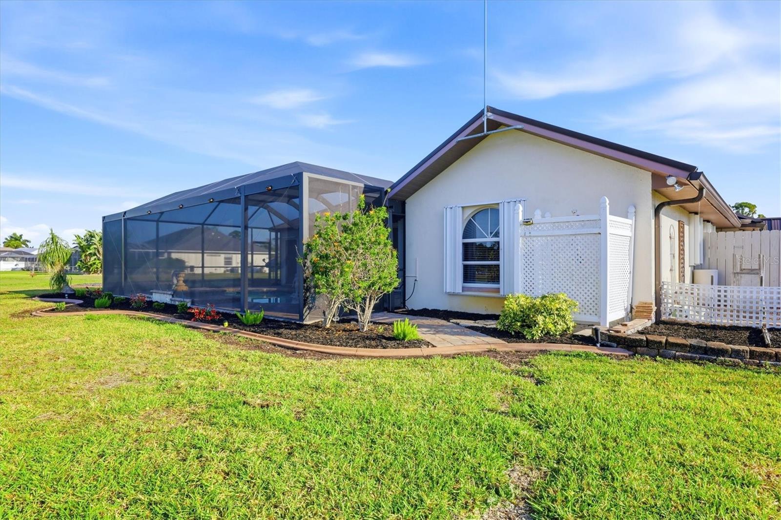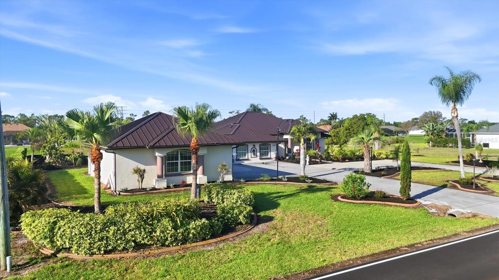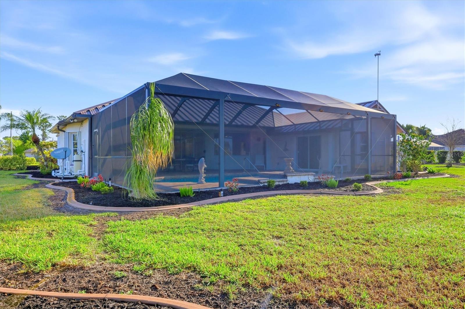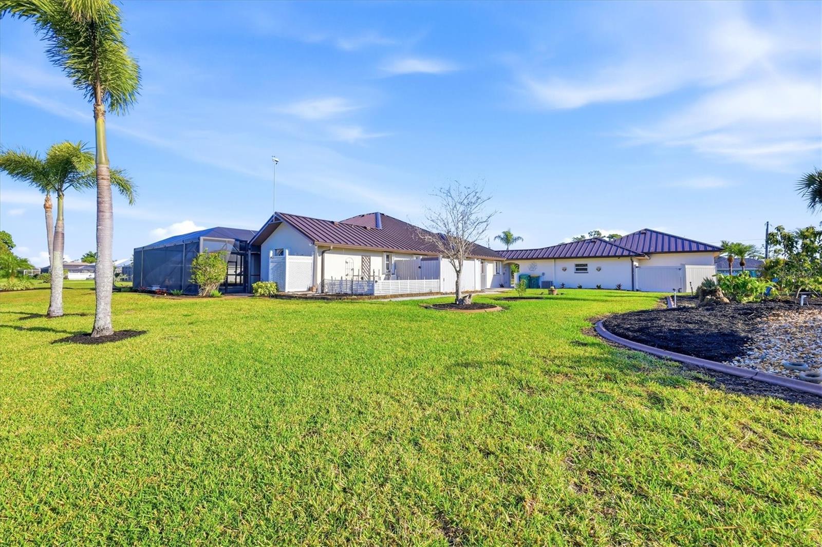 One or more photo(s) has been virtually staged. When heading down a new path, the journey becomes infinitely more pleasurable when your destination is this spacious and welcoming home. Rich with curb appeal, tropical landscaping nourished by a zoned irrigation system surrounds a distinctive circular driveway that marries practicality with aesthetic beauty, providing a timeless and elegant greeting for all who arrive. Situated on a highly desirable double waterfront estate lot in an X-flood zone (for insurance savings), bringing nature inside via seamless indoor-outdoor connections was paramount in the design of this home. The front entry provides a clear sightline to the lanai, featuring its sparkling pool, attractive paver patio, and panoramic pool screen (2023), which effectively showcases a wide, tranquil canal view. The home's thoughtfully designed spaces evolve visually and blend seamlessly with a neutral color palette that promotes a sense of calm, resulting in a clean, uncluttered look. Throughout the home, expansive sliders gracefully integrate indoor and outdoor living areas, effectively capturing the essence of Florida living. At the same time, the oversized lanai offers an all-season style conducive to al fresco living. This gathering spot provides privacy and a serene view of the canal. At the heart of the home is the kitchen, where a light, airy feel prevails and abundant cabinetry is paired with a prep island, upgraded stainless-steel appliances (including a double oven), and a Bosch dishwasher. A large laundry room is conveniently located nearby and offers built-in cabinetry, a washer/dryer, and a laundry sink. After a fun-filled day spent at Englewood Beach, relaxation is encouraged by the Primary suite, which opens to the pool through sliding doors. Its ensuite bathroom is a spa-inspired space. Highlights include a generous walk-in shower, a soaking tub, and dual vanities. Guest privacy is ensured, with three additional bedrooms, a convenient flex room, and a shared bath outfitted with a tub/shower combination. Resident hobbyists, car enthusiasts, or contractors will appreciate the SPACIOUS 1125 SQ.FT. GARAGE with illuminated attic storage and ample room to house multiple cars, a boat, or a home workshop--the choice is yours! OTHER NOTABLE UPDATES INCLUDE a standing seam metal roof with dry-in underlayment designed for long-term durability and insurance favorability (2023), a 50 amp Level 2 EV charging outlet, a professionally installed transfer switch for easy generator hook-up, Hansgrohe faucets, Schonbek chandeliers in the dining room and foyer, and for additional peace of mind, there is a security system comprised of Lorax, Ring cameras, and ADT w/wireless back-up, whole-house hurricane protection, dual AC units, and reinforced garage doors. This distinctive home, which celebrates cohesive and thoughtful design, is situated on a double estate lot in the heart of the highly desirable Rotonda West community. It is within a short drive to the pristine Gulf beaches of Boca Grande and Englewood. There are world-class fishing and boating opportunities, as well as various delectable dining establishments, farmer's markets, and eclectic shopping venues, nearby. Additionally, Rotonda West is a golfer's paradise with five courses within the community. If this sounds intriguing, call today to schedule a private showing and prepare to be captivated by this vibrant community, where every day feels like a vacation. SELLER FINANCING AVAILABLE AT 4.25% FOR QUALIFIED BUYERS.