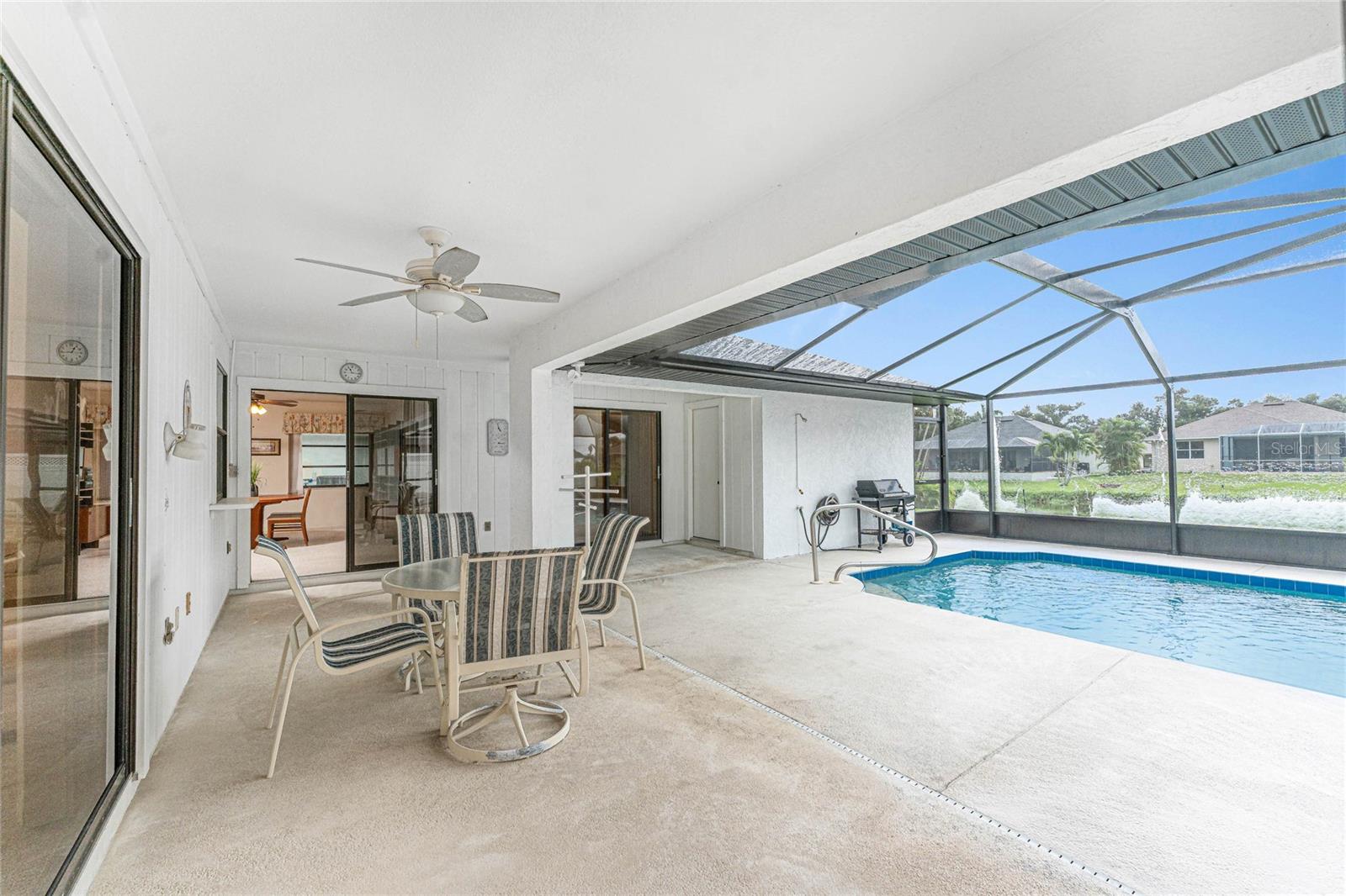 Beautifully maintained 1,732 sq ft, 3-bedroom, 2-bath pool home located in the desirable Rotonda West community, offering flexible use for full-time living, seasonal enjoyment, or investment purposes. This light and bright unfurnished residence features a screened-in private unheated pool and lanai overlooking a canal water view, creating a peaceful backdrop for outdoor living. Recent updates include a new roof (2024), new carpet (March 2024), new pool cage (June 2024), and a new screened front entryway (June 2024). The primary suite includes a walk-in closet and en-suite bathroom. The kitchen offers ample counter space and storage, with appliances included: refrigerator, range, microwave, washer, and dryer. Outdoor living is enhanced by an expansive screened enclosure, generous deck space, and tranquil canal setting. This home is currently operated as a short-term rental, providing income potential while allowing buyers the option to continue rental use, transition to personal occupancy, or combine owner use with rental opportunities where permitted. Rotonda West is a deed-restricted golf course community known for its scenic canals, multiple golf courses, parks, and walking and biking paths. Conveniently located approximately 7 miles to Englewood Beach and 13 miles to Boca Grande, with easy access to boating, fishing, dining, and shopping, this property is ideal for investors, seasonal residents, or full-time Florida living.