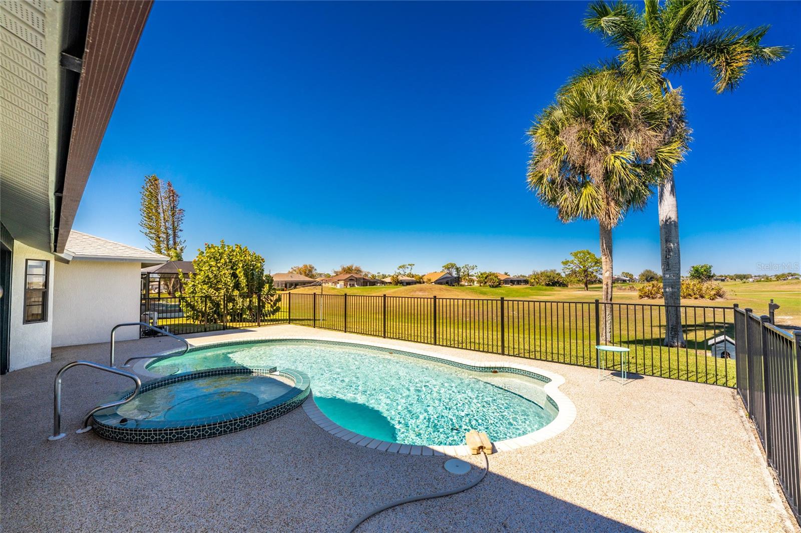 ROTONDA WEST GEM! Check out this 2-bedroom, 2 bath, 2 car garage POOL/SPA Home that sits on a premium Rotonda West lot overlooking the 15th hole of the Rotonda West Golf and Country Club Palms Golf Course. The WOW factor starts the moment that you walk through the front door into the expansive Great Room with its view of the sparkling pool, the golf course, and a pond! The home has the popular split-floor plan with the Primary Suite on one side of the home and Guest Bedroom on the other side. There is a sliding door that closes off the guest bedroom and bathroom creating effectively a second primary suite. There are floor to ceiling sliding glass pocketing doors off the Great Room and the Primary Suite which blends the outdoors with the indoors during the cooler winter months. The large eat-in kitchen is in the center of the home and features a breakfast bar and a closet pantry. There is also a closet pantry in the inside laundry room which is located between the garage and kitchen. The primary bedroom has 2 walk-in closets, and the ensuite bath has a handicap accessible tub. This home was built by the current, original owner, and it has been lovingly cared for. It is being sold TURNKEY FURNISHED with a short list of exceptions. The home is nicely landscaped, which includes a very productive Caribbean avocado tree. Rotonda West is a wonderful Deed Restricted community that is minutes away from shopping, dining, golfing and beautiful Englewood Beach. Make your appointment to see this great home today ... you will not be disappointed!
