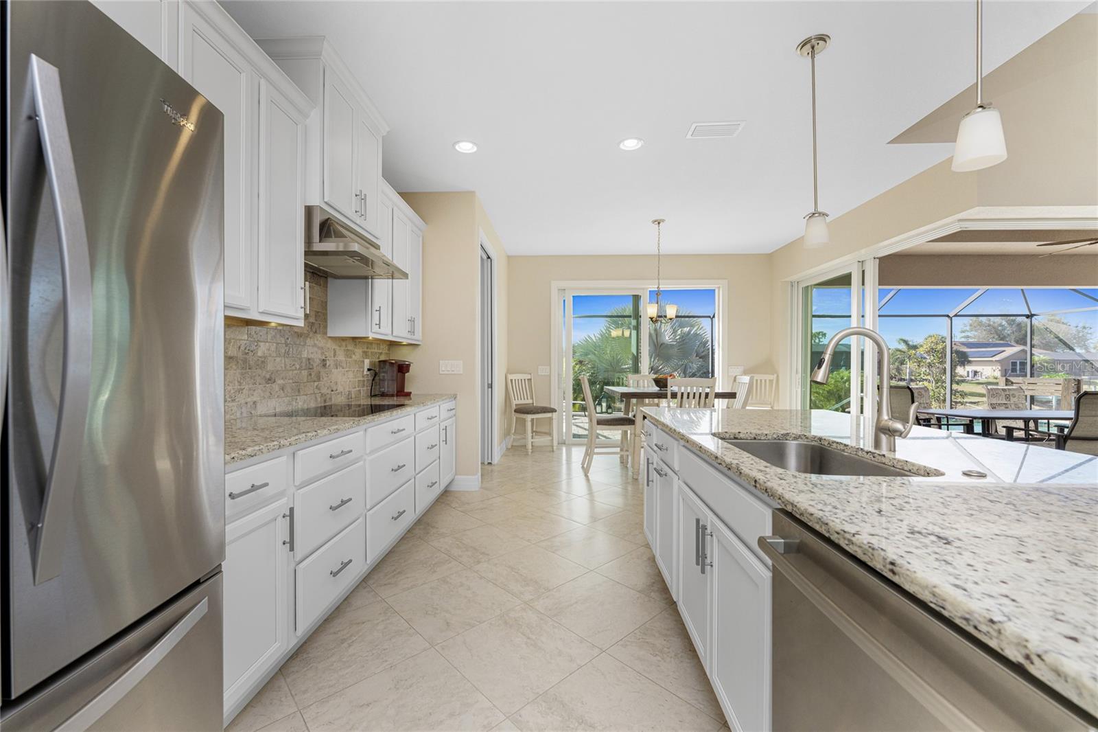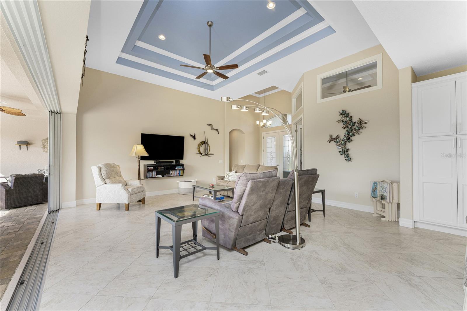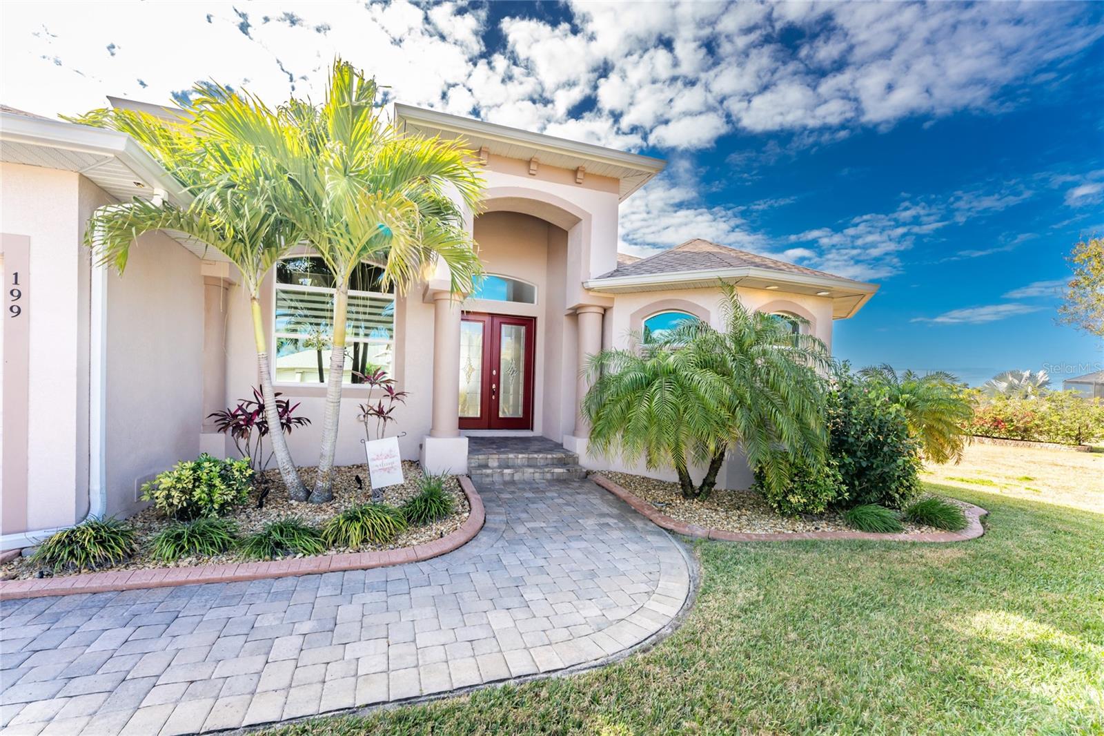 This exceptional custom-built D.M. Dean residence sits on a rare double lot with peaceful freshwater canal frontage, offering space, privacy, and beautiful natural views. From the moment you enter, the home feels bright and inviting, thanks to an open layout, abundant natural light, and thoughtfully designed living spaces. The main living area features impressive volume ceilings accented with single and double coffered details, while expansive zero-corner sliding glass doors open wide to create effortless indoor-outdoor living. Water views and glimpses of Florida wildlife can be enjoyed throughout much of the home, adding to the tranquil atmosphere.At the heart of the home, the kitchen is both stylish and functional, featuring 42” soft-close wood cabinetry, granite countertops, a breakfast bar, and stainless steel appliances. Appliances include: Wolf induction cooktop, two Bosch wall ovens, one a convection oven and the second a steam/convection oven, Sharp microwave drawer, Bosch dishwasher, and Whirlpool French door refrigerator. A dedicated dining area offers a comfortable spot for everyday meals, while the open design makes entertaining easy. Tiled flooring throughout the entire home enhances the sense of flow and elegance.The primary suite serves as a private retreat, complete with dual walk-in closets with built ins, tray ceiling w/crown moulding and direct access to the lanai. The ensuite bath offers a spa-like experience with dual granite vanities, a walk-around tiled shower with granite bench, and a private water closet. The den/office already has the perfect set up, with two built in desk/computer areas w/file drawers and wall cabinets, creating an inviting office layout. Two spacious guest bedrooms with ceiling fans and wall closets provide comfortable accommodations, while the second full bath includes a walk-in shower and convenient access to the lanai and pool. The laundry room has a sink and ample cabinetry so you can put away your laundry supplies. ALMOST ALL OF THE FURNITURE STAYS, so there's no need to run out and buy new! Outdoor living truly shines with an oversized screened lanai and expansive 64’ x 20’ paver pool deck. The sparkling SALTWATER pool with waterfall feature creates an ideal setting for relaxing or entertaining year-round. The heated spa completes the feel of a retreat. The landscaped/cleared double lot offers lush greenery and an irrigation system supplied directly from the canal for the house lot. Additional highlights include a three-car garage, brick paver driveway and walkways, and impact windows and doors for added security. Recent updates include a 2023 roof replacement, and a well-maintained AC system. Windstorm insurance credits add further value and peace of mind. The flood insurance is at a great rate, and is assumable! The extra lot is a buildable lot and could be sold separately by the new buyer of this lovely home. Centrally located, the home is close to golf courses, shopping, dining, marinas with access to the Intracoastal Waterway and Gulf of Mexico, and just a short drive to beautiful beaches and world-class fishing.