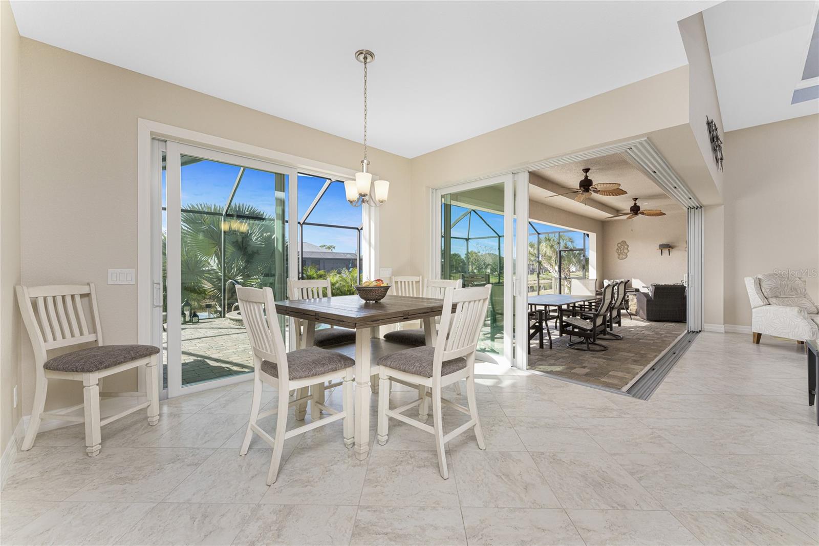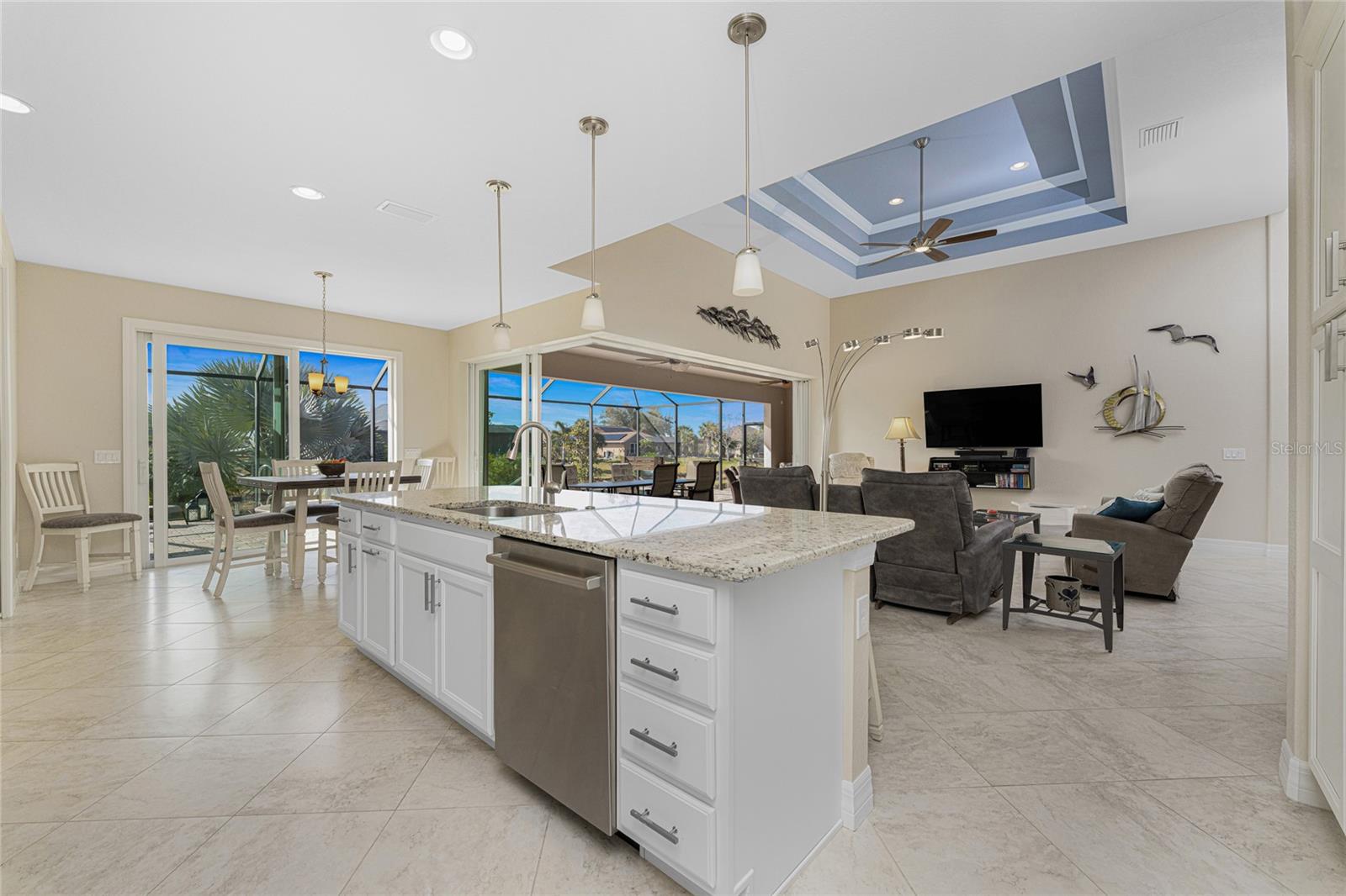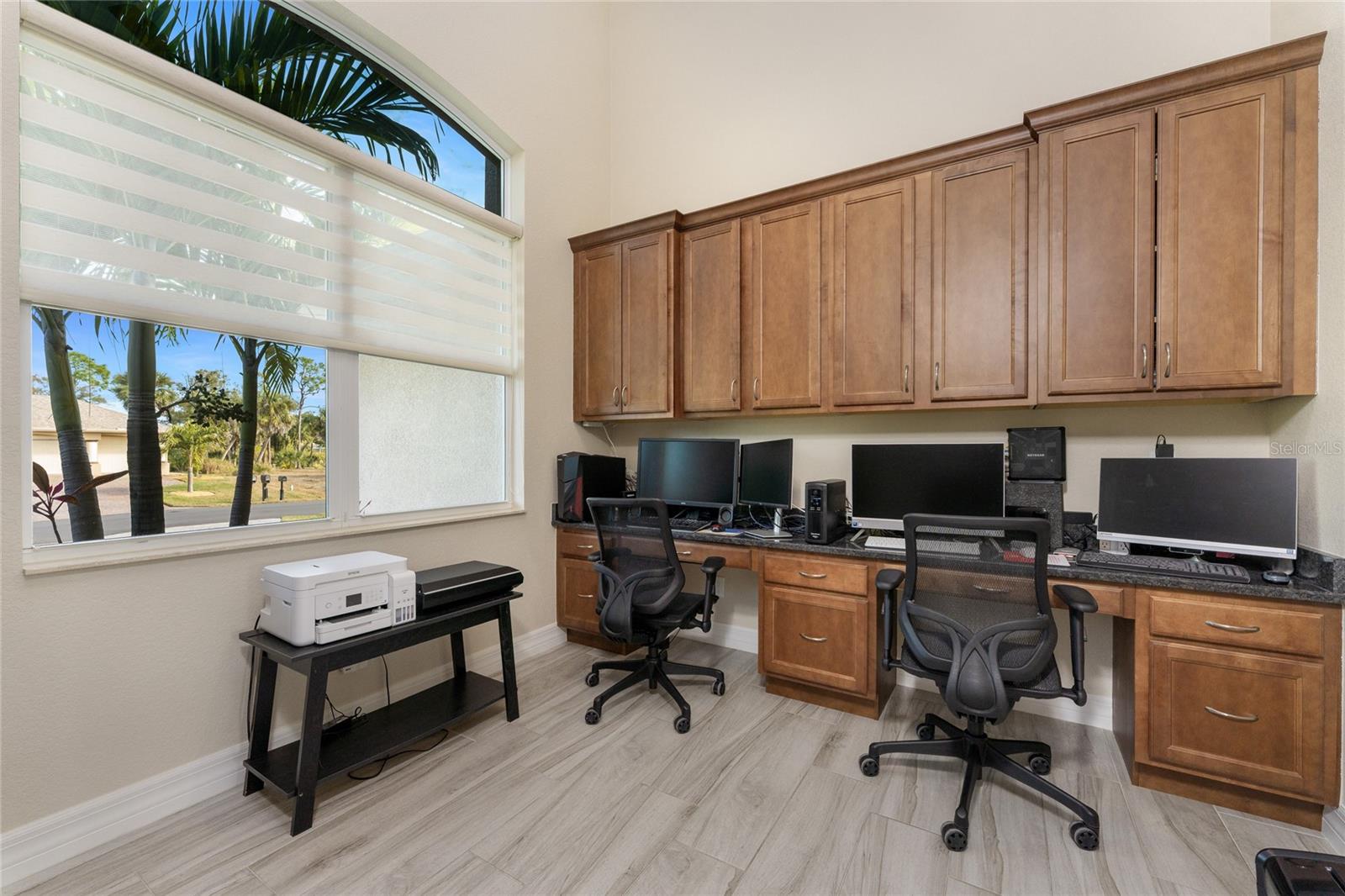This exceptional custom-built D.M. Dean residence sits on a rare double lot with peaceful freshwater canal frontage, offering space, privacy, and beautiful natural views. From the moment you enter, the home feels bright and inviting, thanks to an open layout, abundant natural light, and thoughtfully designed living spaces. The main living area features impressive volume ceilings accented with single and double coffered details, while expansive zero-corner sliding glass doors open wide to create effortless indoor-outdoor living. Water views and glimpses of Florida wildlife can be enjoyed throughout much of the home, adding to the tranquil atmosphere.At the heart of the home, the kitchen is both stylish and functional, featuring 42” soft-close wood cabinetry, granite countertops, a breakfast bar, and stainless steel appliances. Appliances include: Wolf induction cooktop, two Bosch wall ovens, one a convection oven and the second a steam/convection oven, Sharp microwave drawer, Bosch dishwasher, and Whirlpool French door refrigerator. A dedicated dining area offers a comfortable spot for everyday meals, while the open design makes entertaining easy. Tiled flooring throughout the entire home enhances the sense of flow and elegance.The primary suite serves as a private retreat, complete with dual walk-in closets with built ins, tray ceiling w/crown moulding and direct access to the lanai. The ensuite bath offers a spa-like experience with dual granite vanities, a walk-around tiled shower with granite bench, and a private water closet. The den/office already has the perfect set up, with two built in desk/computer areas w/file drawers and wall cabinets, creating an inviting office layout. Two spacious guest bedrooms with ceiling fans and wall closets provide comfortable accommodations, while the second full bath includes a walk-in shower and convenient access to the lanai and pool. The laundry room has a sink and ample cabinetry so you can put away your laundry supplies. ALMOST ALL OF THE FURNITURE STAYS, so there's no need to run out and buy new! Outdoor living truly shines with an oversized screened lanai and expansive 64’ x 20’ paver pool deck. The sparkling SALTWATER pool with waterfall feature creates an ideal setting for relaxing or entertaining year-round. The heated spa completes the feel of a retreat. The landscaped/cleared double lot offers lush greenery and an irrigation system supplied directly from the canal for the house lot. Additional highlights include a three-car garage, brick paver driveway and walkways, and impact windows and doors for added security. Recent updates include a 2023 roof replacement, and a well-maintained AC system. Windstorm insurance credits add further value and peace of mind. The flood insurance is at a great rate, and is assumable! The extra lot is a buildable lot and could be sold separately by the new buyer of this lovely home. Centrally located, the home is close to golf courses, shopping, dining, marinas with access to the Intracoastal Waterway and Gulf of Mexico, and just a short drive to beautiful beaches and world-class fishing.