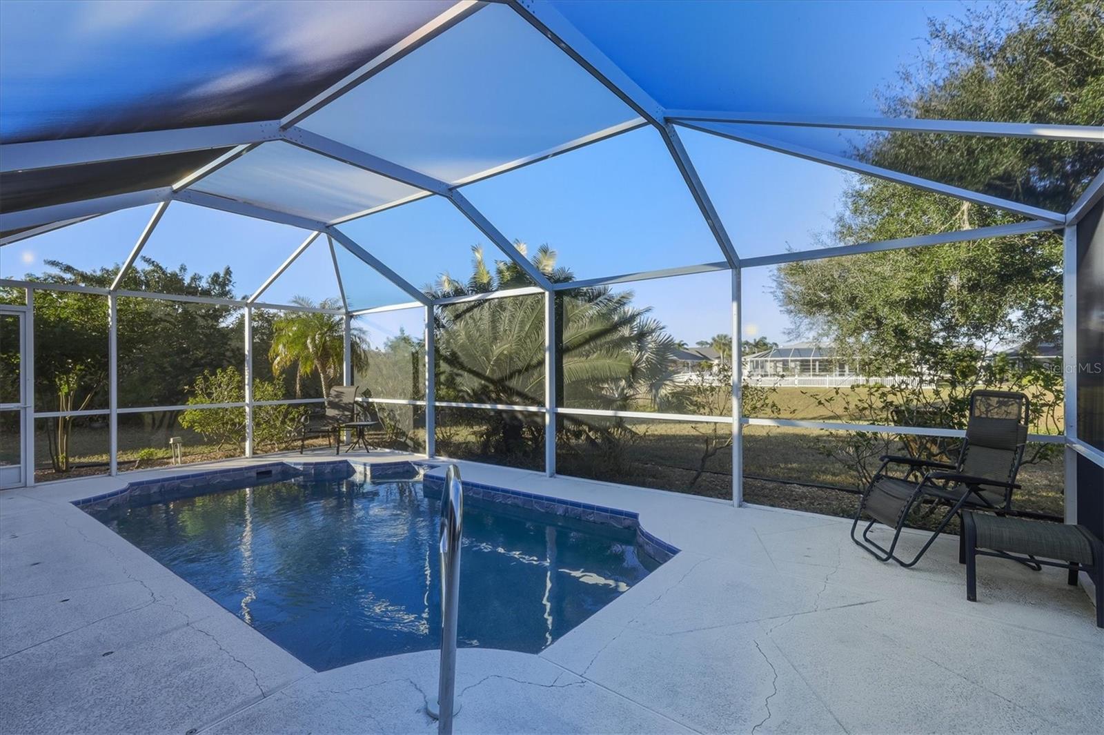 Don't miss out on this beautifully kept and tastefully updated home located in desirable Rotonda West, Florida. Upon entry, you’ll appreciate the spacious living area with vaulted ceilings that flows seamlessly into the nicely updated kitchen featuring granite countertops newer cabinets and stainless-steel appliances. The primary suite offers a private en-suite bath with dual sinks, granite counters, a walk-in shower, and modern fixtures. Guest bedrooms are generously sized and share an updated guest bath. Step outside and relax in the pool with the comfort of a recently installed lanai, not in a flood zone. Situated in a sought-after golf community close to Gulf beaches, boating, fishing, shopping, dining, and entertainment. Ideal for full-time living or a seasonal retreat—this move-in-ready home truly checks all the boxes.