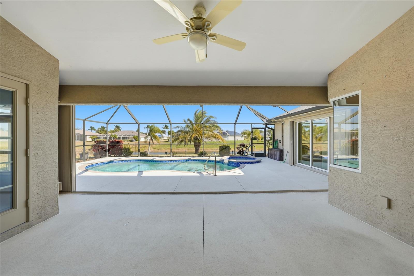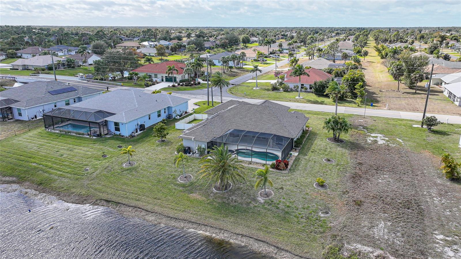Move-in ready waterfront luxury in an X Flood Zone with pool and spa. This beautifully maintained 3 bedroom PLUS bonus room home delivers space, privacy, and serene water views in one of Southwest Florida’s most desirable golf communities. The gourmet kitchen is designed for both everyday living and entertaining, featuring quartz countertops, a breakfast bar, and a sunny dinette with an aquarium window showcasing panoramic water views. The kitchen opens seamlessly to a spacious family room and high ceilings with sliding glass doors leading to the screened lanai, creating effortless indoor-outdoor living. A well-designed split floor plan offers privacy for all. Two generous guest bedrooms and bonus room with a full guest bath are located on one side of the home, while the primary suite are thoughtfully positioned on the other. The Primary ensuite has shower and separate tub. Bedroom two includes a walk-in closet. The guest bathroom offers a generous size shower ideal for family or visiting guests. Step outside to the screened lanai and enjoy the heated pool and spa, where peaceful water views and visiting wildlife create a true Florida retreat. The oversized lot, with no neighboring home close on one side, enhances the sense of space and privacy. Morning coffee is best enjoyed poolside while watching the sunrise over the canal. Additional highlights include a full-size laundry room with washer, dryer, built-in cabinetry for more storage and service sink. A THREE CAR GARAGE with built-in storage, and a canal-fed irrigation system that helps keep landscaping lush while keeping water costs low. Hurricane accordion shutters protect all windows and doors, offering enhanced safety, convenience, and valuable peace of mind during storm season. Recent updates include roof (2023), irrigation pump (2026), pool heater (2016), A/C, pool pump, and water heater (2014). Rotonda West offers an exceptional lifestyle with sidewalks, walking paths, bike trails, tennis courts, playgrounds, RV and boat storage, and a public country club with restaurant and bar. Known as one of Florida’s premier golf course communities, Rotonda West is minutes from world-class fishing, nature preserves, and the sandy beaches of the Gulf Coast. Conveniently located approximately 30 minutes to Punta Gorda Airport, 45 minutes to Sarasota Airport, and about an hour to RSW, this home is ideal for full-time living or a Florida getaway. Whether you are seeking a waterfront pool home, golf-course community living, or a peaceful Florida retreat, this property delivers it all.