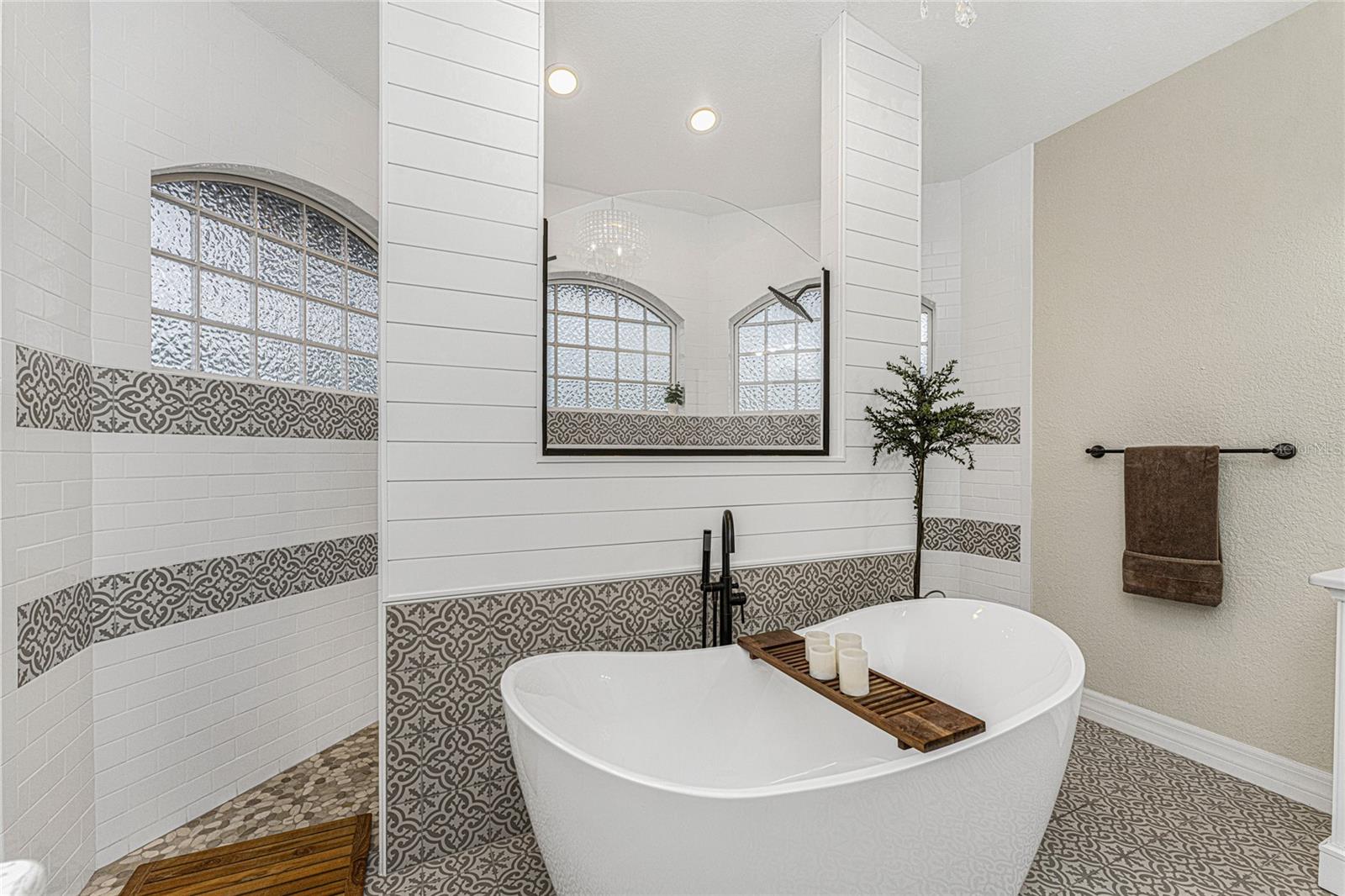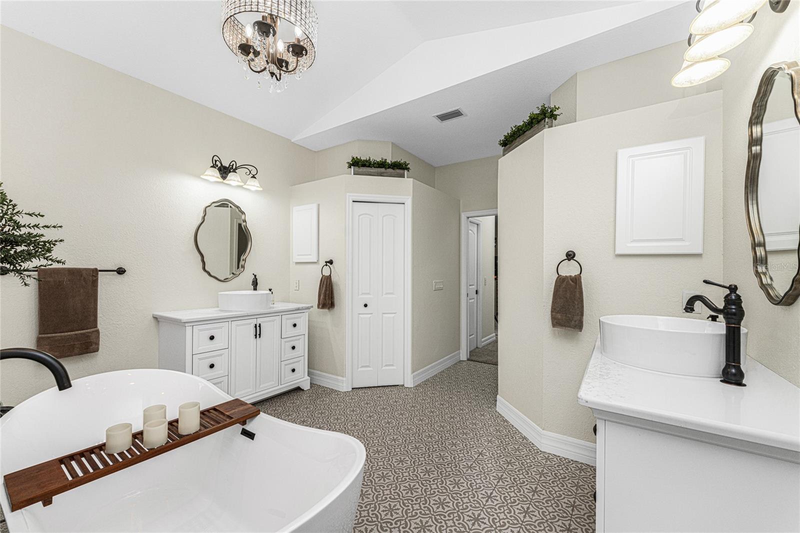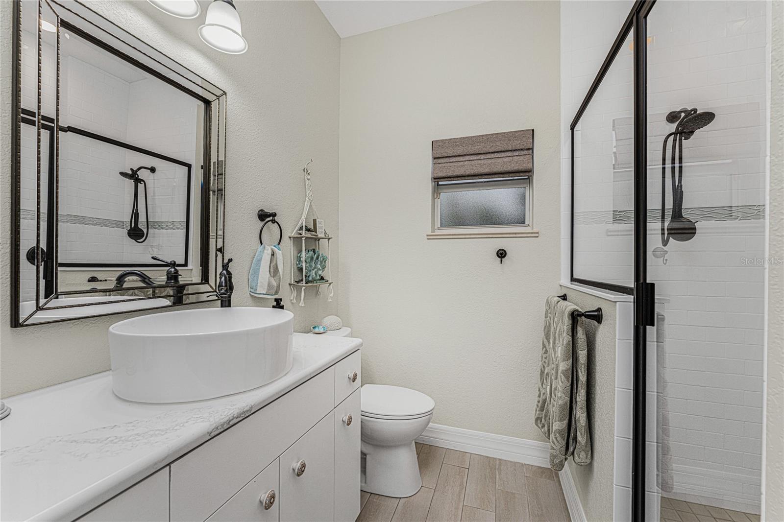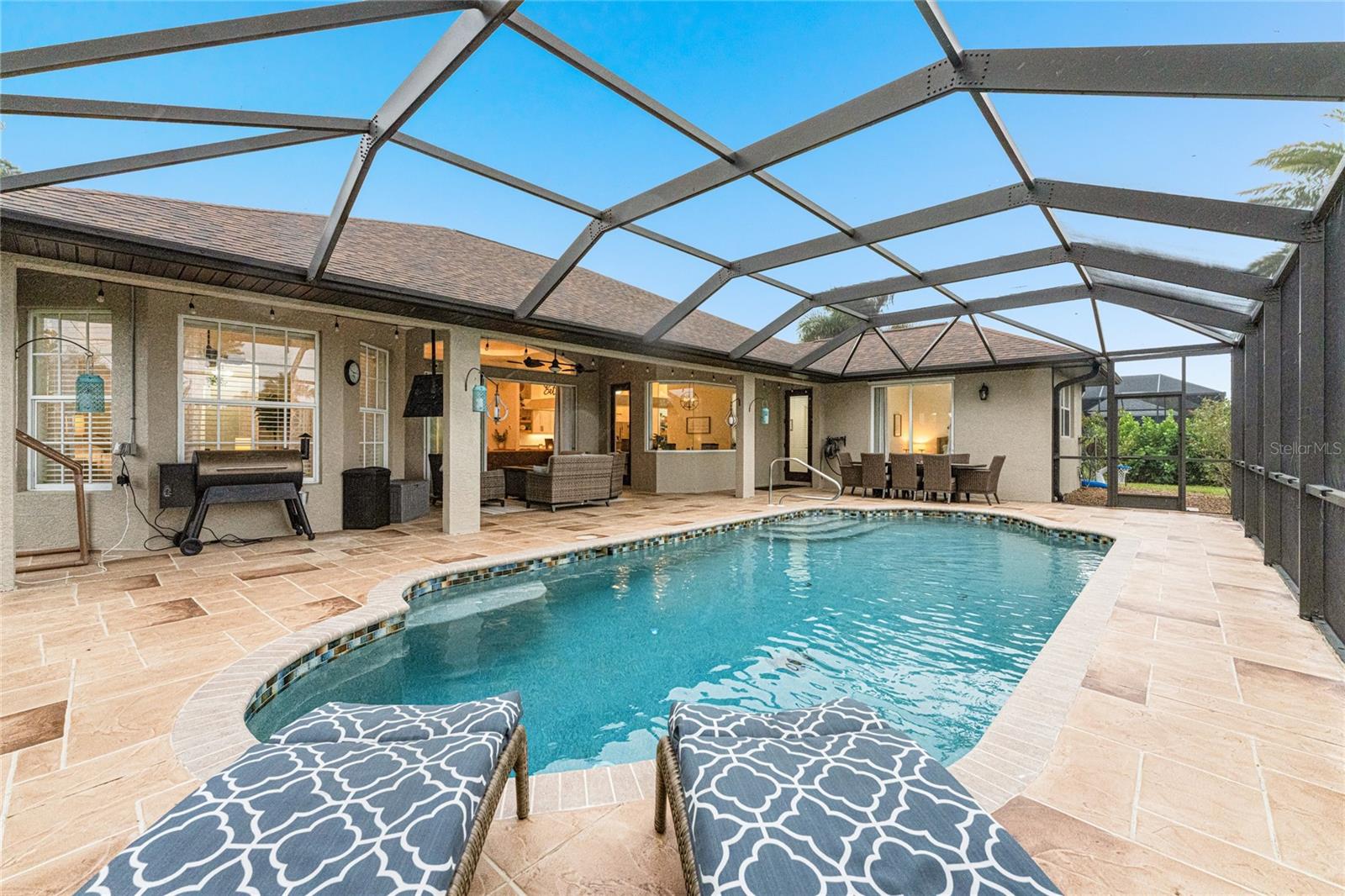 Stunning Former Model Pool Home that has been completely remodeled, transforming it into a modern Florida masterpiece! Set on an expansive, rare nearly half-acre corner lot in an X Flood Zone on one of the most desirable boulevards within the deed-restricted Rotonda West community, this 3-bedroom + den or 4th bedroom, 2-bathroom, 3-car garage shows like a brand new model home, and truly represents the epitome of contemporary Florida living! From the moment you set foot on this property, you’ll immediately be struck by how this home’s curb appeal “pops.” You’ll be greeted by a custom medallion-inlay, grand palm-lined driveway, curbed beds with towering palm trees, and a multitude of flowering shrubs. A custom screened front porch beckons you inside, where you’ll be amazed by the incredible natural light that floods throughout the main living area, accentuating the soaring 13-foot coffered ceiling and a clear line-of-sight through the home to the sparkling lanai and updated pool. Modern wood-look tile flooring flows throughout the main living areas, while architectural details abound, including custom plant shelves, niches, and crown molding, giving the home a truly upscale feel. The centerpiece of the great room is a stunning, floor-to-ceiling marble mosaic-tiled accent wall, with a linear fireplace, built-in cabinetry, and beautiful wood floating shelves. The open-plan chef-inspired kitchen includes abundant white shaker-style cabinetry, soft-close doors, sparkling white quartz counters, a custom tile backsplash, an oversized “statement” island with seating for five, a coffee bar, an additional center island with shiplap siding, and a huge walk-in pantry. The eat-in space has a spectacular view of the pool through a large aquarium-glass window. The ensuite primary bedroom is a stunner, w/super-plush carpeting, a light-drenched bay window wall, direct pool access, and two walk-in closets. The primary bath is jaw-dropping, with custom floor and wall tile, a free-standing soaker tub, a Roman style walk-in shower with dual heads, and dual vanities with vessel sinks, fully remodeled in 2022. Two guest bedrooms are separated from the main common area via a pocketed door, with one providing direct pool access through a sliding-glass door. The large den area features a double-door entry and can easily serve as a true fourth bedroom, office, gym, or hobby room. The laundry room features newer washer and dryer and floating shelves for storage. The oversized 3-car garage has epoxy flooring and new custom pull-down screens to allow a comfortable breeze while working in the garage. The spacious lanai includes updated stained and stamped concrete decking, a custom ceiling fan, and a large double-Roman freshly resurfaced pool. The back yard is your private oasis, with amazing landscaping beds and complete privacy via 7-foot tall Clusia hedges across both sides and 8-foot Areca Palms across the back. With a new roof and HVAC in 2022, plus a full interior remodel that same year, you’ll have nothing to do at the fully remodeled 291 Rotonda Blvd East but move in and immediately start enjoying the amazing Florida sunshine! Rotonda West is an expanding community that includes canals, lakes, golf courses, playground, pickleball courts, bike paths, w/easy access to beaches, a 10-mile “rail trail,” boating, and world-class fishing. Welcome to your dream home!