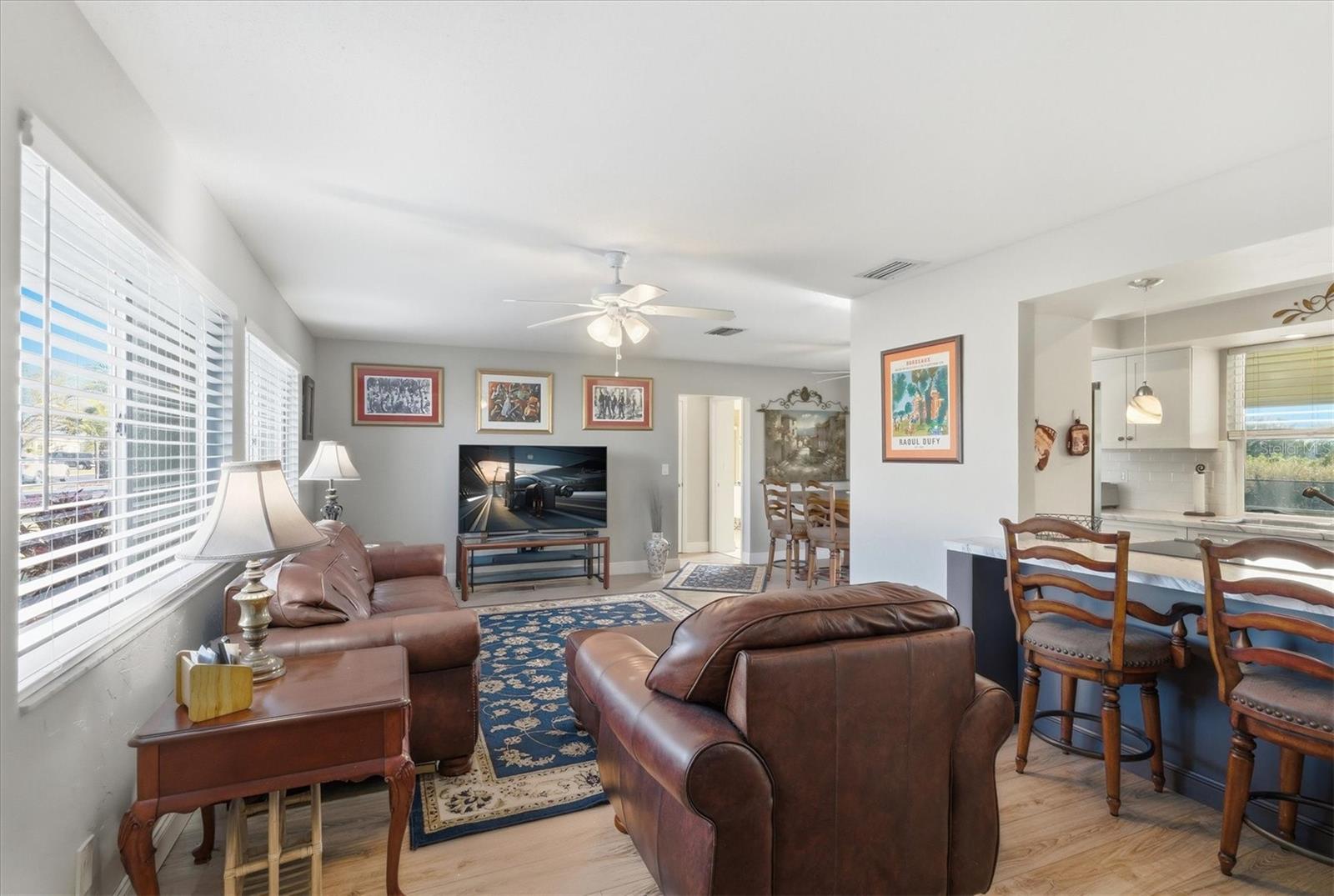Move in Ready Turnkey 2 car garage home in Rotonda West! Excellent location and opportunity for a full-time residence or an AIRBNB income producing property. Close to numerous local Tiki-Bars, Fine Dining, Golfing, Public Boat Ramps and Storage Marinas. Short car drive or boat ride to either Boca Grande or Manasota Key Beach. This home has the popular desired split bedroom floor plan. The primary bedroom and has lots of natural light and private sliding doors out to the enclosed screen lanai. There is another slider off the dining room into the lanai which features an amazing tranquil backyard view of the Preserve. The backyard is enclosed with a black cable vinyl fence with two gates for easy access. Updates include: 2023 Roof *2019 A/C *2026 Hot water heater *2019 Electric Panel and 2019 remodeled kitchen. Call for a Private Showing!
