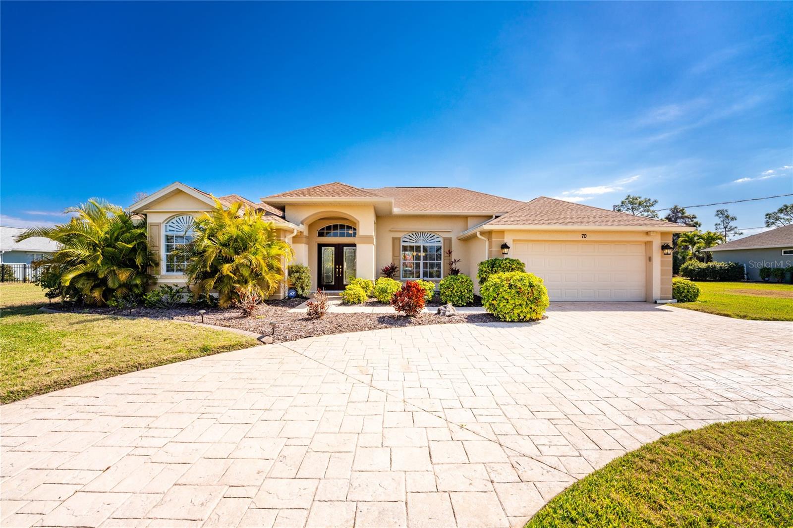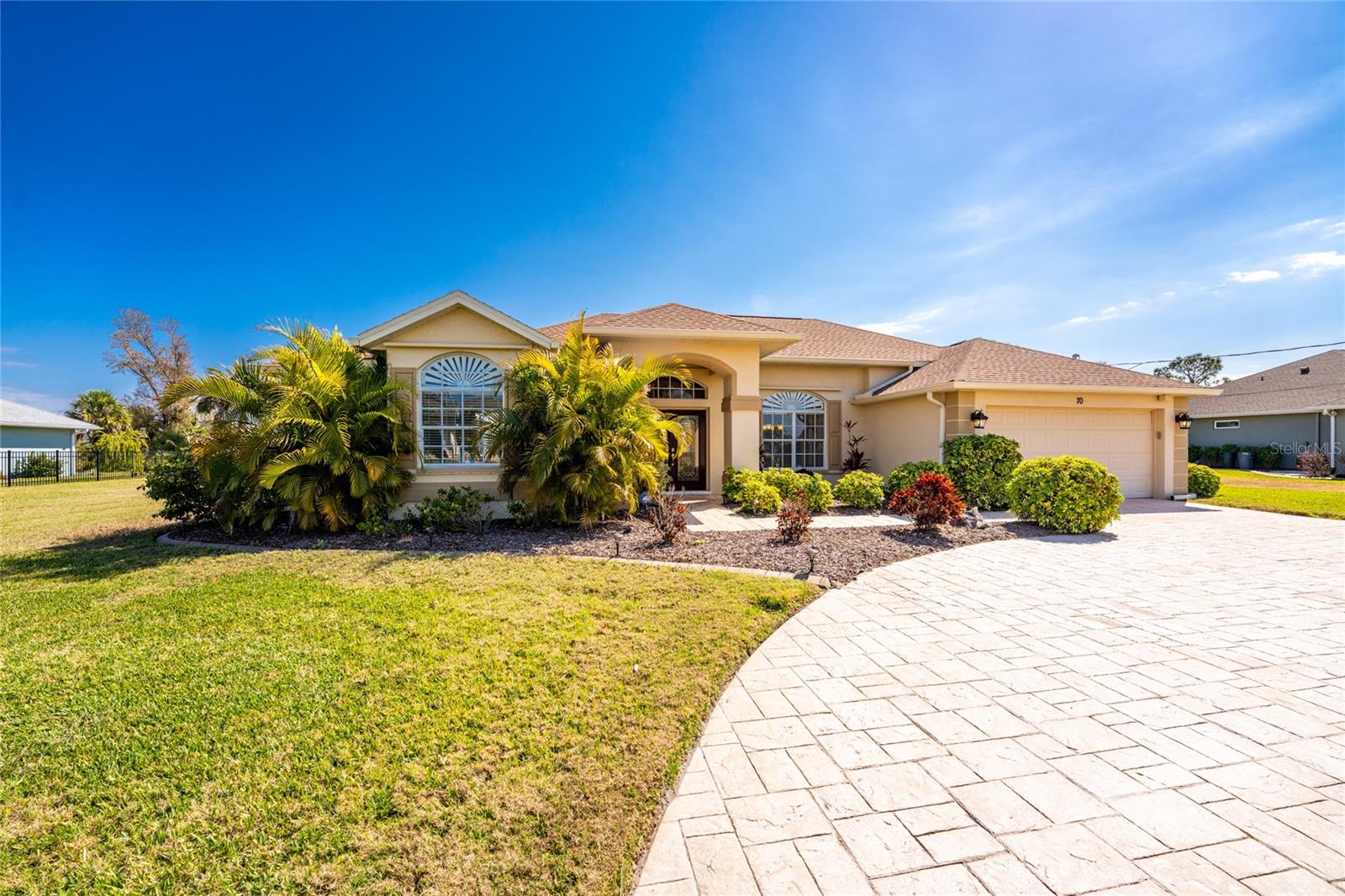 Privacy you can feel the moment you arrive in Rotonda West. This well maintained three bedroom, two bathroom pool home is center positioned on almost a half an acre double lot and gives you plenty of space between neighbors. Backing to the wooded preserve of Broadmoor Park with miles of walking trails and no rear neighbors, the setting feels peaceful and tucked away while still being part of an established community. The home is being sold turnkey furnished, is located in a desirable X flood zone, and includes full hurricane protection with shutters, panels, and a hurricane rated garage door for added peace of mind. A pavered circular driveway and walkway, 2023 multidimensional roof, and mature tropical landscaping create a warm welcome. Double glass doors open to a light filled great room where neutral tones, tile flooring in the main living areas, and multiple windows and sliding doors invite natural light throughout. With both a formal living room and a family room, both with sliding glass doors, the layout offers comfortable spaces for everyday living. The centrally located kitchen is the hub of the home with solid oak cabinetry, granite countertops, a reach in pantry, and plant shelves. The adjoining breakfast nook features an aquarium window, the perfect spot for your morning coffee, while the formal dining room is ready for larger gatherings. The interior laundry room includes shelving, a reach-in closet, and a convenient utility sink. The ensuite primary bedroom retreat has vaulted ceilings, sliding doors for easy pool access, dual walk-in closets, and a bathroom with a large soaking tub, dual separate vanities, and a step in glass enclosed shower. The two spacious guest bedrooms both have vaulted ceilings, one features a walk-in closet, and the guest bathroom functions as a pool bath with an additional exterior door, shower and tub combination, and granite topped vanity. Outdoor living takes center stage with a large heated pool and a 2024 pool cage with panoramic screening designed to keep views open and unobstructed. The partially covered lanai offers space to relax in the shade or enjoy dinner in the evening breeze without the worry of pests. Additional upgrades include 2024 HVAC, 2025 humidistat, alarm system, newer garage door opener, irrigation well, and interior and exterior paint completed three years ago. Life in Rotonda West is all about being outside and enjoying where you live. With 26 miles of canals, ponds, and lakes, it is common to see fish jumping and wildlife along the water, and the neighborhood trails make morning walks and bike rides part of the daily routine. Rotonda Community Park and Preserve offers pickleball and tennis courts, a nature trail, picnic shelters, and a playground that brings neighbors together. Nearby beaches, local restaurants, shopping, entertainment, and medical facilities make day to day living convenient. Golfers have five courses to choose from in Rotonda West, and for those who love the water, boat ramps and kayak launches are just minutes away. Spend the afternoon on the sandbar at Stump Pass, fish the waters of Charlotte Harbor, or cruise along Lemon Bay and pull up to a favorite waterfront spot for dinner with friends. This exceptional property at 70 Sportsman Road in Rotonda West brings together the privacy of a rare double lot setting and the vibrant Southwest Florida lifestyle so many buyers are searching for.