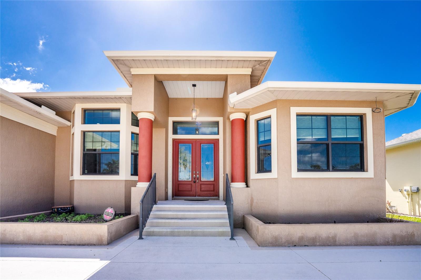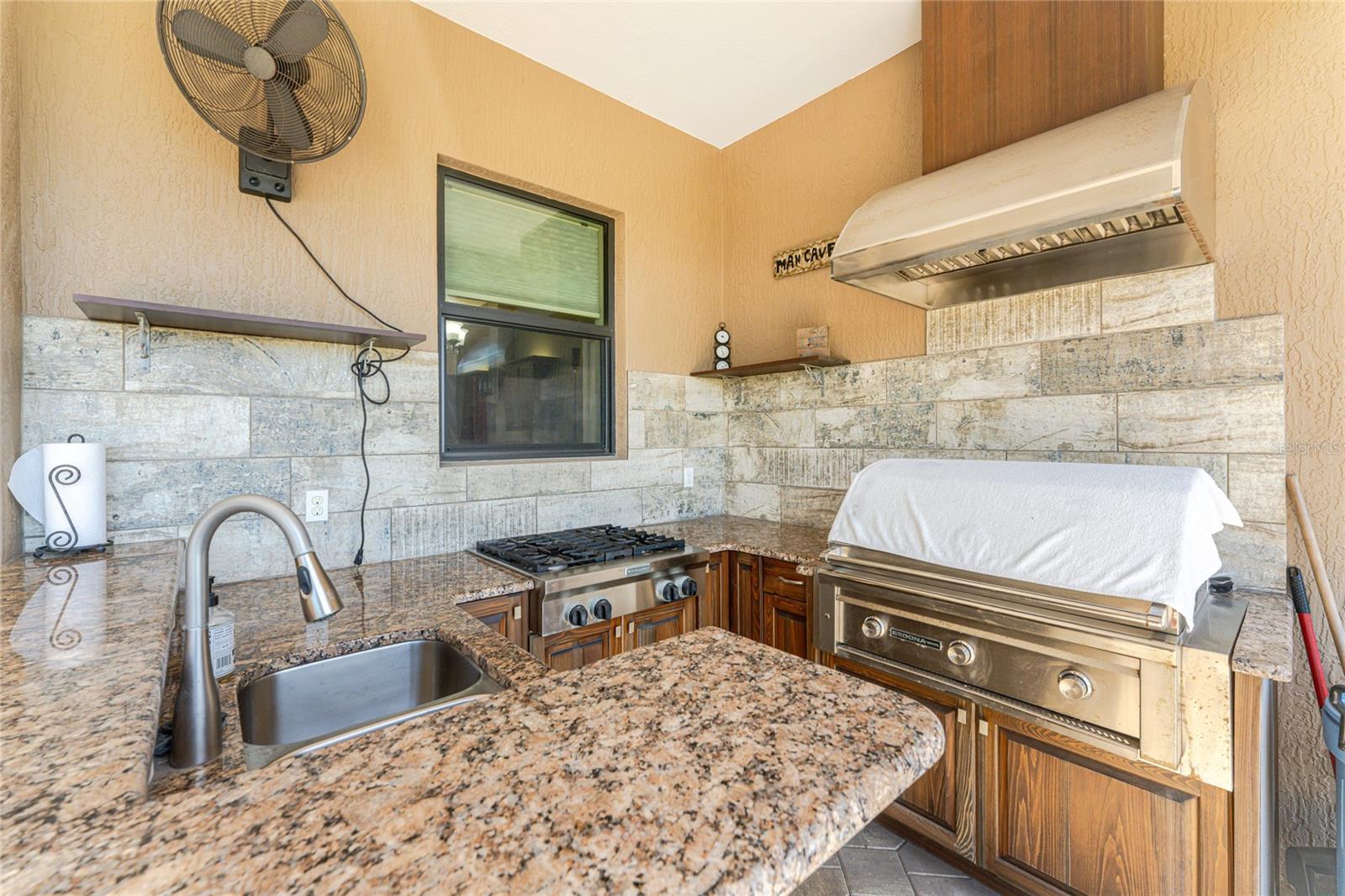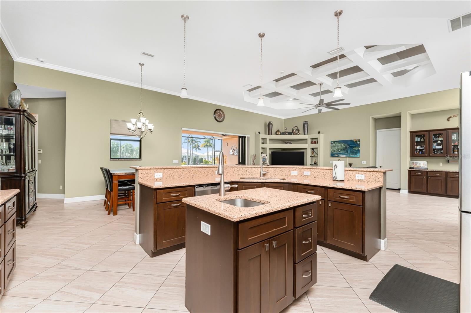 Located within a desirable golf course community and set on an oversized greenbelt lot, this stunning custom-built home offers over 3,200 square feet of thoughtfully designed living space in a deed-restricted neighborhood. Built in 2015, the residence blends comfort, elegance, and exceptional functionality. The living room showcases a beautiful coffered ceiling with crown molding, adding a touch of architectural elegance. Sliding glass doors open onto the lanai, making this a perfect home for entertaining. The bar area provides plenty of room for mixing your guest's favorite cocktails, with built in cabinetry for storing all your beautiful stemware. Featuring six spacious bedrooms, including four private ensuite suites, this home offers incredible flexibility for a variety of lifestyles. Whether you need all six bedrooms or prefer to transform one into a home office, craft room, fitness studio, or hobby space, the possibilities are endless. The home has four and a half bathrooms, each with a wood vanity & granite top, and tiled showers. The interior showcases tiled flooring throughout for easy maintenance, impact windows, and hurricane protection at the front double-door entry for added peace of mind. Designed for both everyday living and entertaining, the chef’s kitchen features rich wood cabinetry, granite countertops, and a stylish tiled backsplash. A large island with a salad sink and butler’s pantry provides extra prep space and storage. High-end appliances include a Samsung double-door refrigerator, Bosch microwave/convection oven, separate Bosch built-in oven, LG Studio five-burner cooktop with stainless downdraft ventilation, and an LG dishwasher. A generous breakfast bar with seating for six flows seamlessly into the adjacent dining area, creating the perfect gathering space for family and guests. The spacious primary suite offers sliding glass doors leading to the lanai, three walk-in closets with built-in organizers, a tray ceiling, and ceiling fan. The luxurious primary bath features dual vanities w/granite tops, a linen closet, and a spacious Roman shower. Additional features include a laundry room with utility tub and Samsung washer and dryer, as well as a central vacuum system for convenience. The 2.5 car garage has epoxy floor coating for easy cleanup, pull down stairs for attic access, and automatic garage door opener. Outdoor living is just as impressive. The extended screened lanai features paver decking, a fully equipped outdoor kitchen with gas burner, gas grill, and wet sink, along with a built-in gas firepit, creating the perfect setting for relaxing evenings or entertaining guests. A circular driveway provides ample parking for multiple vehicles and adds to the home’s impressive curb appeal. This exceptional property offers the perfect combination of space, quality craftsmanship, and resort-style living within a beautiful golf course community. Area beaches, shopping, world class fishing, quaint shops and unique restaurants are all close by! Take a look today!