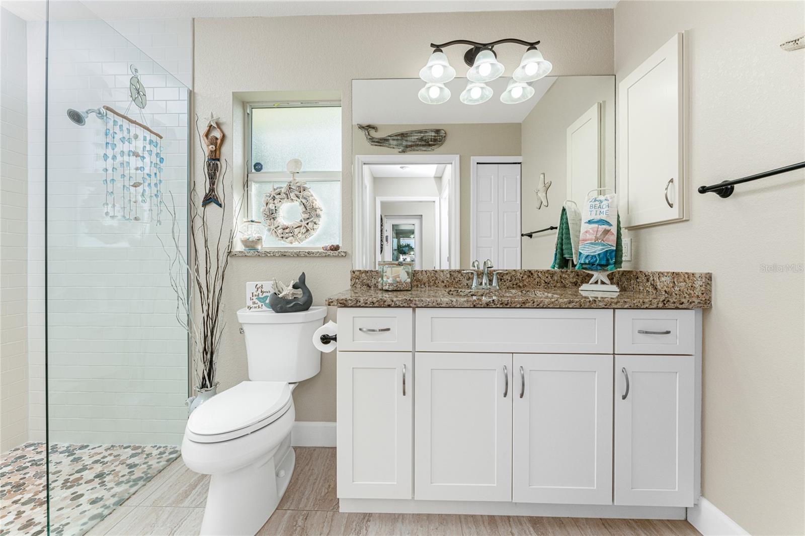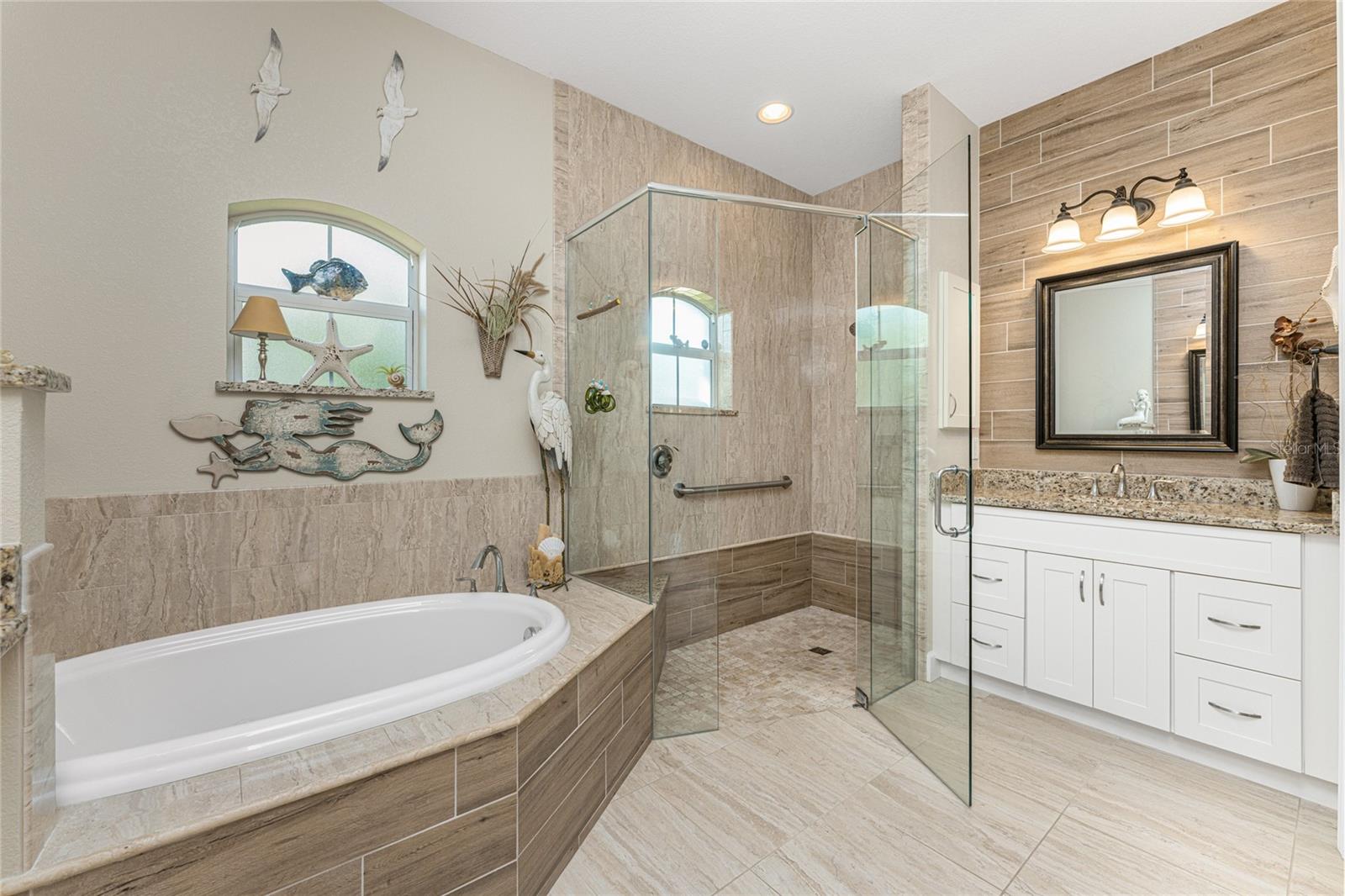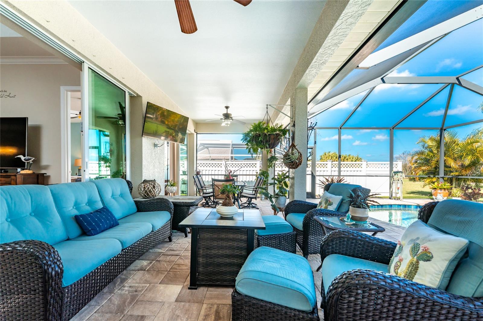 Welcome to Your Florida Dream Pool Home in Rotonda West! This beautifully maintained residence, built by Porter Contracting, offers three bedrooms, two bathrooms, and an oversized three car garage, blending refined design with relaxed luxury. Located in the X flood zone, the property offers valuable peace of mind with a 2023 roof along with hurricane shutters. From the moment of arrival, this home makes an impression. Lush tropical landscaping frames the property as the long driveway leads to a welcoming paver front porch accented by columns and a decorative glass entry door with sidelights, perfect for relaxing outdoors and enjoying the quiet neighborhood setting. Inside, the exceptional level of care and craftsmanship is immediately apparent. Wood look tile flooring flows throughout the main living areas, complemented by crown molding, plantation shutters, tray ceilings, and designer lighting and ceiling fans. Triple pocketing sliding glass doors in the great room fill the open layout space with plenty of natural light. The kitchen is both beautiful and functional, featuring white shaker style cabinetry with crown molding and soft close hinges, granite countertops, a glass tile backsplash, and a spacious center island with striking blue and white detail that creates a stunning focal point. An aquarium window in the adjoining breakfast nook frames panoramic views of the pool area. The interior laundry room is designed with a built-in utility sink cabinet that provides additional storage. The primary suite offers a peaceful retreat with generous space for furnishings, a tray ceiling with crown molding, sliding glass doors to access the pool area, and dual walk-in closets. The ensuite bathroom creates a spa inspired atmosphere with a large soaking tub, European style frameless glass enclosed walk-in shower, separate vanities, and beautiful tile work that extends halfway up the walls and fully throughout the shower. Both guest bedrooms are spacious and inviting, with one featuring sliding glass doors to the pool area along with a walk-in closet. The guest bathroom is equally well appointed with an oversized granite topped vanity and a large frameless glass enclosed shower finished with full tile walls. Outdoor living here is truly spectacular. The screened pool enclosure surrounds a partially covered paver pool deck and a heated saltwater pool, creating a private oasis designed for relaxation and entertaining. Privacy fencing along the sides of the screen enclosure, combined with lush landscaping behind the home, creates a sense of seclusion while still allowing views of the open backyard and mature trees that invite you to enjoy the natural surroundings. Located in the deed restricted community of Rotonda West, residents enjoy an active lifestyle with five premier golf courses, miles of lakes and canals ideal for fishing and wildlife viewing, tennis and pickleball courts, walking trails, social clubs, and community activities. Several Gulf beaches, parks, shopping, restaurants, tiki bars, boat ramps, and medical facilities are all within ten miles. Baseball fans will also appreciate the nearby spring training facilities for two Major League teams. Whether enjoyed seasonally or year round, this exceptional home at 601 Boundary Boulevard offers a luxurious and comfortable setting to experience the very best of the Rotonda West lifestyle.