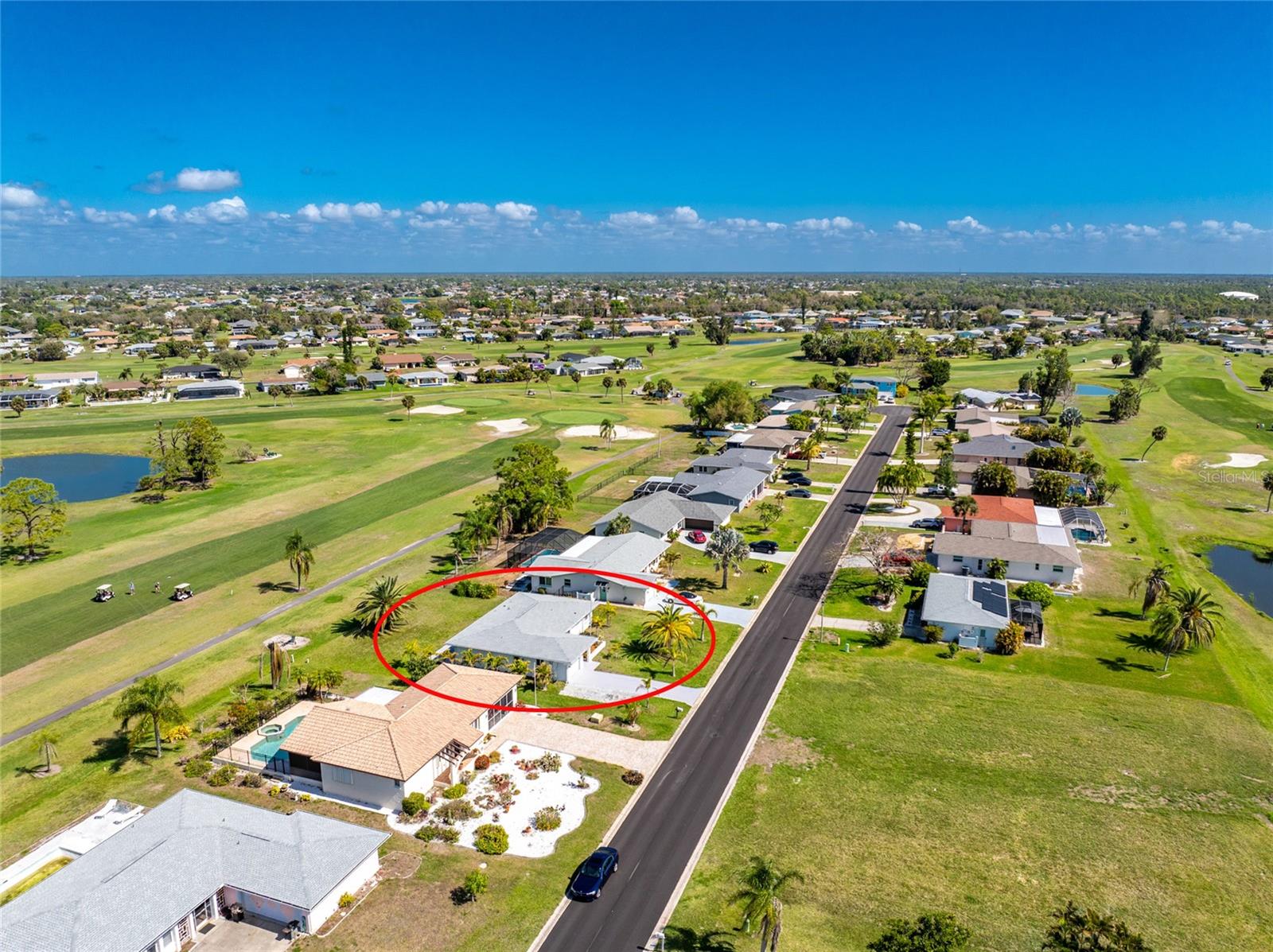 Exceptional Renovated Home Overlooking the Fairway in the Oakland Hills Section of Rotonda West! This beautifully updated two bedroom, two bathroom classic home offers peace of mind with a 2022 roof and a 2023 air conditioning system, along with a complete interior remodel that makes the home feel like new. The wide driveway and charming exterior create wonderful curb appeal, enhanced by beautiful new landscaping that welcomes you at the entryway. Inside, gleaming luxury vinyl flooring flows consistently throughout the home, making everyday maintenance easy. A large bay window, soft neutral color palette, and an open floor plan connect the kitchen, dining area, formal living room, and family room. Two sets of sliding glass doors fill the space with natural light and create a bright, comfortable setting for everyday living. The kitchen is designed to impress with shaker style cabinetry featuring soft close hinges, quartz countertops, a glass tile backsplash, and a center island that makes both cooking and entertaining enjoyable. The primary bedroom suite features large windows and a walk-in closet. A stylish barn door leads to the private bathroom where you will find a double sink vanity with custom lighting and mirrors along with a large fully tiled step in shower. The guest bedroom is spacious and includes a reach-in closet, while the nearby guest bathroom features a custom wood vanity, a fully tiled step in shower, and a convenient door that provides access to the patio. A convenient interior laundry area has been thoughtfully incorporated into an oversized closet space, providing room for the washer and dryer while keeping everything easily accessible inside the home. The single car garage provides additional parking and storage so your golf clubs, beach chairs, and outdoor gear are always close at hand. Step outside to the open air patio where you have a front row seat to enjoy peaceful golf course views. Located in the deed restricted community of Oakland Hills, residents enjoy access to golf, tennis, walking and biking paths, and fishing, all just minutes from home. When the beach calls, Englewood Beach is less than 10 miles away and Boca Grande is just under 12 miles, offering beautiful white sand, coastal breezes, and plenty of waterfront dining and tiki bars. Discover the Florida lifestyle waiting for you at 72 Oakland Hills Court.