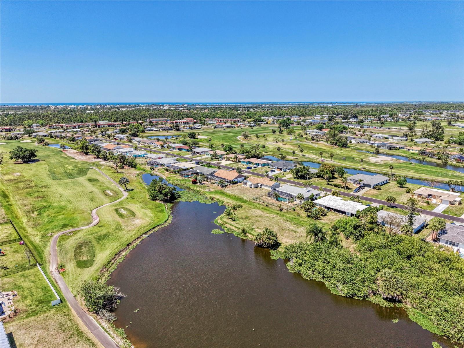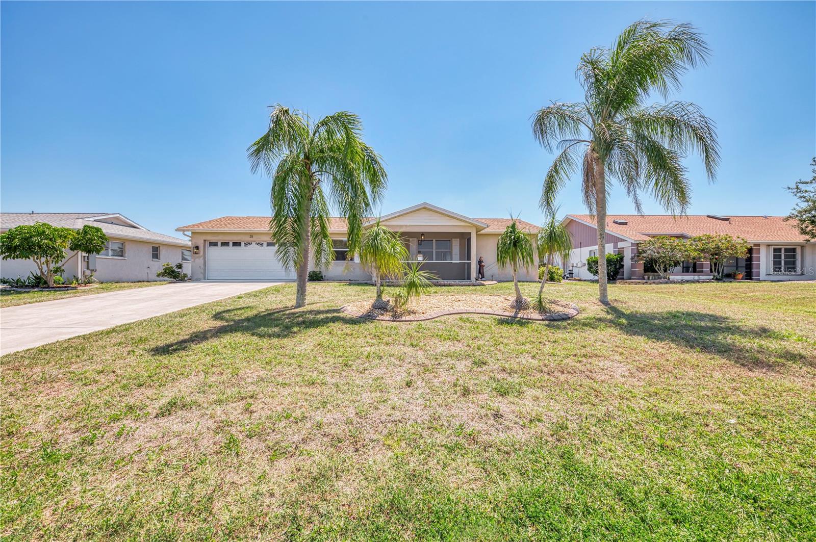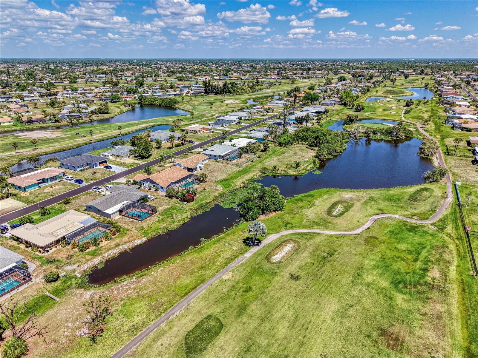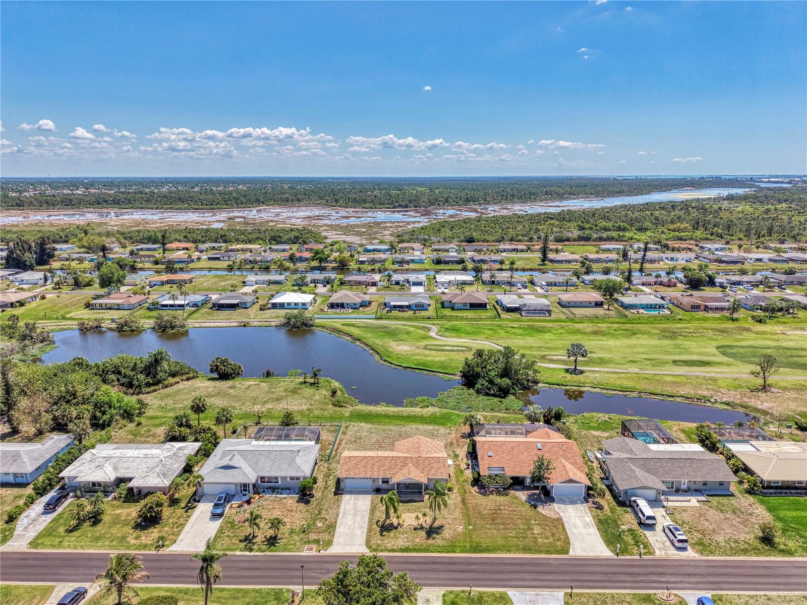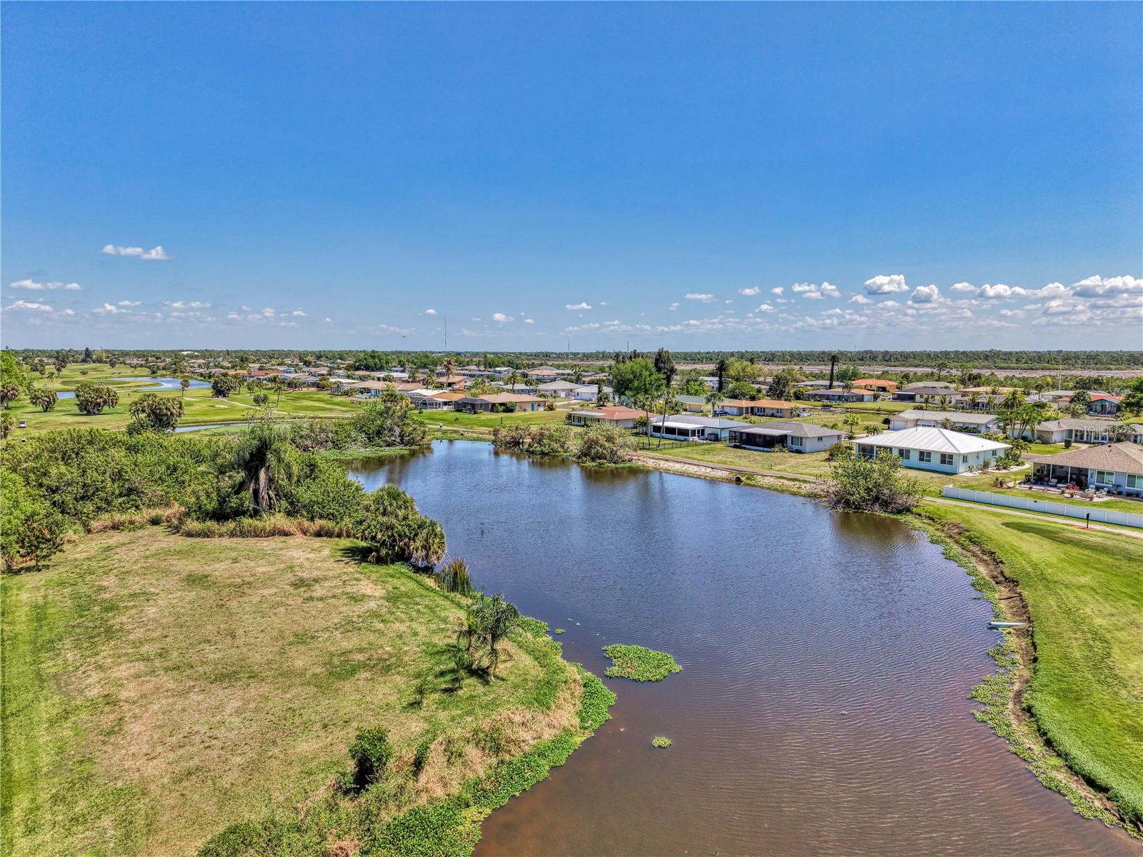 If you are looking for a home on the golf course with a lovely water view, without breaking the bank, this is one you will want to check out. Located on the 8th hole of The Hills Golf Course in the popular deed-restricted community of Rotonda West, this 2 bedroom, 2 bath, 2 car garage home has had many updates, and is just waiting for someone to add their personal touch. A new roof was put on in 2024, and a new AC system and Water Heater were installed in August of 2020. Recent updates this year include new solid shaker-style wood kitchen cabinets with soft-close doors and drawers, new quartz kitchen countertops, a new garbage disposal, new carpeting in the primary bedroom, as well as a new bathroom vanity and quartz countertop. New ceiling fans and new window blinds have also recently been installed. The home features ceramic tile throughout the house (except for the primary bedroom), a split bedroom floorplan, and sliding doors to the ceramic tiled lanai. Enjoy Rotonda's 165-acre community park, 30-mile fresh water canal system and excellent golf courses, along with the area's sparkling intercoastal waterways, beautiful Gulf of Mexico beaches, miles of walking and biking trails, tennis courts, restaurants, shopping, and world-class fishing. Make your appointment today! Time to enjoy the Florida sun!