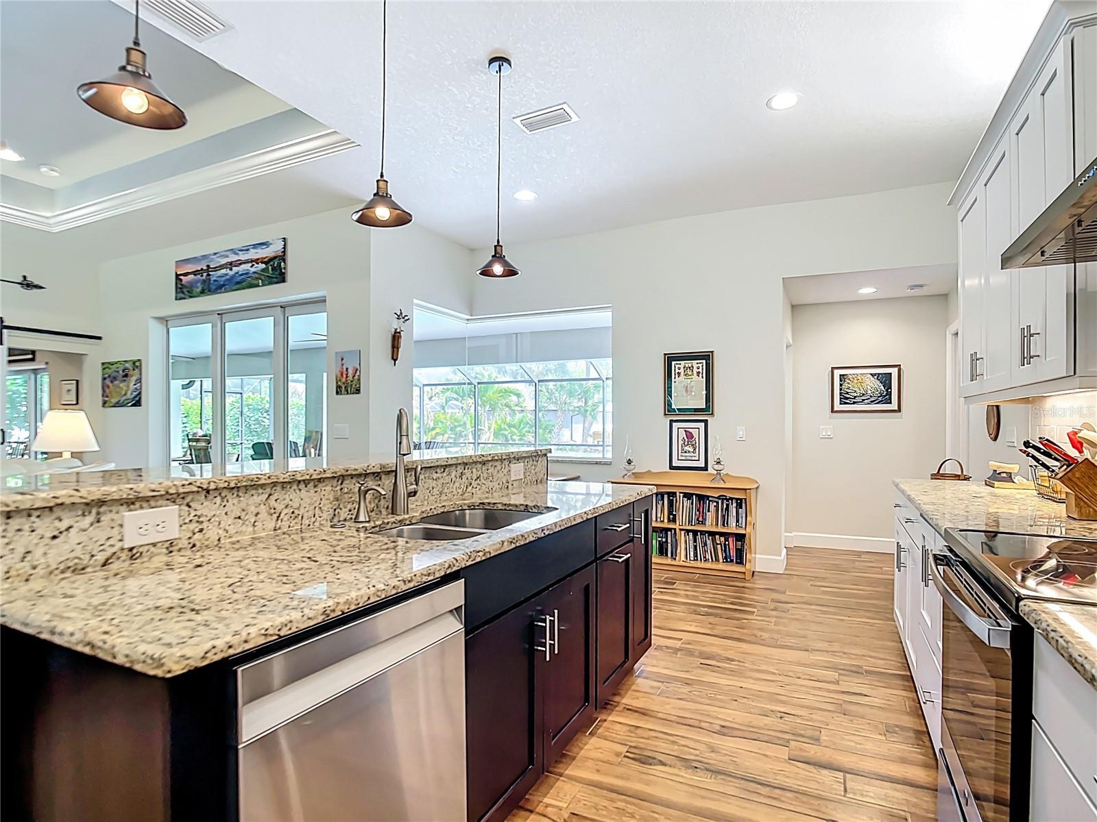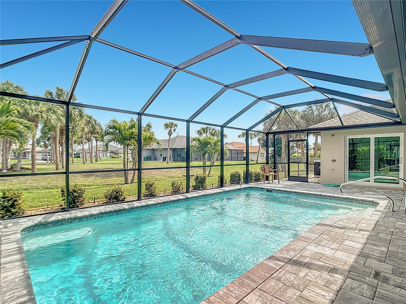 Under contract-accepting backup offers. Immaculate 2022 Porter-Built Home! This 3-bedroom, 2-bath, 3-car garage heated pool home is located on an X flood zone lot in the desirable Rotonda West subdivision. Rotonda West is a deed-restricted community with central water and sewer. From the moment you enter this open great room floor plan, you are welcomed by abundant natural light, a soaring lighted coffered ceiling, numerous windows, a mitered glass breakfast nook, and sliding glass doors overlooking the pool area. The open kitchen features stainless steel appliances, tile backsplash, custom exhaust hood, and a pot filler, making it perfect for both everyday living and entertaining. The primary suite includes a coffered ceiling, sliding glass doors to the lanai, and two large walk-in closets. The primary bathroom offers dual vanities with custom lighting, a tile-wrapped walk-through shower with multiple shower heads, and a private water closet. Bedroom 2 features sliding glass doors to the pool area and a spacious walk-in closet. The indoor laundry room includes an additional storage closet. Beautiful plank tile flooring runs throughout the home. The rear yard is partially fenced, and the home is professionally landscaped with an irrigation system, well, and pump for watering. Located in a community surrounded by golf courses and conveniently close to shopping, restaurants, Gulf beaches, marinas with direct access to the Intracoastal Waterway and the Gulf of Mexico, and world-class fishing.