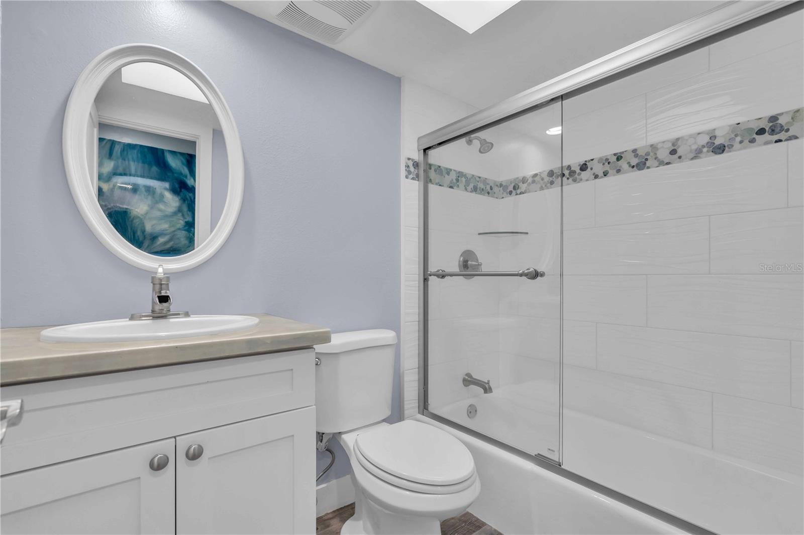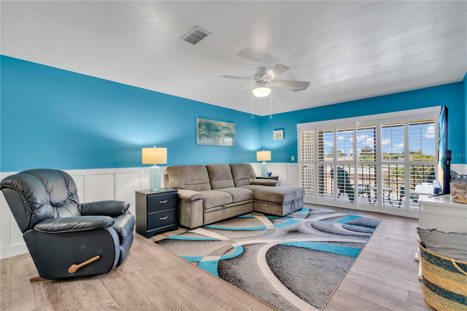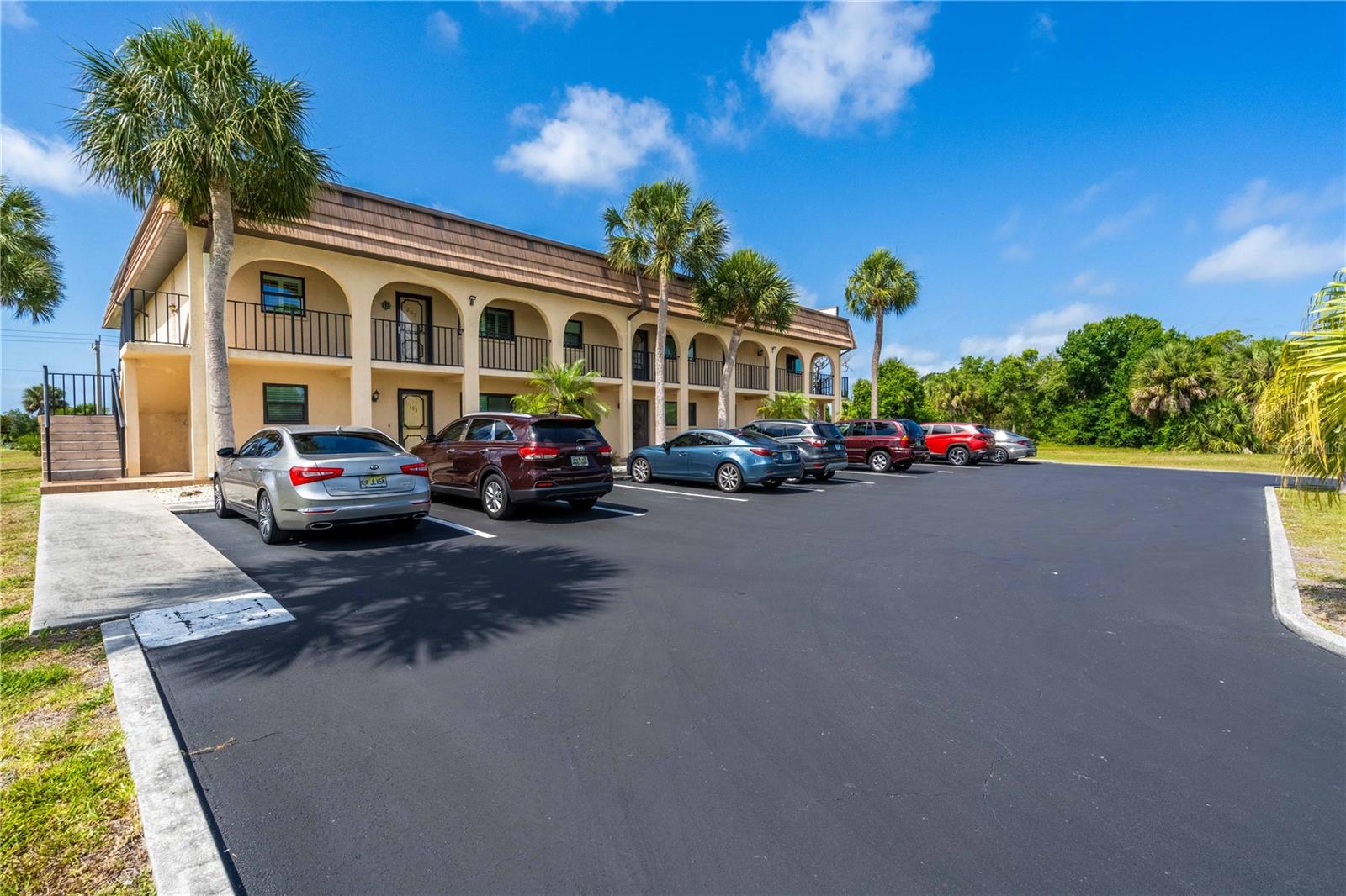Discover the oasis you’ve been searching for in this exclusive second-floor condominium, nestled in the serene community of Siesta Palms of ‘Rotonda West. This meticulously curated 2-bedroom, 2-bath unit is one of just six, ensuring complete privacy and tranquility. Step inside and be greeted by an open floor plan that flows seamlessly throughout the unit, highlighted by uniform porcelain tile flooring. Every detail has been thoughtfully designed, from the newly installed KEVLAR curtain and IMPACT windows, offering enhanced security, to the modern interior doors, Plantation Shutters throughout and customized wall treatments that elevate the aesthetic appeal. The kitchen is a chef’s dream, boasting custom epoxy countertops, a movable island with additional storage, stainless steel appliances, and upgraded recessed lighting and fixtures. The convenience of an in-unit washer and dryer is an added bonus. The adjoining dining and living area is perfect for entertaining, ensuring you never miss a moment with your guests. Retreat to the cozy pull-out sofa or unwind in the primary bedroom with fireplace TV stands. The primary bedroom features a walk-in closet and a fully renovated en-suite bathroom with dual sinks, an enlarged linen cabinet, and an upgraded walk-in shower with a beautiful tile surround. Guests will feel right at home in the bright and inviting guest room, which also includes a walk-in closet and plenty of natural light. Enjoy the Florida lifestyle to the fullest on the screened-in lanai, overlooking the private community pool. This serene space is perfect for savoring your morning coffee or relaxing at sunset, enveloped in privacy. Reasonable HOA fees cover a wide range of amenities, including pool and lawn maintenance, building and liability insurance, pest control, and more! Conveniently located, this condominium offers easy access to shopping, dining, golf courses, and a variety of recreational activities. Indulge in the epitome of coastal living, where every detail has been thoughtfully considered to elevate your comfort and enjoyment to unparalleled levels!