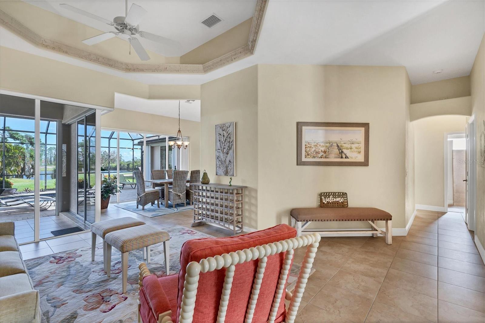 FABULOUS Rotonda West Broadmoor Waterfront Executive home! 4 bedroom/3 Bath spacious pool home with oversized garage and more than 2,400 square feet of living space comes turnkey furnished! Located close to several golf courses within Rotonda West and a Community Park! Step into your dream home with the spectacular open floor plan and stunning views of the lake located on this large corner lot! Gorgeous custom trey ceilings and crown molding throughout the home are just some of the features you will notice as you enter the foyer into the formal living room. Large Master bedroom has sliders to the pool and lanai as well as a 9 x 7 walk-in closet! Nice Master Bath with separate tub and walk-in shower also features Plantation shutters over bath! Open your zero corner pocket sliding doors to enjoy the beautiful private lanai and the peaceful tranquility of the lush landscaping and lake views! Enjoy your beautiful open kitchen off the lanai with bar seating, granite countertops and 42" cabinets and pantry! The Great Room just off the kitchen has lots of room to relax and entertain! Professionally landscaped and meticulously maintained, this unique property is perfect for investors or if you are looking to buy your forever home! Close to shopping, beaches, restaurants and entertainment! Schedule your showing today!
