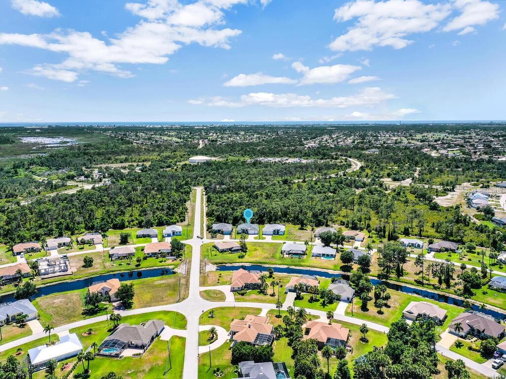 One or more photo(s) has been virtually staged. Introducing an exquisite new construction home showcasing a stunning pool within an expansive lanai. This home boasts an open-concept design, featuring a great room with a formal dining area, inviting living room, and a kitchen with an eating area and breakfast bar. With high/vaulted ceilings and sleek wood plank porcelain tile, this home exudes a contemporary ambiance. The kitchen is a chef's dream, equipped with stainless steel appliances, luxurious quartz counters, and elegant white real wood cabinets, some with glass doors and open shelving. A generously sized walk-in pantry caters to all your storage needs. The owner's suite offers a private retreat, featuring sliders to the lanai, 2 walk-in closets, and a spa-like En-Suite with dual sinks, a water closet, and a spacious custom tiled shower with seating and multi-shower heads. The split bedroom layout ensures privacy for guests, with a pocket door to the guest area – which includes two bedrooms and a shared bath that opens to the lanai. The home is outfitted with impact-rated exterior windows and doors. Situated in the highly sought-after Rotonda West area, residents can delight in the proximity to walking trails, community parks, golf, and boating. Furthermore, this location offers convenient access to beaches, wildlife preserves, restaurants, shopping, and entertainment.