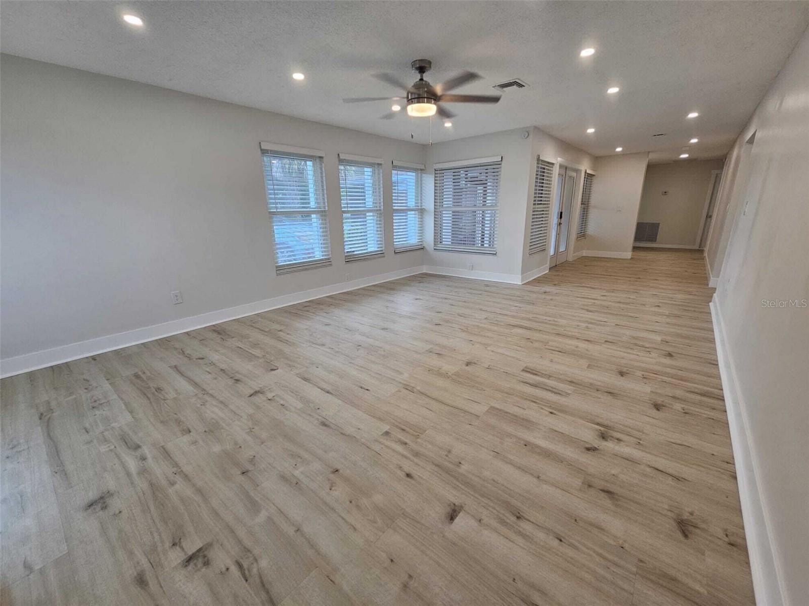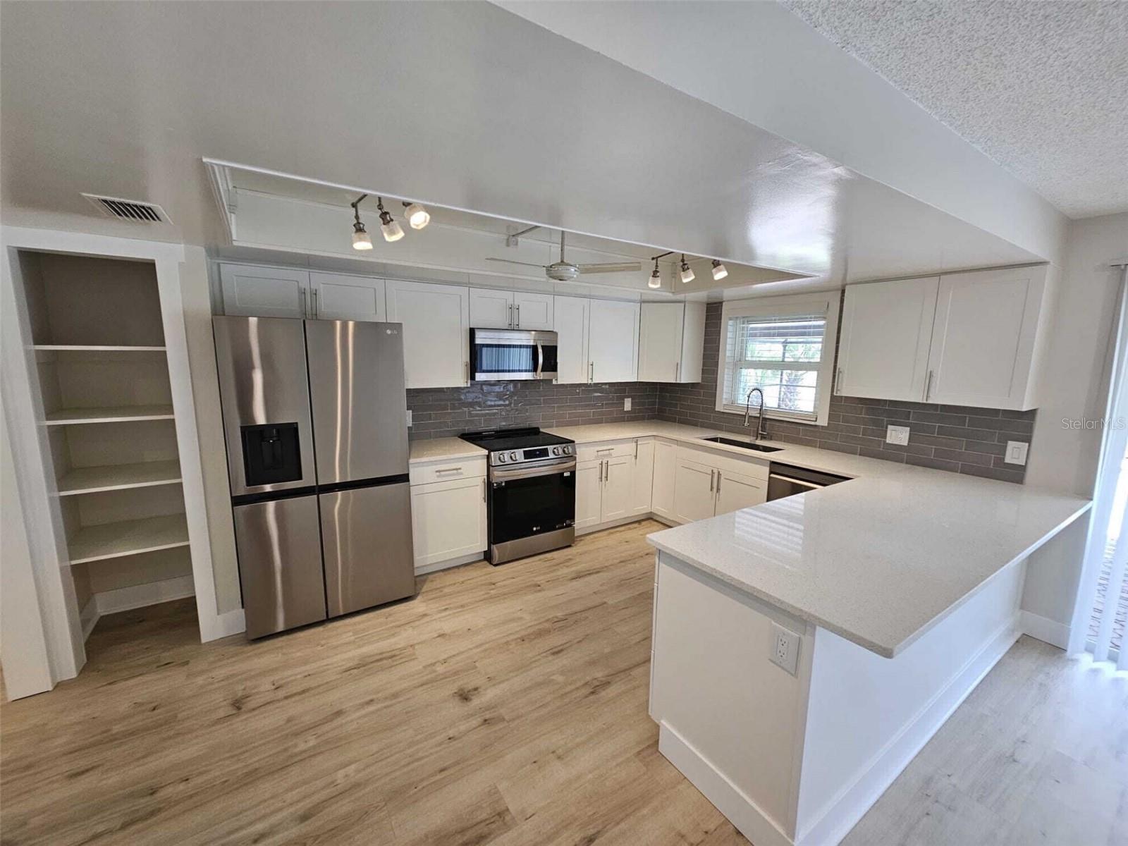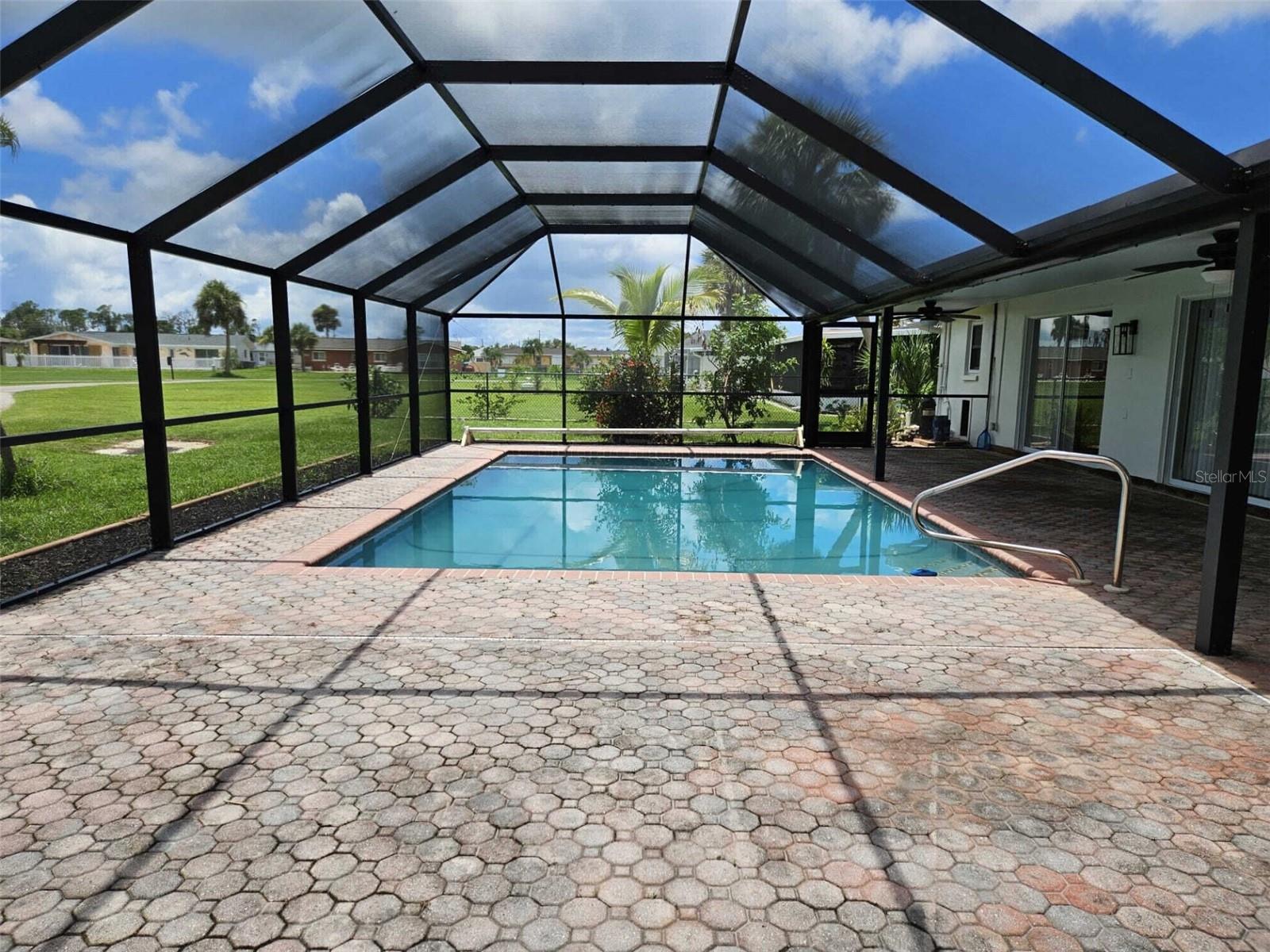 Move-in ready beautifully renovated home in the heart of Rotonda West and minutes from everything! This 3bd/2ba/2car oversized garage large/light/bright house has a spacious living room area and a nice sized BRAND NEW kitchen with countertop seating. This is a split bedroom design with 2 bedrooms on one side of the house and the master bedroom on the other side. All bedrooms are fairly large with plenty of light from the oversized sliding doors. The master bathroom has his/her closet and a large sliding door which opens up to the back lanai/pool area. This house has been renovated throughout including NEW screening in front lanai and pool cage (2024), NEW pool pump/filter/piping (2024), NEW AC (2024), and brand NEW everything interior including shaker style kitchen cabinets, stainless appliances, quartz countertops, updated bathrooms, LED recessed lighting throughout, LVP flooring throughout, garage door opener, freshly painted interior/exterior/garage/refinished driveway and many other updates throughout. Recent updates include a NEW water heater (2020), NEW pool cage (2016), NEW roof (2016), and NEW front door (2006). The back lanai/deck is 30x50ft and has been fully rescreened and the 16x26ft pool has a new pump/filter housing/piping and solar panel heating so that it can be used year-round. The property is beautifully landscaped and has great curb appeal. This gem of a house is centrally located in Rotonda West on a quiet dead end street and backs to the 18th hole of the golf course providing amazing views! This property is ideal for those looking for a comfortable and well-maintained home in a peaceful neighborhood or an income producing property as it’s LTR and AirBnB ready. Do not let this gem away!