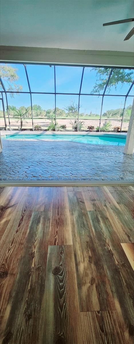 A fully renovated home, nestled in a prime location, with serene golf course views, and steps from the gulf club that simply catches your eye. From luscious landscaping, sleek and curvy edges, contrasting colors , offering a great curb appeal . Upon entering the inviting white doors, you are enchanted by a unique interior unlike any other home . You are greeted with a large open space, from beautifully crafted hardwood floors, to freshly painted white walls , cathedral ceilings, with bright natural light pouring in and a seamless continuation through to the pool and the endless horizon of the golf course. Flaunting a bohemian modern design , the home provides modern features, wrapped in warmth and coziness we all desire. ( Additional bonus room ) Roof 2023 . A.C 2022. Water heater 2025 . Salt water system 2024. The following features are newly installed and not limited to: PGT Hurricane sliding pocket door . Two American craftsman sliding doors. Unique cobble stone pool deck. Irrigation. Exterior and Interior paint. Black sealant roof paint . Flooring. Kitchen cabinets . Appliances. Butcher counters. Sinks. Dual vanity. Tiled shower areas. Shower doors . Blinds . All light and fan feature. All hardware, locks, handles outlets, vents replaced just like a NEW Home .