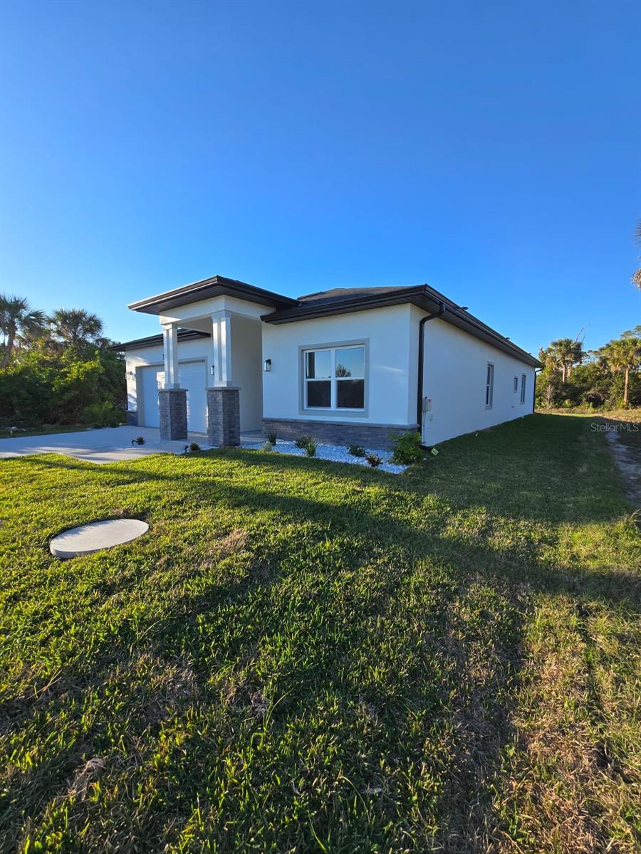 Experience the perfect blend of modern elegance and functionality in this stunning 4-bedroom, 2 ½-bathroom home, located in the sought-after community of Rotonda Heights. Just 7.4 miles from the pristine beaches of the Gulf of Mexico, this home offers the ideal location to embrace the Florida lifestyle — with sun-kissed beaches, unparalleled sunsets, picturesque walking trails, golf courses, and endless opportunities for relaxation and recreation. Built with the highest quality and attention to detail, and designed for both durability and style, this home features impact-resistant windows, a striking stone veneer exterior and gutter all around. Inside, the open-concept layout is perfect for entertaining, with 10" high ceilings throughout, a spacious gourmet kitchen complete with a large quartz island, elegant backsplash, wine cooler, and modern Sansumg stainless steel appliances. The luxurious primary suite is a true retreat, offering double closet, a walk-in closet, and an elegant en-suite bath with a walk-in shower, dual sinks, and a private water closet. Don’t miss the opportunity to own this exceptional home in one of Florida’s most emerging communities. Schedule your private showing today and make this dream home yours!