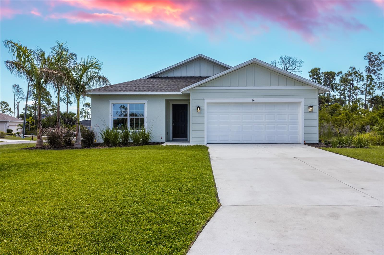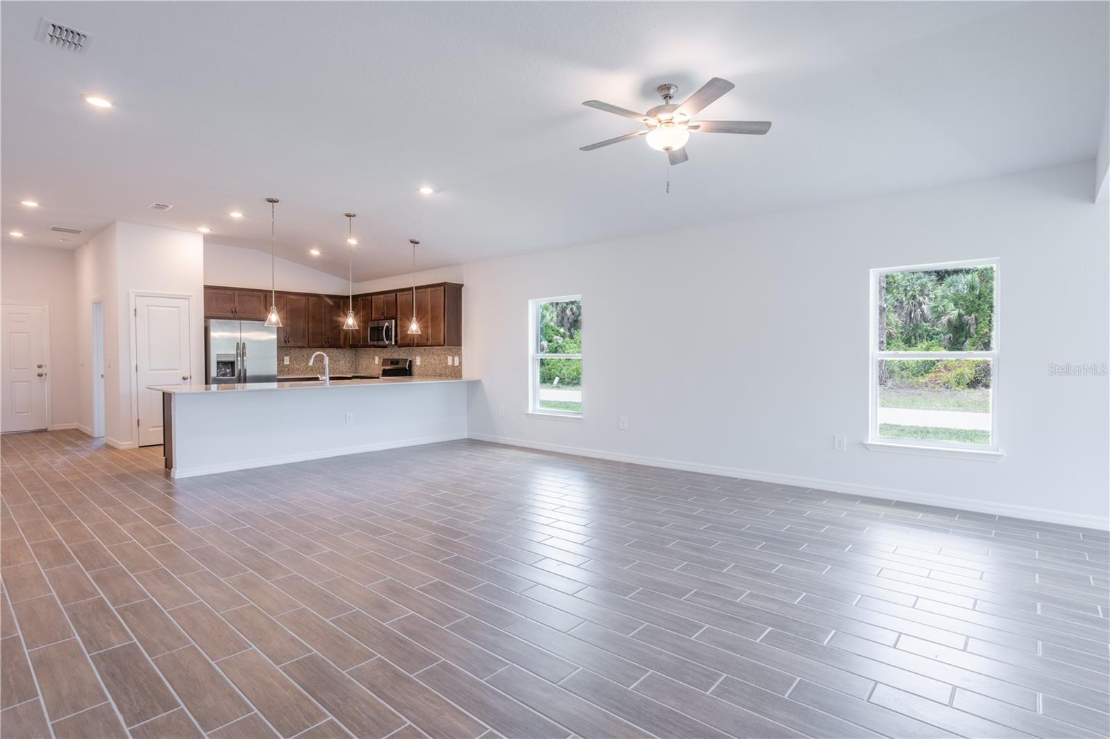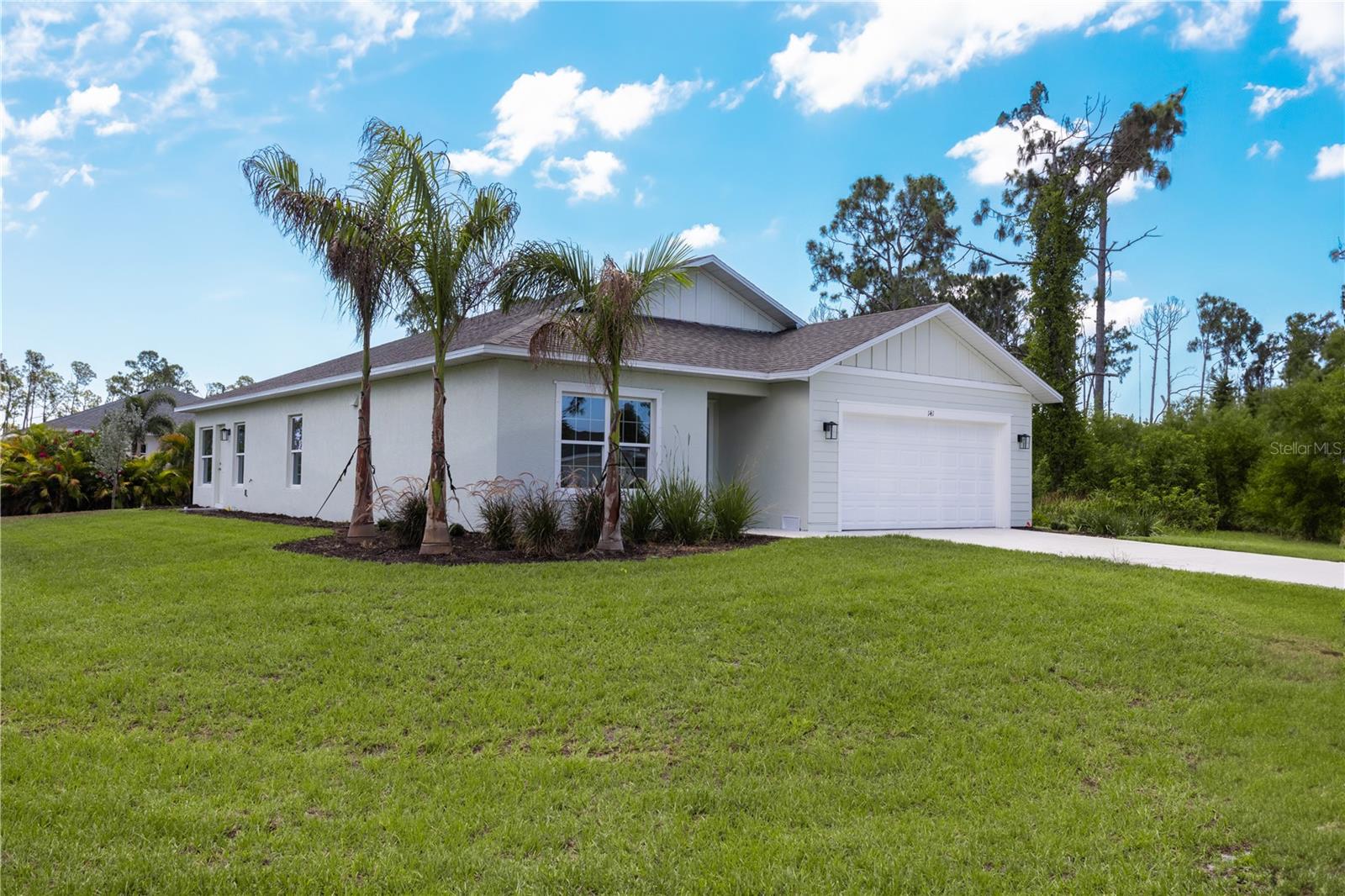 ***NEW CONSTRUCTION, NO WAIT, MOVE IN READY!*** (+$10,000 FLEX CASH incentive!) Elevate your lifestyle with the opulence of the Sanibel II floorplan presented by Carpenter Homes—a masterpiece within the Florida Living Series, certified by the Florida Green Building Coalition (FGBC). This home features 4 bedrooms and 2 full bathrooms. This dream home is designed and built to immerse you in luxury. As you enter, a beautiful kitchen welcomes you, with an expansive, oversized bar that seamlessly flows into the living and dining area. The finesse of soft-close, Shaker Stained Pecan 36" cabinets, Anatolia Bliss Mosiac Cappuccino backsplash, and upgraded Blanco City quartz countertops add a functional touch of luxury to the kitchen. Kitchen upgrades include a Moen Sleek chrome kitchen faucet, garbage disposal, and sleek stainless steel energy efficient appliances. This home exudes sophistication with a vaulted ceiling that unveils a spacious Florida room, creating an indoor/outdoor haven. Additionally, Carpenter Homes provides an upgraded brushed nickel lighting package including pendants over the kitchen bar, and vanity fixtures in both bathrooms, accenting the overall lighting design. Brushed nickel finish ceiling fans in each bedroom, as well as the great room, helps to circulate air flow and keep you cool in the Florida weather. Complimenting the expansive living area is Glen Arbor 6x26” natural wood ceramic plank flooring. The Owner's suite is a sanctuary of indulgence, showcasing dual sinks, impeccably tiled Magnisi 8x12” beige walls in the shower, and a generously sized walk-in closet. The home boasts Magnisi 8x12” beige upgraded tiled walls in in the second bath/shower, a Blanco City quartz vanity top, and Moen Genta chrome faucets and shower/tub trim kits. The ampleness of this home continues with a utility room, and additions such as energy-efficient R-4.1 insulation on concrete exterior walls, Taexx tubes for pest control, and fabric hurricane shutters for every window. The Florida friendly landscaped yard is complemented by an irrigation system with a rain sensor to help maximize efficiency. The expansive 2-car garage, complete with garage door opener and two remotes, not only provides ample space for your everyday needs but also ensures the utmost convenience and versatility for all your storage and parking requirements. Step into a world where extravagance meets eco-conscious living—your forever home awaits you, a testament to timeless elegance and modern sustainability. Available to view any time.