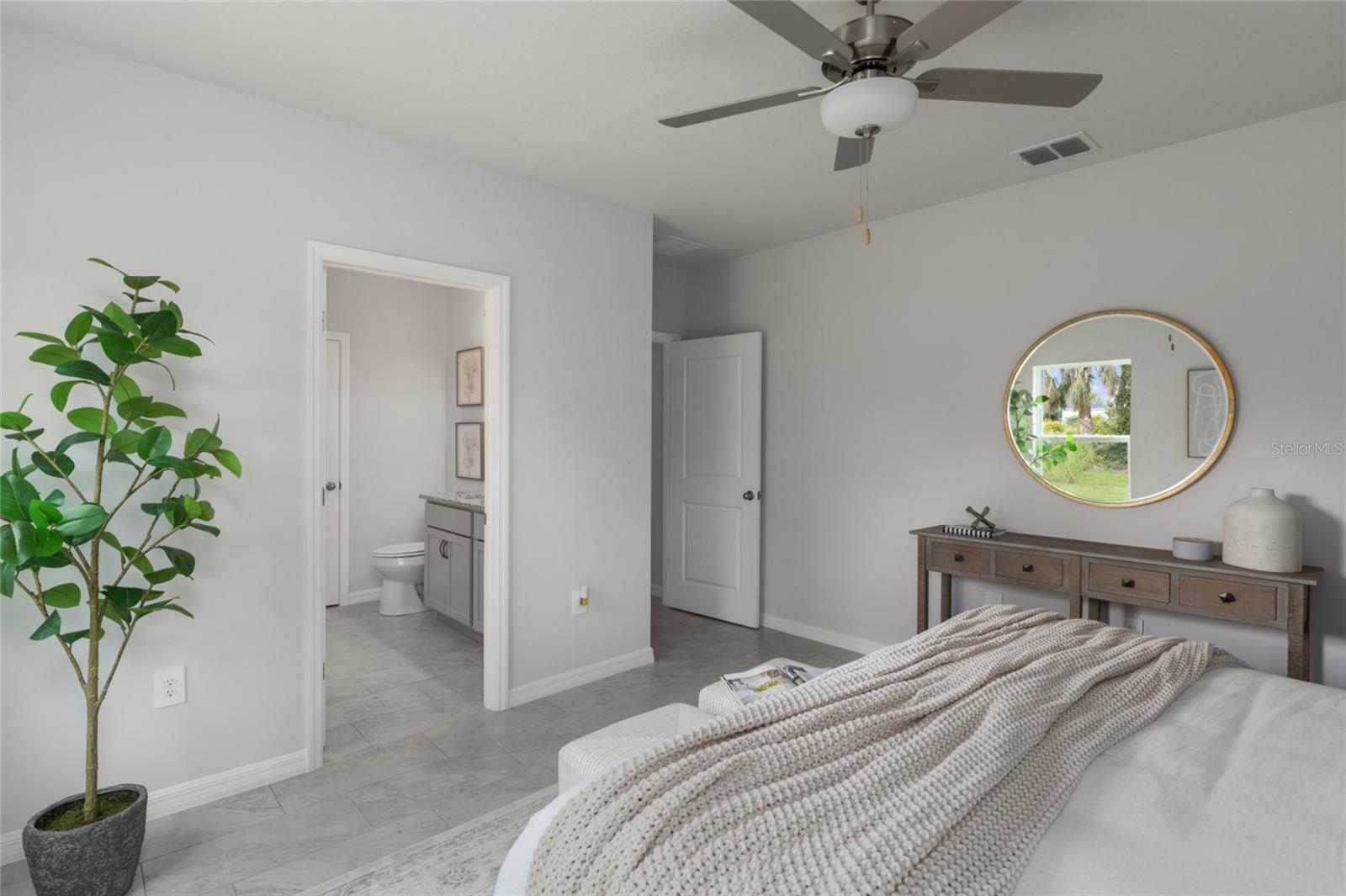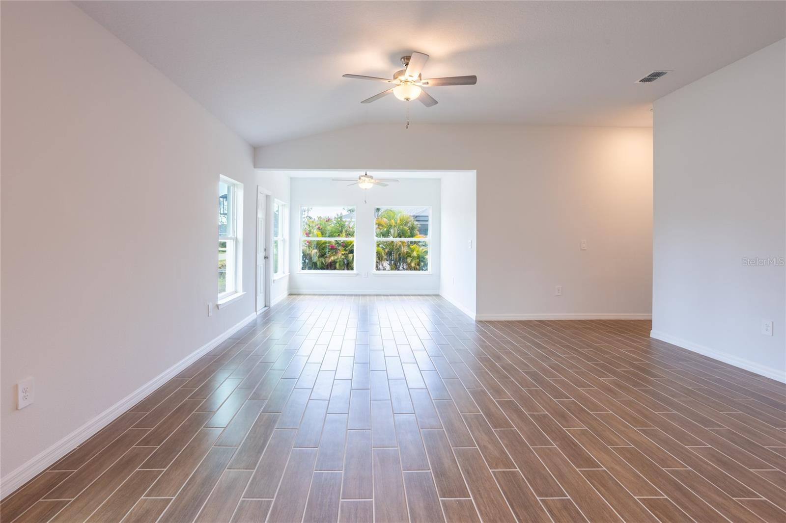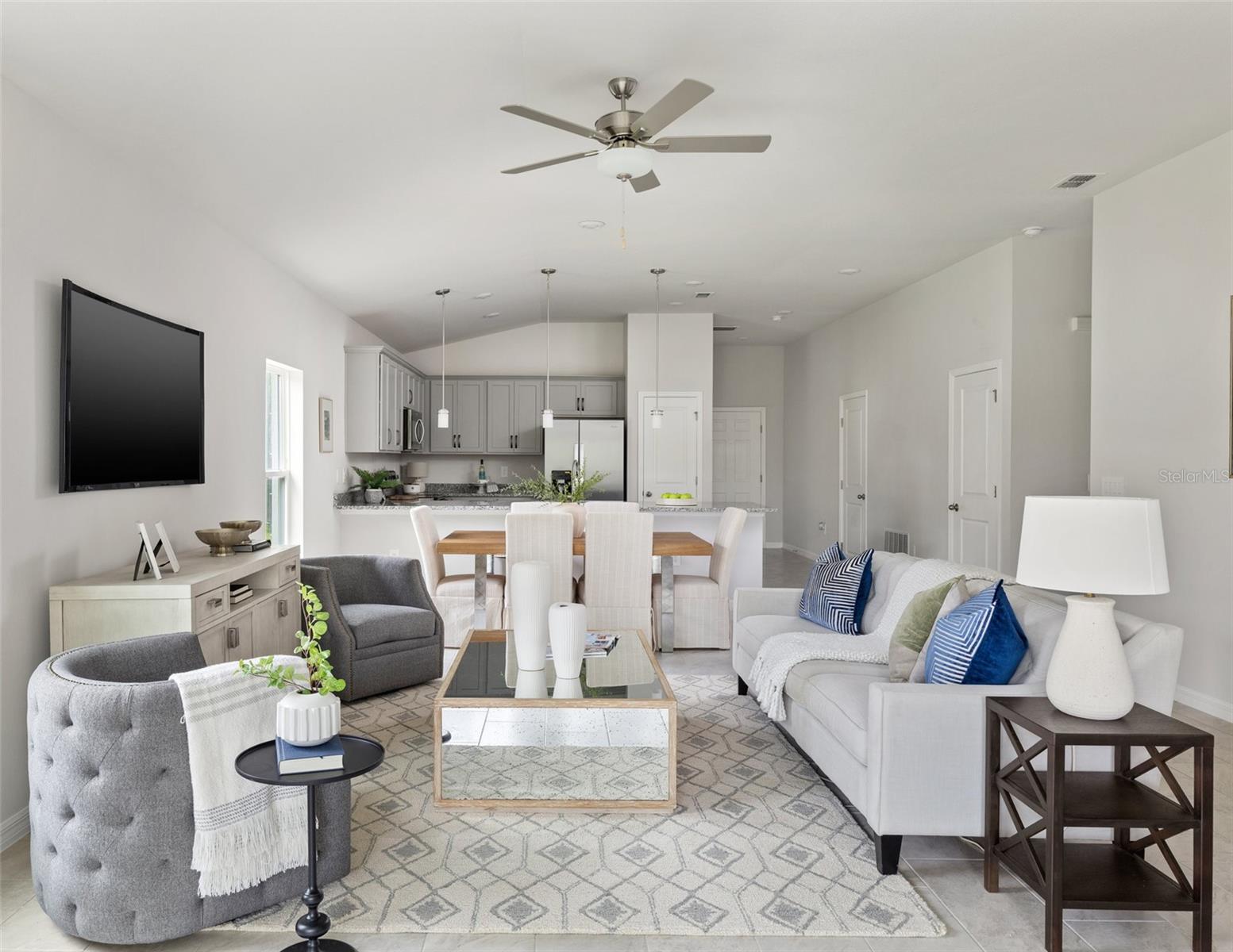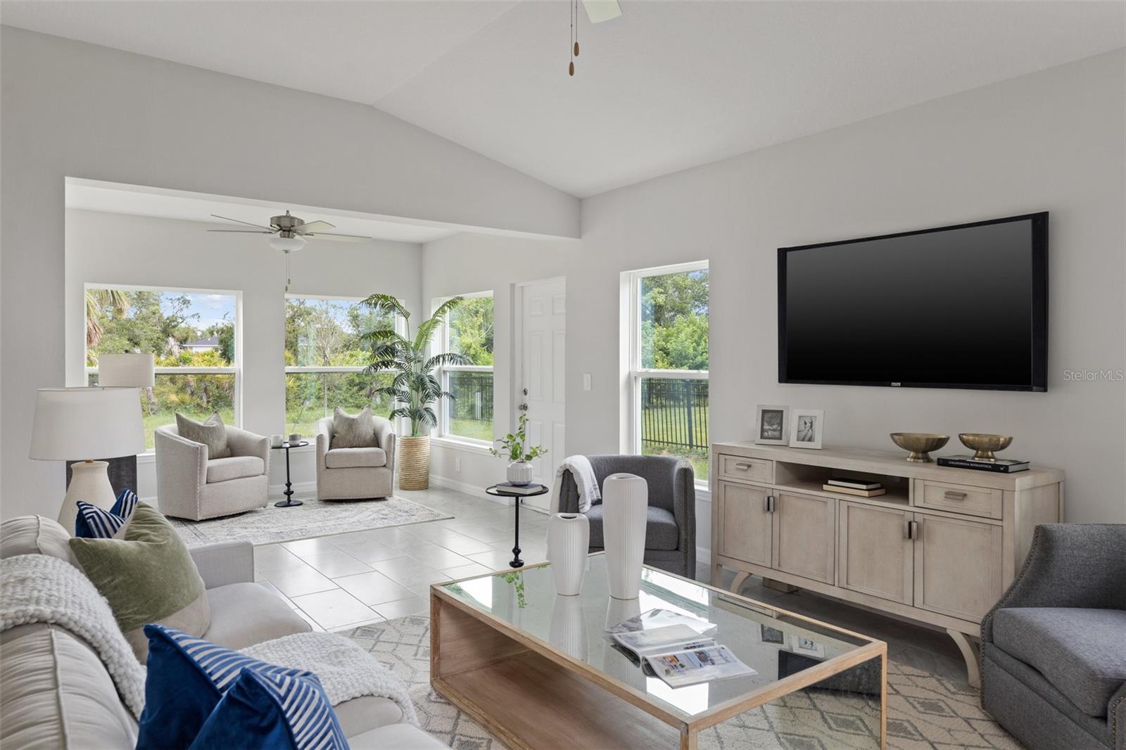 ***NEW CONSTRUCTION, NO WAIT, MOVE IN READY!*** (+$10,000 FLEX CASH incentive!) Elevate your lifestyle with the opulence of the Sanibel II floorplan presented by Carpenter Homes—a masterpiece within the Florida Living Series, certified by the Florida Green Building Coalition (FGBC). This home features 4 bedrooms and 2 full bathrooms. This dream home is designed and built to immerse you in luxury. As you enter, a beautiful kitchen welcomes you, with an expansive, oversized bar that seamlessly flows into the living and dining area. The finesse of soft-close, Shaker Stained Pecan 36" cabinets, Anatolia Bliss Mosiac Cappuccino backsplash, and upgraded Blanco City quartz countertops add a functional touch of luxury to the kitchen. Kitchen upgrades include a Moen Sleek chrome kitchen faucet, garbage disposal, and sleek stainless steel energy efficient appliances. This home exudes sophistication with a vaulted ceiling that unveils a spacious Florida room, creating an indoor/outdoor haven. Additionally, Carpenter Homes provides an upgraded brushed nickel lighting package including pendants over the kitchen bar, and vanity fixtures in both bathrooms, accenting the overall lighting design. Brushed nickel finish ceiling fans in each bedroom, as well as the great room, helps to circulate air flow and keep you cool in the Florida weather. Complimenting the expansive living area is Glen Arbor 6x26” natural wood ceramic plank flooring. The Owner's suite is a sanctuary of indulgence, showcasing dual sinks, impeccably tiled Magnisi 8x12” beige walls in the shower, and a generously sized walk-in closet. The home boasts Magnisi 8x12” beige upgraded tiled walls in in the second bath/shower, a Blanco City quartz vanity top, and Moen Genta chrome faucets and shower/tub trim kits. The ampleness of this home continues with a utility room, and additions such as energy-efficient R-4.1 insulation on concrete exterior walls, Taexx tubes for pest control, and fabric hurricane shutters for every window. The Florida friendly landscaped yard is complemented by an irrigation system with a rain sensor to help maximize efficiency. The expansive 2-car garage, complete with garage door opener and two remotes, not only provides ample space for your everyday needs but also ensures the utmost convenience and versatility for all your storage and parking requirements. Step into a world where extravagance meets eco-conscious living—your forever home awaits you, a testament to timeless elegance and modern sustainability. Available to view any time.