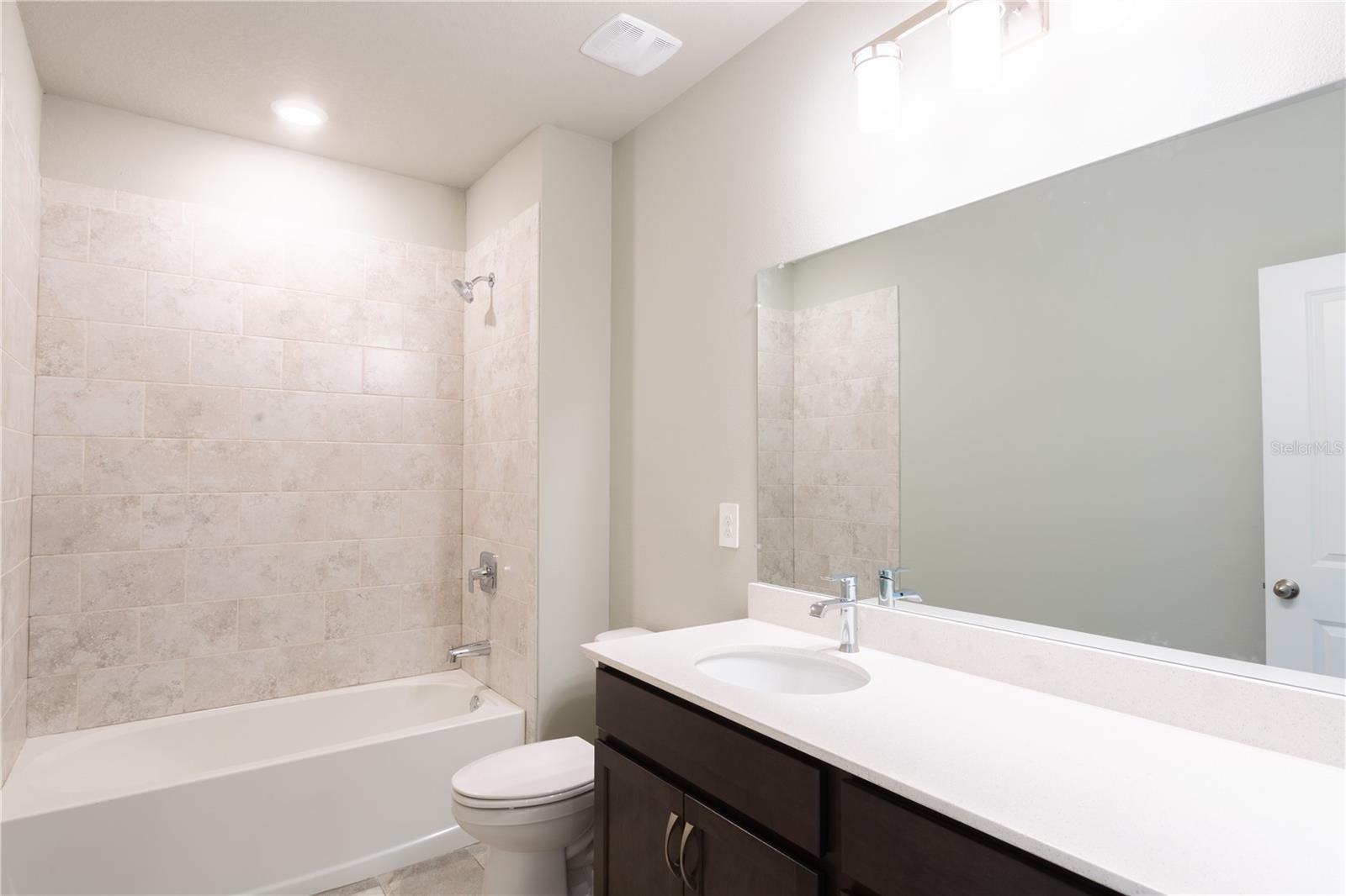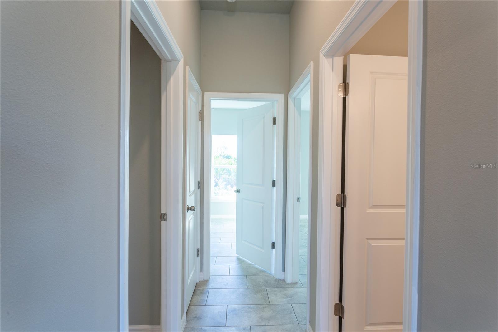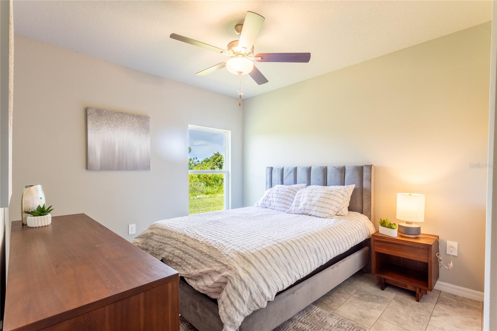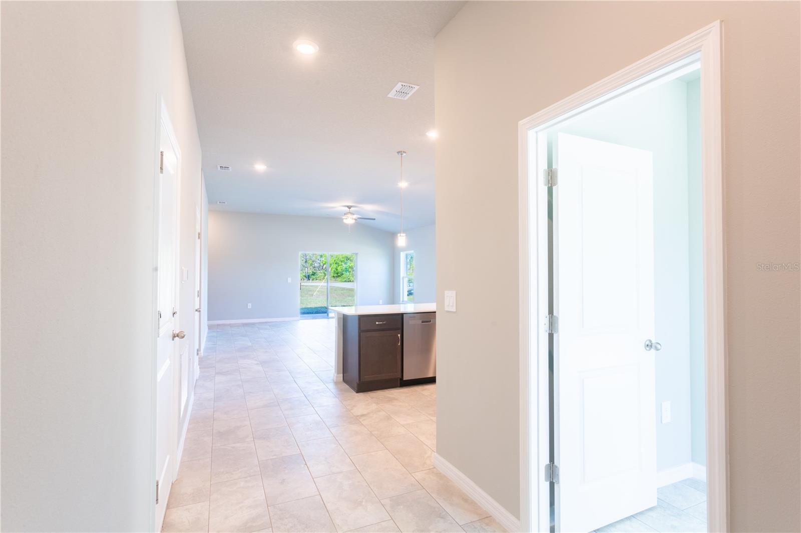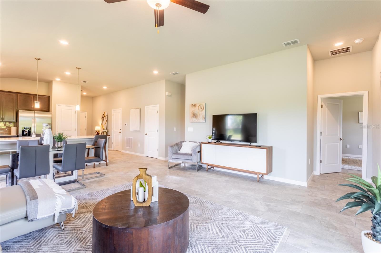**NEW CONSTRUCTION, NO WAIT, MOVE IN READY!** Elevate your lifestyle with the opulence of the Sanibel floorplan presented by Carpenter Homes—a masterpiece within the Florida Living Series, certified by the Florida Green Building Coalition (FGBC). This home features 4 bedrooms and 2 full bathrooms. This dream home is designed and built to immerse you in luxury. As you enter, a beautiful kitchen welcomes you, with an expansive, oversized bar that seamlessly flows into the living and dining area! The finesse of soft-close, Stained Basalt 42" cabinets, Bliss Element Earth 3x9 beveled glass subway tile backsplash, and upgraded Blanco Matrix quartz countertops add a functional touch of luxury to the kitchen. Kitchen upgrades include a Moen Sleek chrome kitchen faucet, garbage disposal, and sleek stainless steel energy efficient appliances. This home exudes sophistication with a vaulted ceiling that unveils a spacious lanai, creating an indoor-outdoor haven. Additionally, Carpenter Homes provides an upgraded Robi brushed nickel lighting package including pendants over the kitchen bar, and vanity fixtures in both bathrooms, accenting the overall lighting design. Monte Carlo Linden brushed steel finish ceiling fans in each bedroom, as well as the great room, helps to circulate air flow and keep you cool in the Florida weather. Complimenting the expansive living area is Veneta Grigio 12x24 ceramic tile flooring. The Owner's suite is a sanctuary of indulgence, showcasing dual sinks, impeccably tiled Magnisi White 8x12 walls in the shower, and a generously sized walk-in closet. The home boasts Magnisi White 8x12 upgraded tiled walls in in the second bath/shower, a Blanco Matrix quartz vanity top, and Moen Genta LX chrome faucets and shower/tub trim kits. The ampleness of this home continues with a utility room, and additions such as energy-efficient R-4.1 insulation on concrete exterior walls, Taexx tubes for pest control, and fabric hurricane shutters for every window. The Florida friendly landscaped yard is complemented by an irrigation system with a rain sensor to help maximize efficiency. The expansive 3-car garage, complete with two garage door openers and four remotes, not only provides ample space for your everyday needs but also ensures the utmost convenience and versatility for all your storage and parking requirements. Step into a world where extravagance meets eco-conscious living—your forever home awaits, a testament to timeless elegance and modern sustainability. Available to view any time!