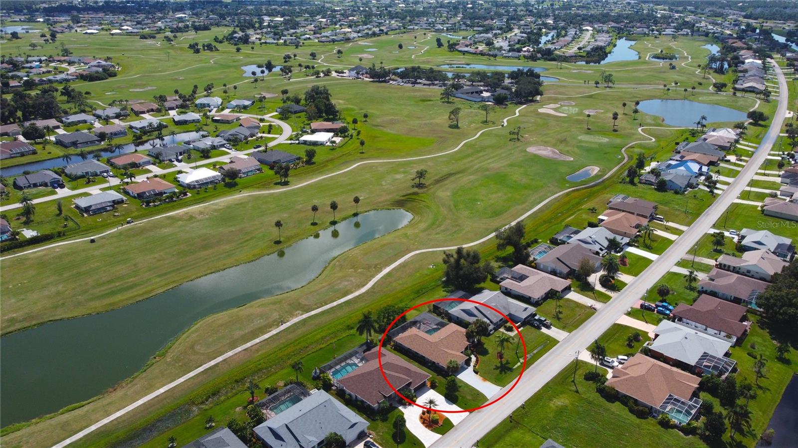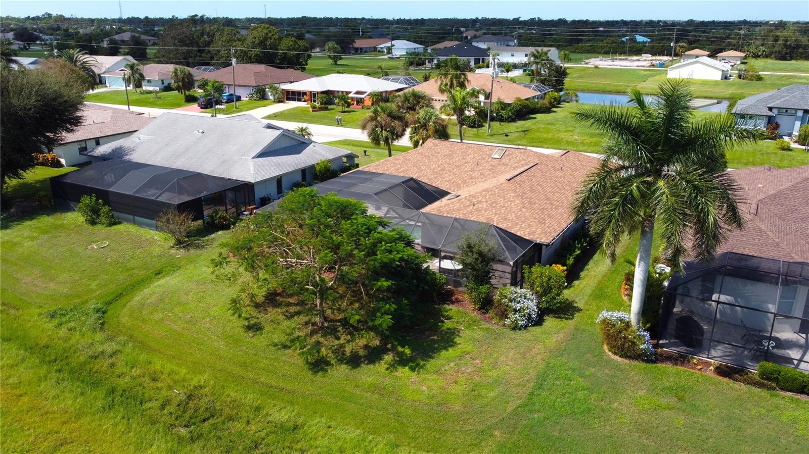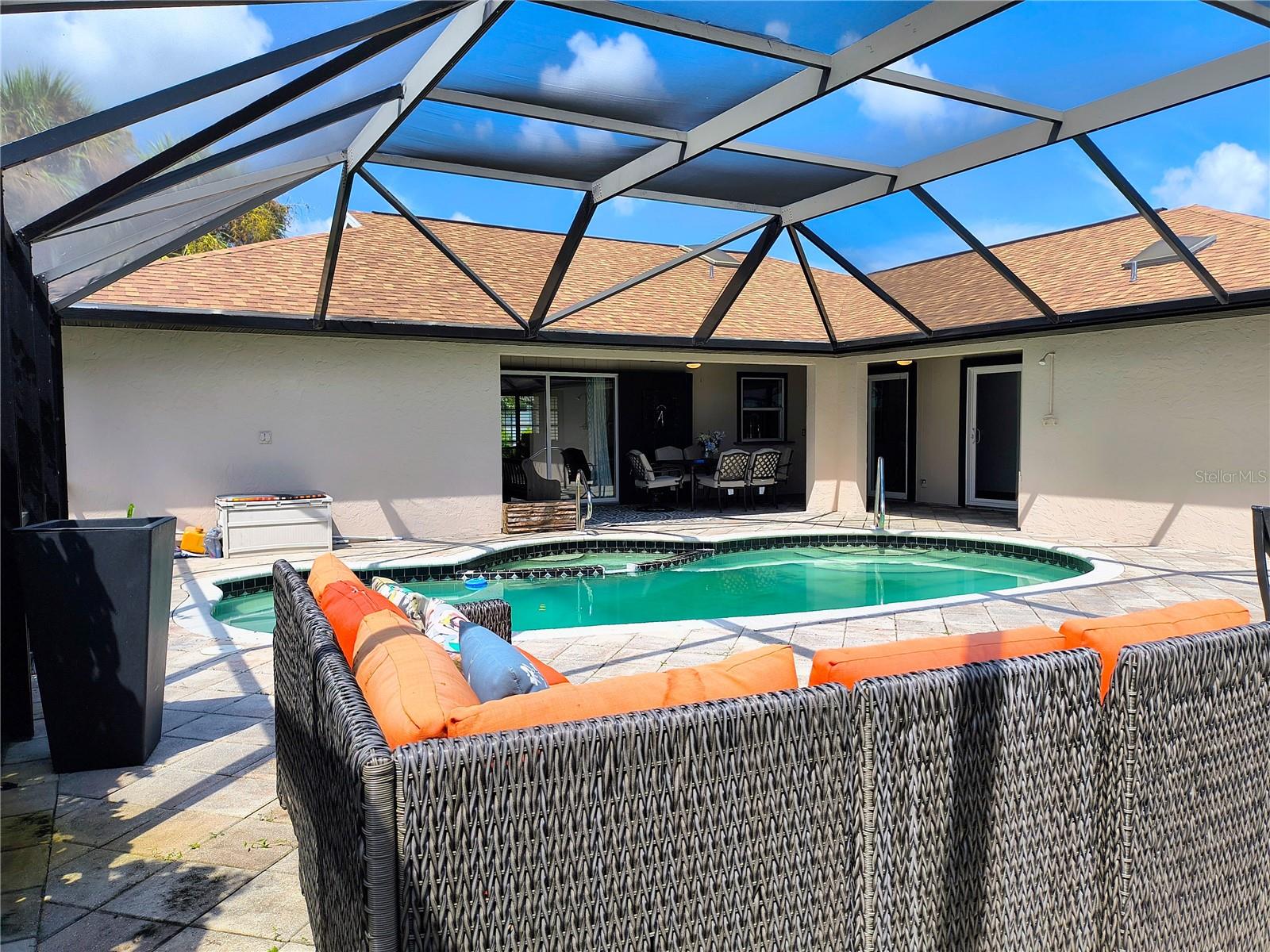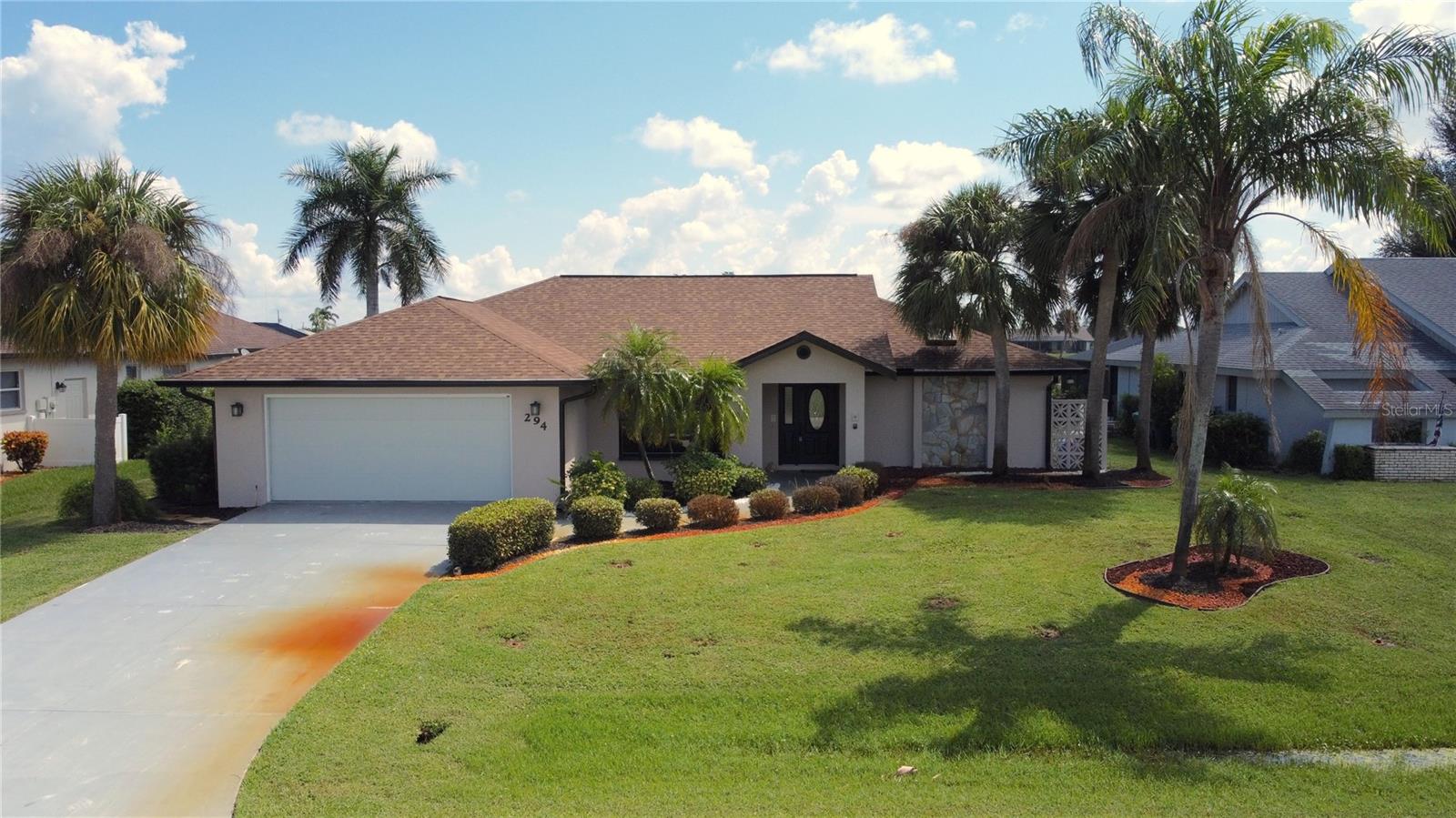Imagine having your morning coffee on your oversized lanai overlooking a golf course. Looking for the perfect POOL home with plenty of room to entertain outdoors? This is it! This 3 bed, 2 bath home has the most amazing and expansive pool area you will find, with over 1300 sq. ft. of outdoor living overlooking the Palms Golf Course, which is an 18-hole par 72 championship course. Sliders from the living room, primary bedroom, dining room and hall give you beautiful views of your pool and spa. The interior of the home boasts high ceilings upon entry, with skylights throughout providing lots of extra lighting. The laundry room is conveniently located off of the kitchen area, and the oversized garage offers plenty of extra storage. This is truly an entertainers paradise and will not disappoint. For the beach lovers, this home is less than 20 minutes from Boca Grande and Englewood beaches! This property is what Florida living is all about. Make this one your forever home today! New roof 2022, water heater 2024, sprinkler upgrade 2024. Home comes fully furnished.
