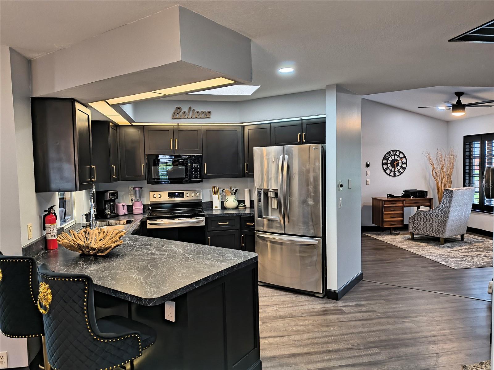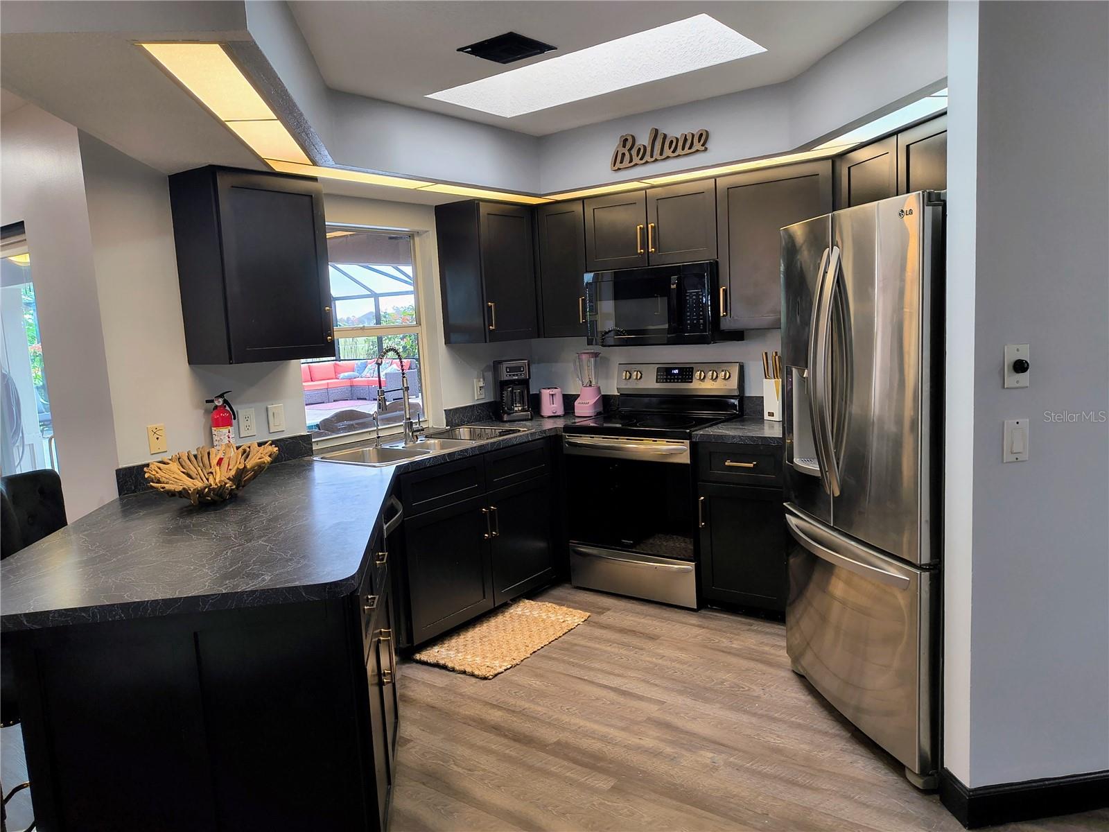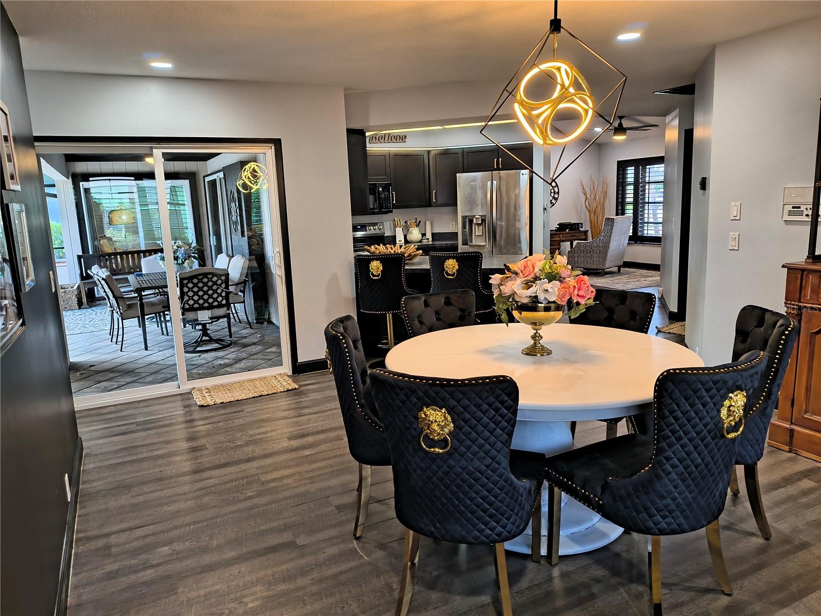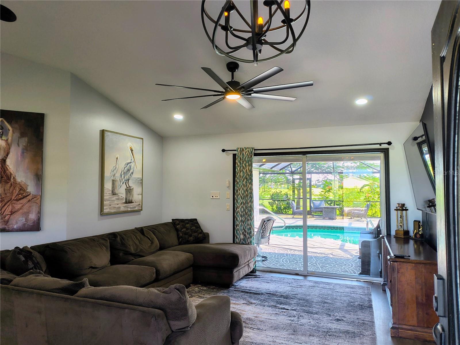 Imagine having your morning coffee on your oversized lanai overlooking a golf course. Looking for the perfect POOL home with plenty of room to entertain outdoors? This is it! This 3 bed, 2 bath home has the most amazing and expansive pool area you will find, with over 1300 sq. ft. of outdoor living overlooking the Palms Golf Course, which is an 18-hole par 72 championship course. Sliders from the living room, primary bedroom, dining room and hall give you beautiful views of your pool and spa. The interior of the home boasts high ceilings upon entry, with skylights throughout providing lots of extra lighting. The laundry room is conveniently located off of the kitchen area, and the oversized garage offers plenty of extra storage. This is truly an entertainers paradise and will not disappoint. For the beach lovers, this home is less than 20 minutes from Boca Grande and Englewood beaches! This property is what Florida living is all about. Make this one your forever home today! New roof 2022, water heater 2024, sprinkler upgrade 2024. Home comes fully furnished.